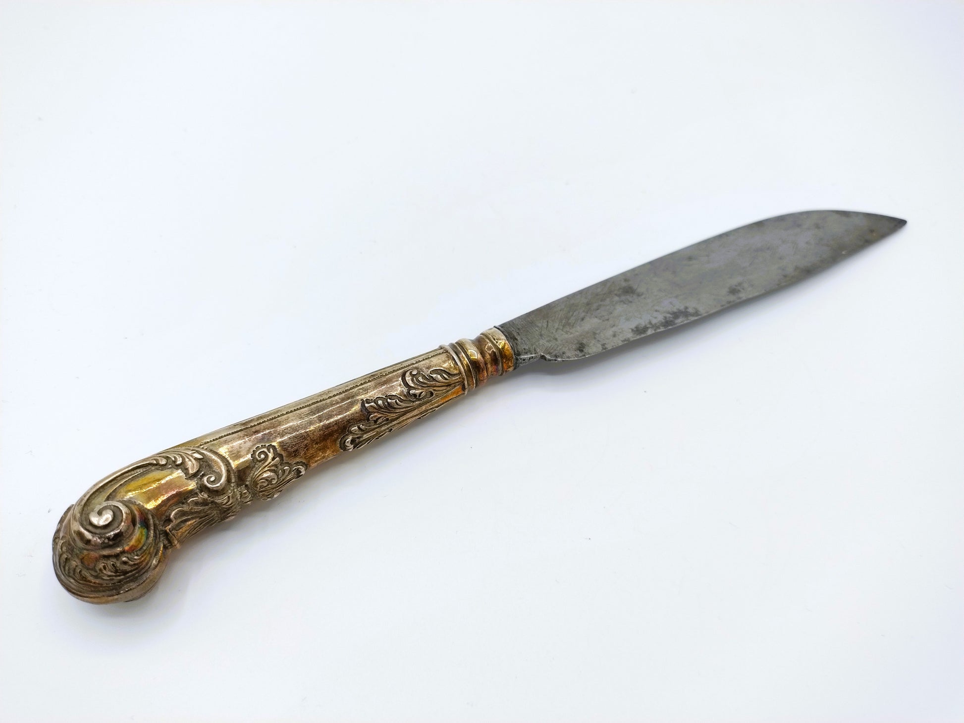 18e Eeuws zilveren mesheft met origineel stalen lemmet. Het lemmet draagt de initialen: B K W M S T T.
