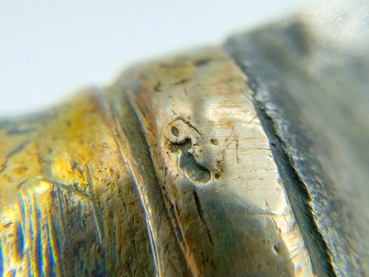 Het gebeurt niet vaak dat de initialen in het lemmet gezet worden, meestal wordt dit gedaan in het zilver.