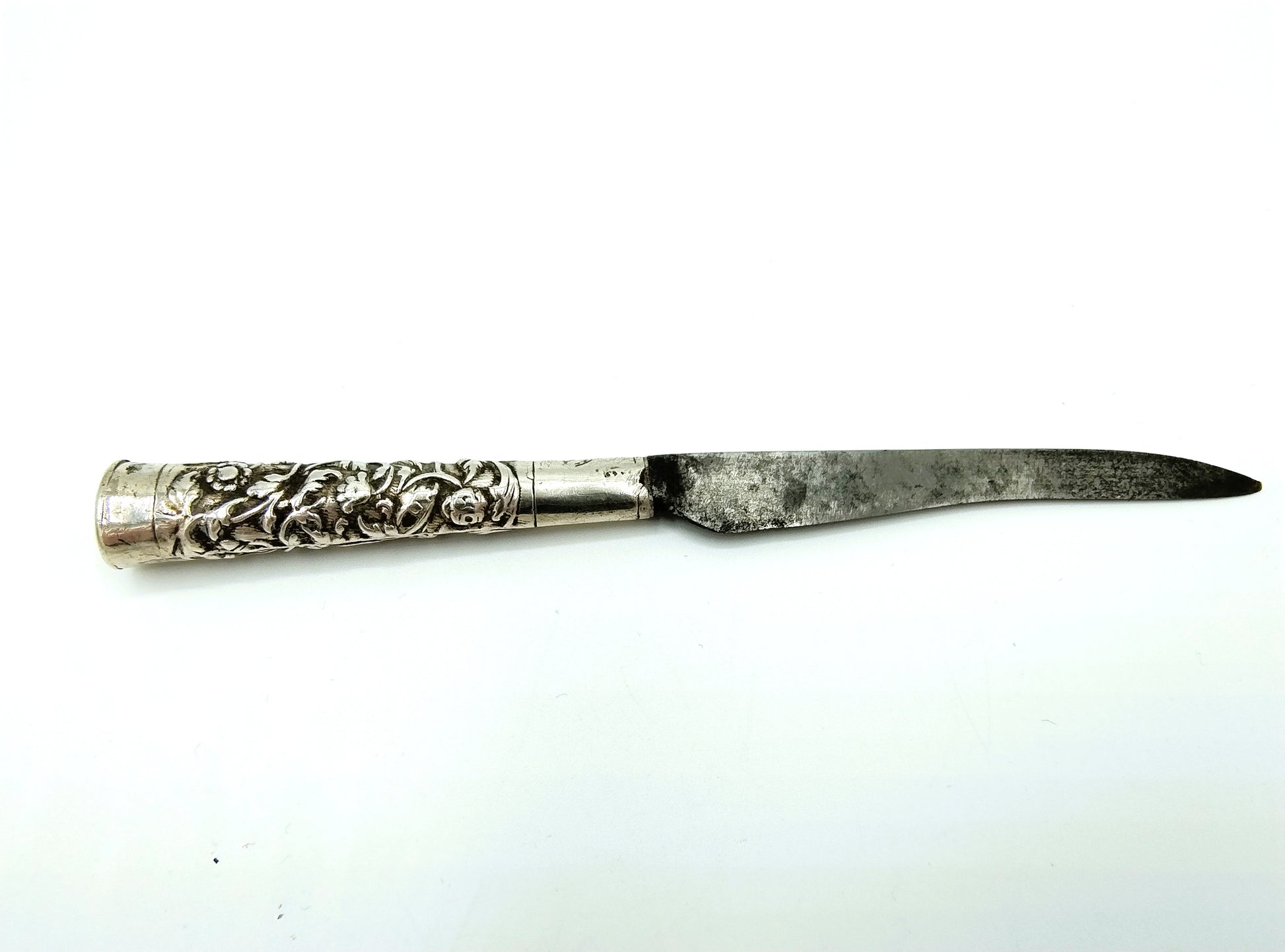 18e Eeuws zilveren mesheft met origineel stalen lemmet.