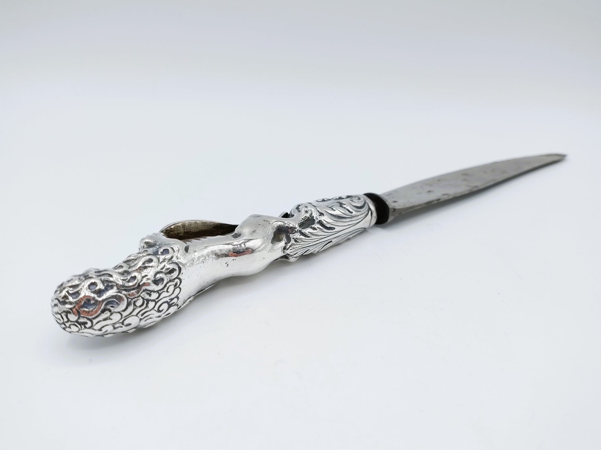 Het mesheft is zwaar en solide en in prima conditie. Het mesheft is gekeurd met meesterkeur BWE in ovaal en het zwaardje voor 2e gehalte zilver.