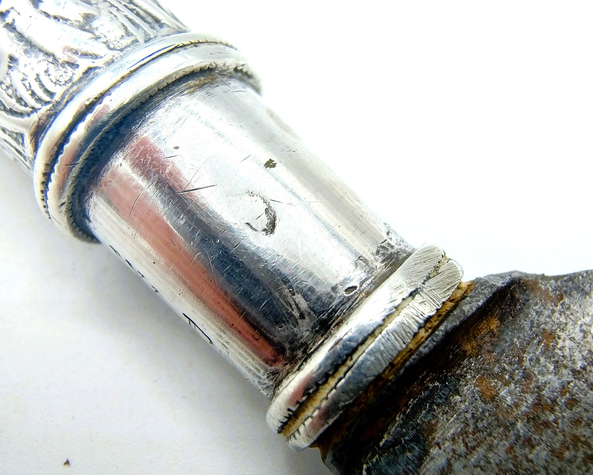 Zilveren mesheft met originele stalen lemmet, 18e eeuws