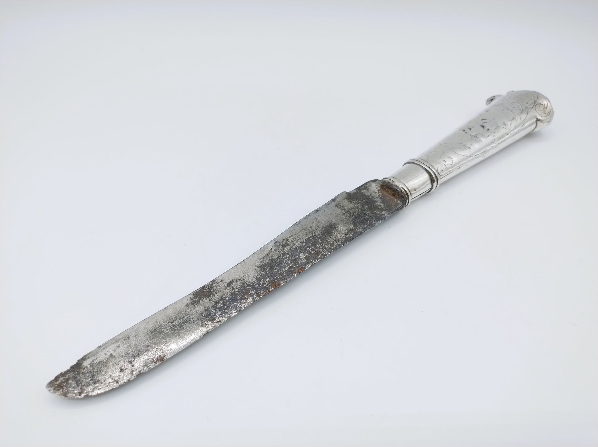 Zilveren mesheft met originele stalen lemmet, 18e eeuws