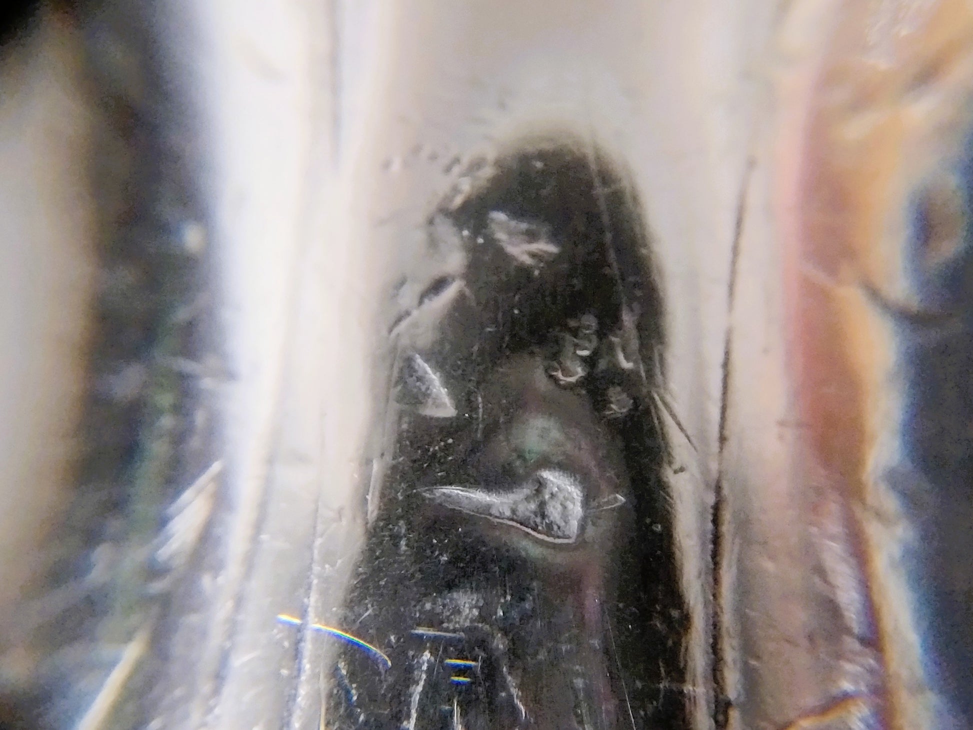 Het mesheft is gekeurd met een sleets geworden meesterteken. Als jaarletter staat er een A. Mocht het mes in Amsterdam gemaakt zijn, staat dit voor 1785.