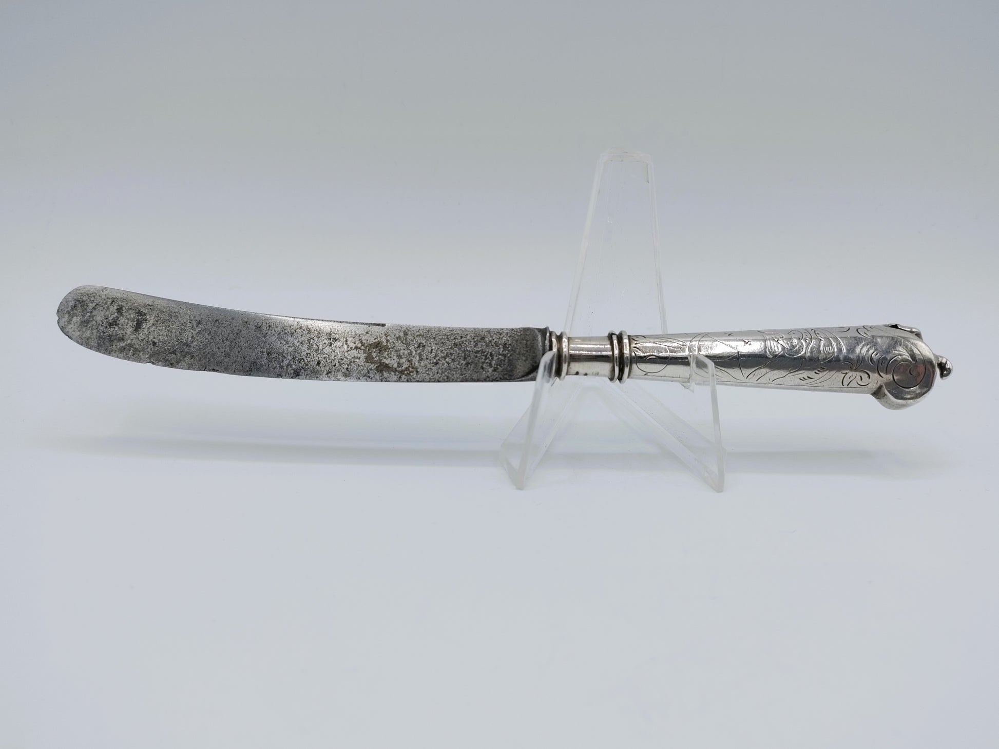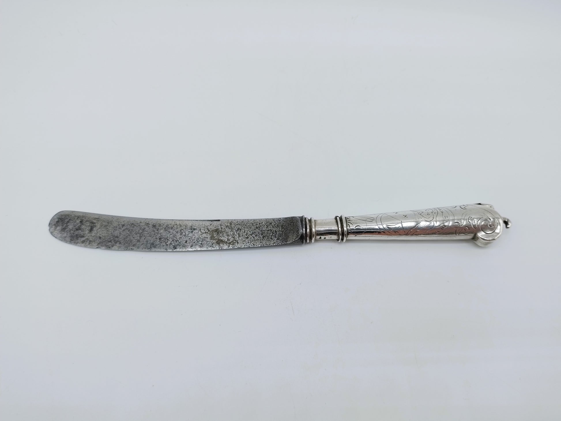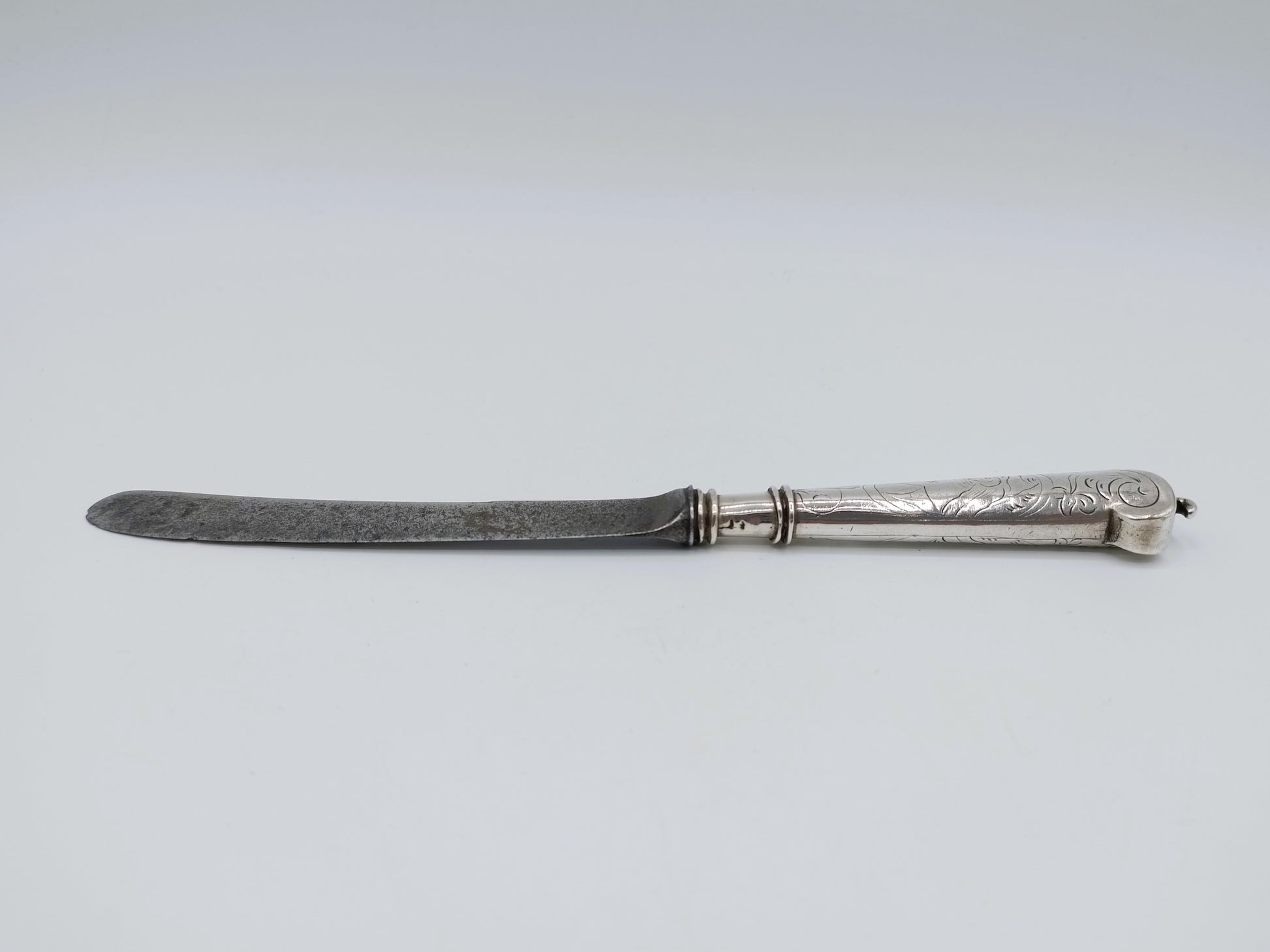 Zilveren mesheft met stalen lemmet, D. Hoep, Hoorn, 1769