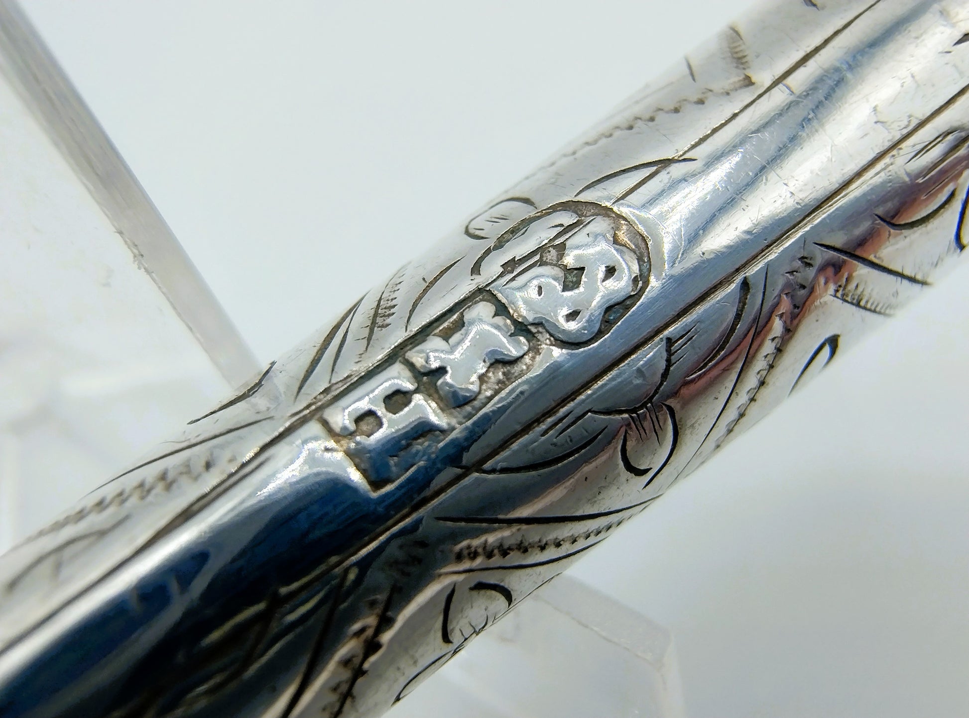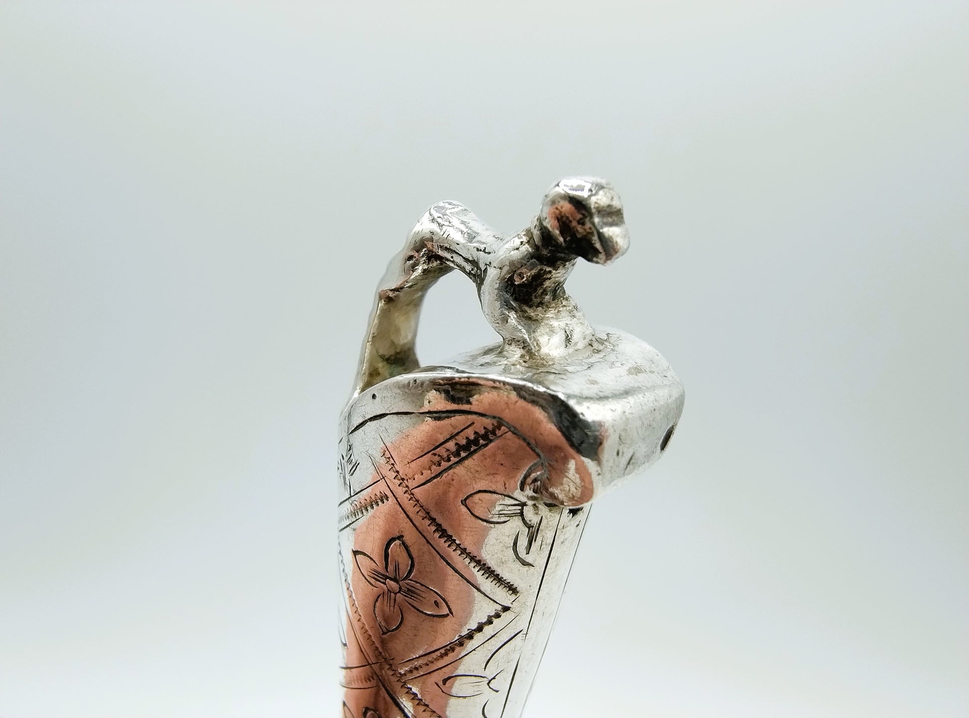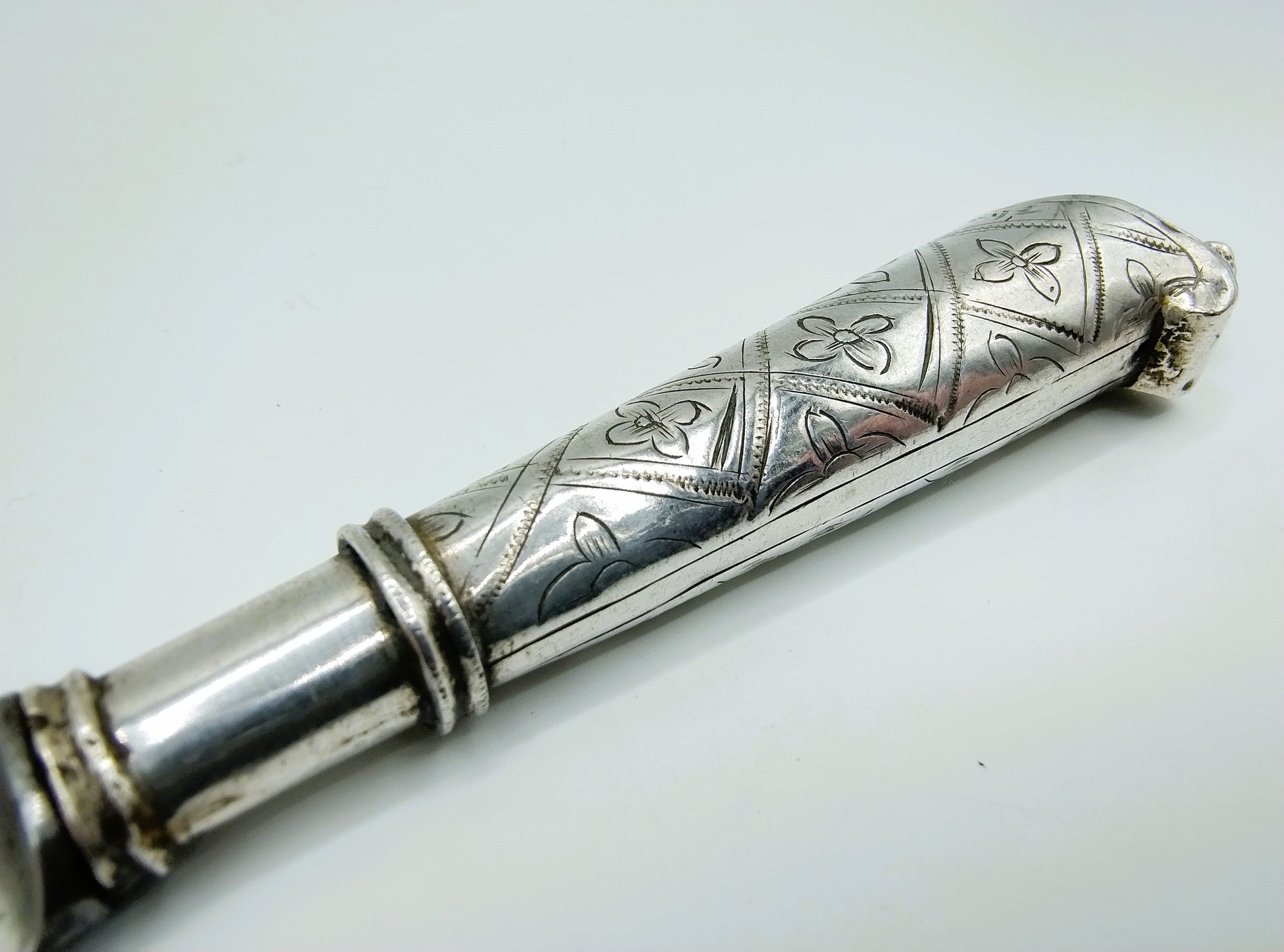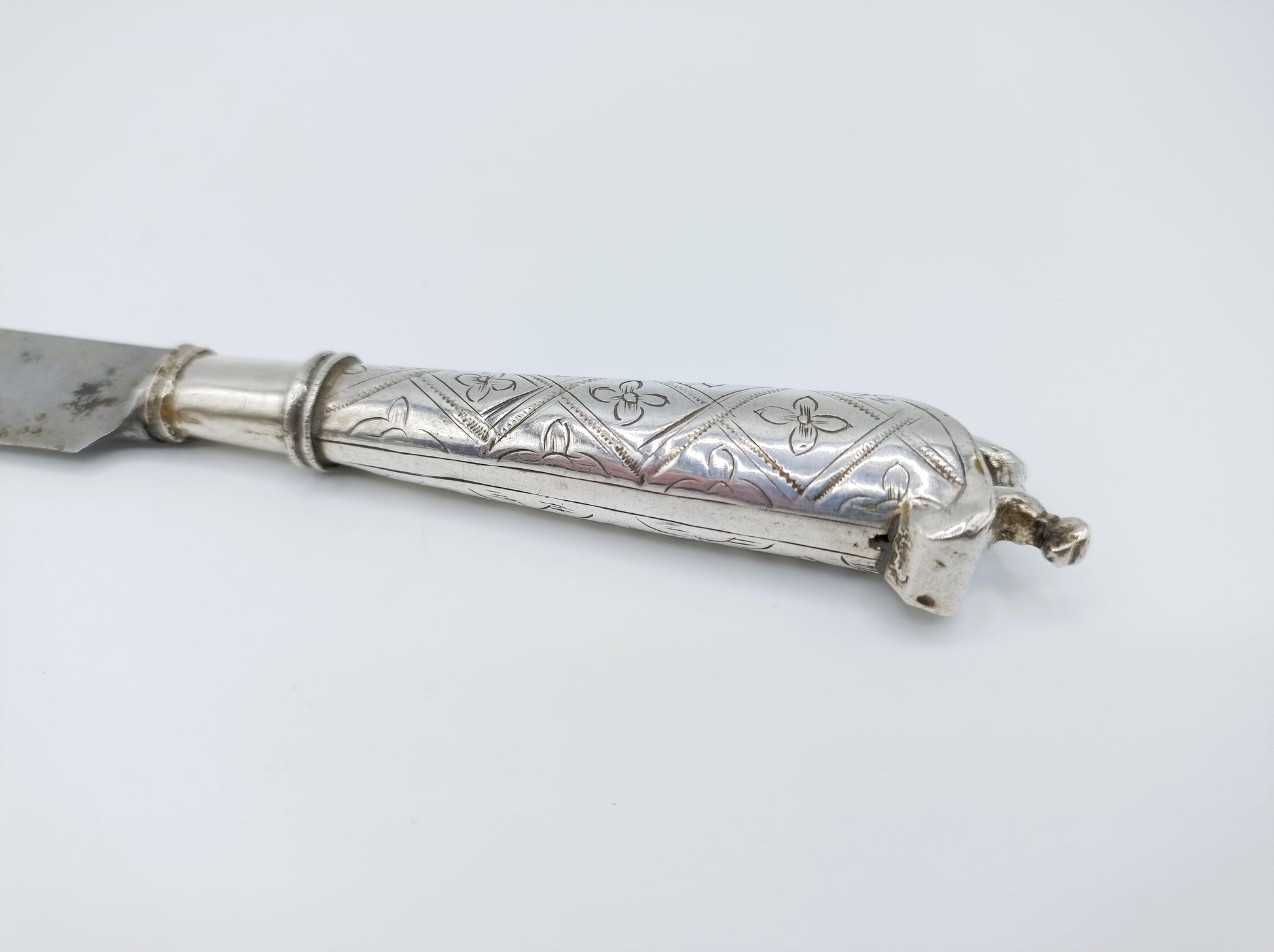 Het heft is voorzien van een floraal decor.