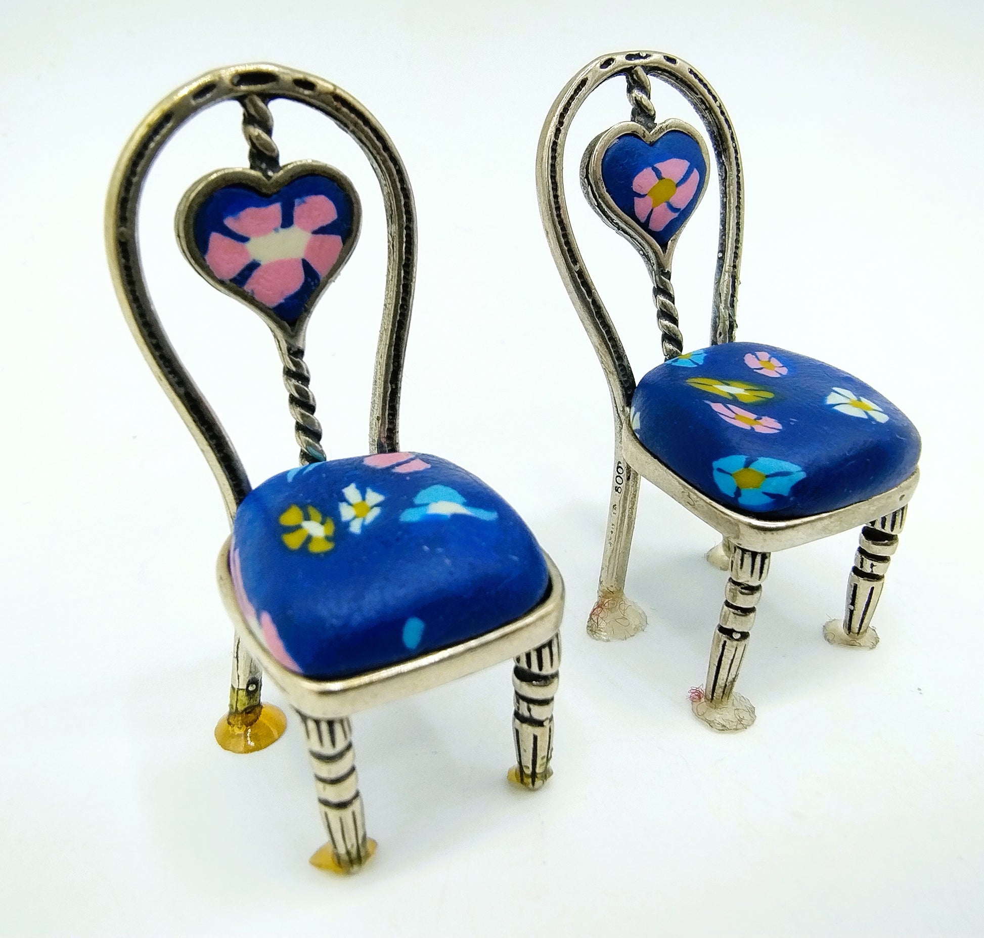 Zilveren miniatuur, 2 stoelen, Arezzo, Italië, 800