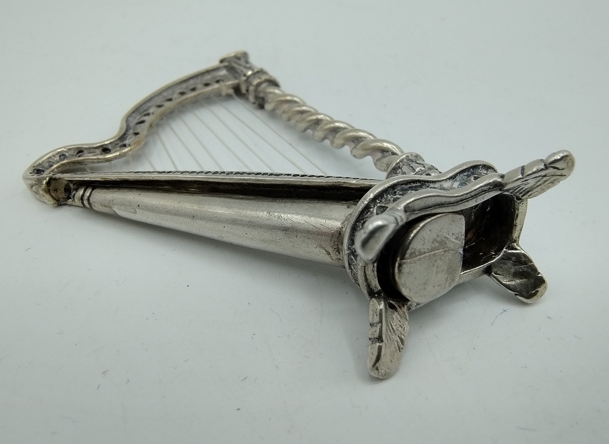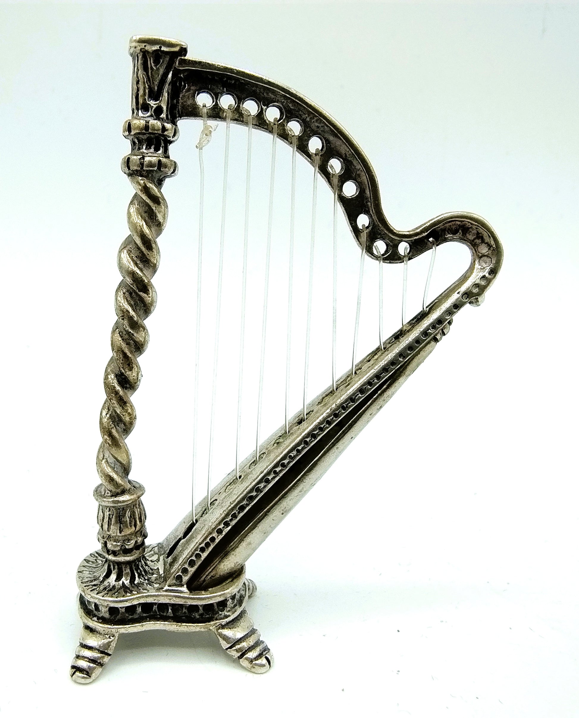 Zilveren miniatuur van een harp afkomstig uit Italië.