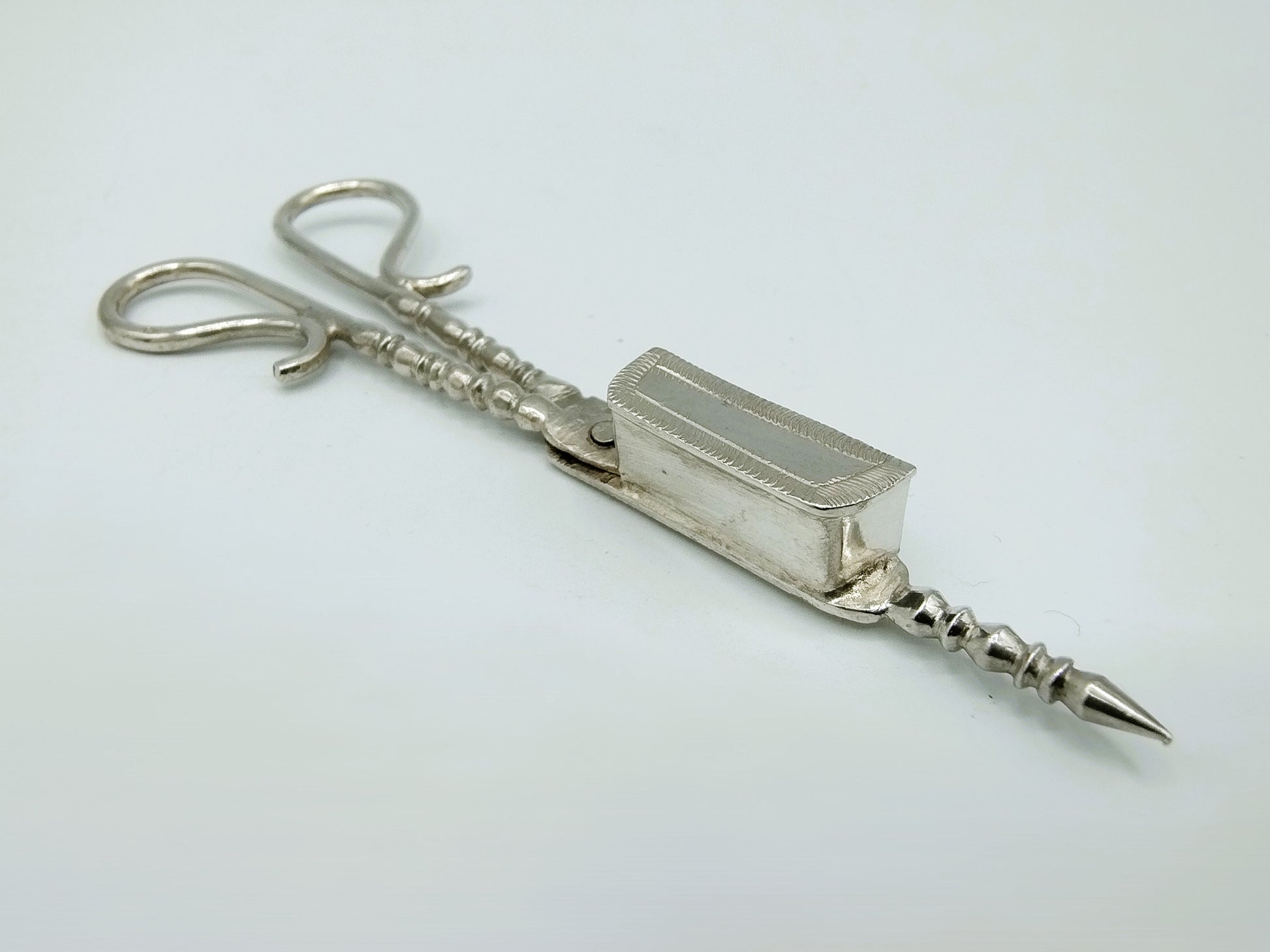 Zilveren miniatuur kaarsensnuiter gemaakt door de Friese zilversmid Ate Dirks Jorritsma, geboren in Franeker en werkzaam in Bolsward. Hij was werkzaam van 1773 tot 1813.