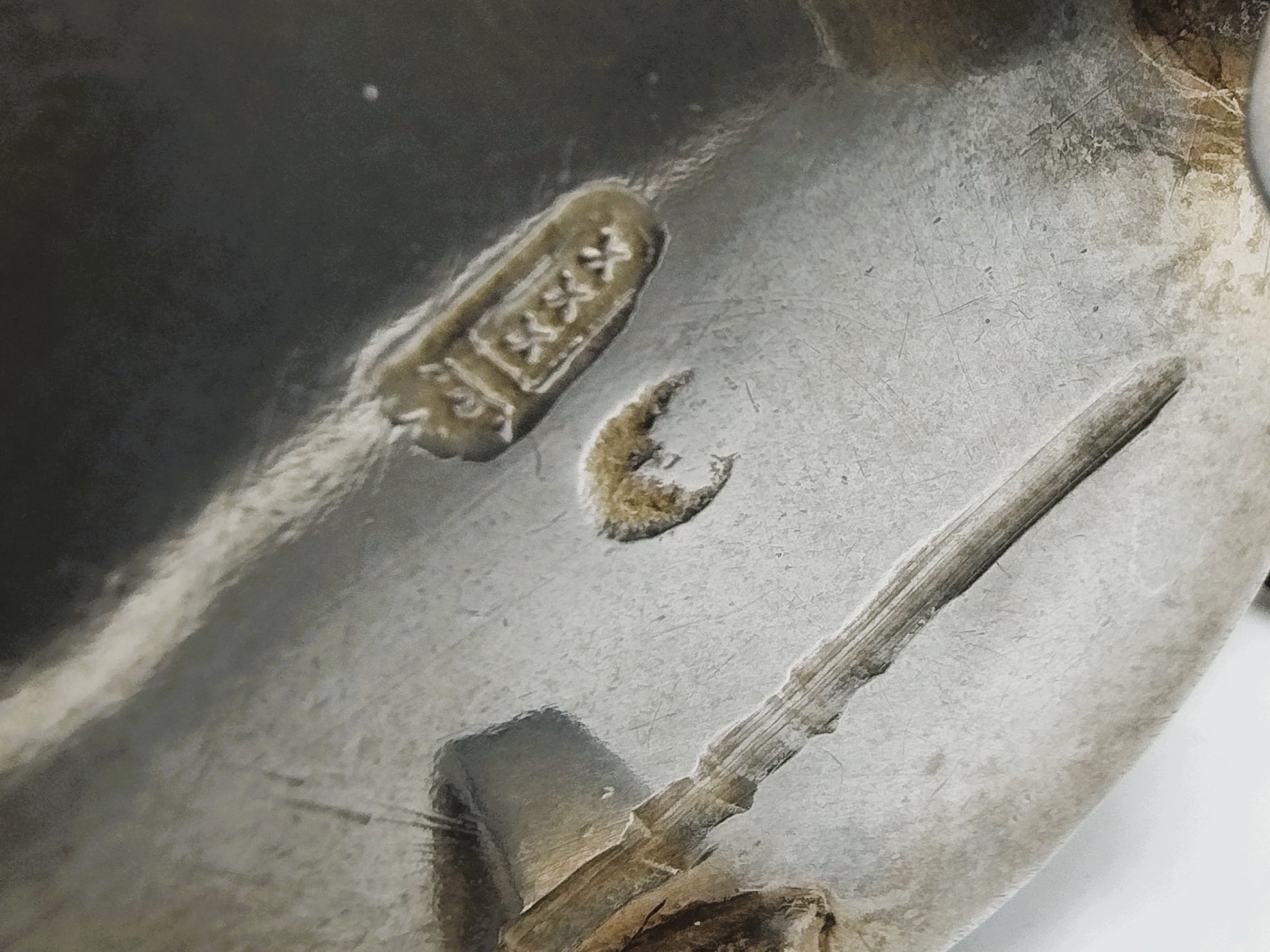De koffiekan is gekeurd met een vrouwelijke buste kijkend naar links en een toetstreek. Verder gekeurd met het stadskeur van Amsterdam. Tenslotte is de kan voorzien van een L wat het lossingsteken van Alkmaar is in het jaar 1795.