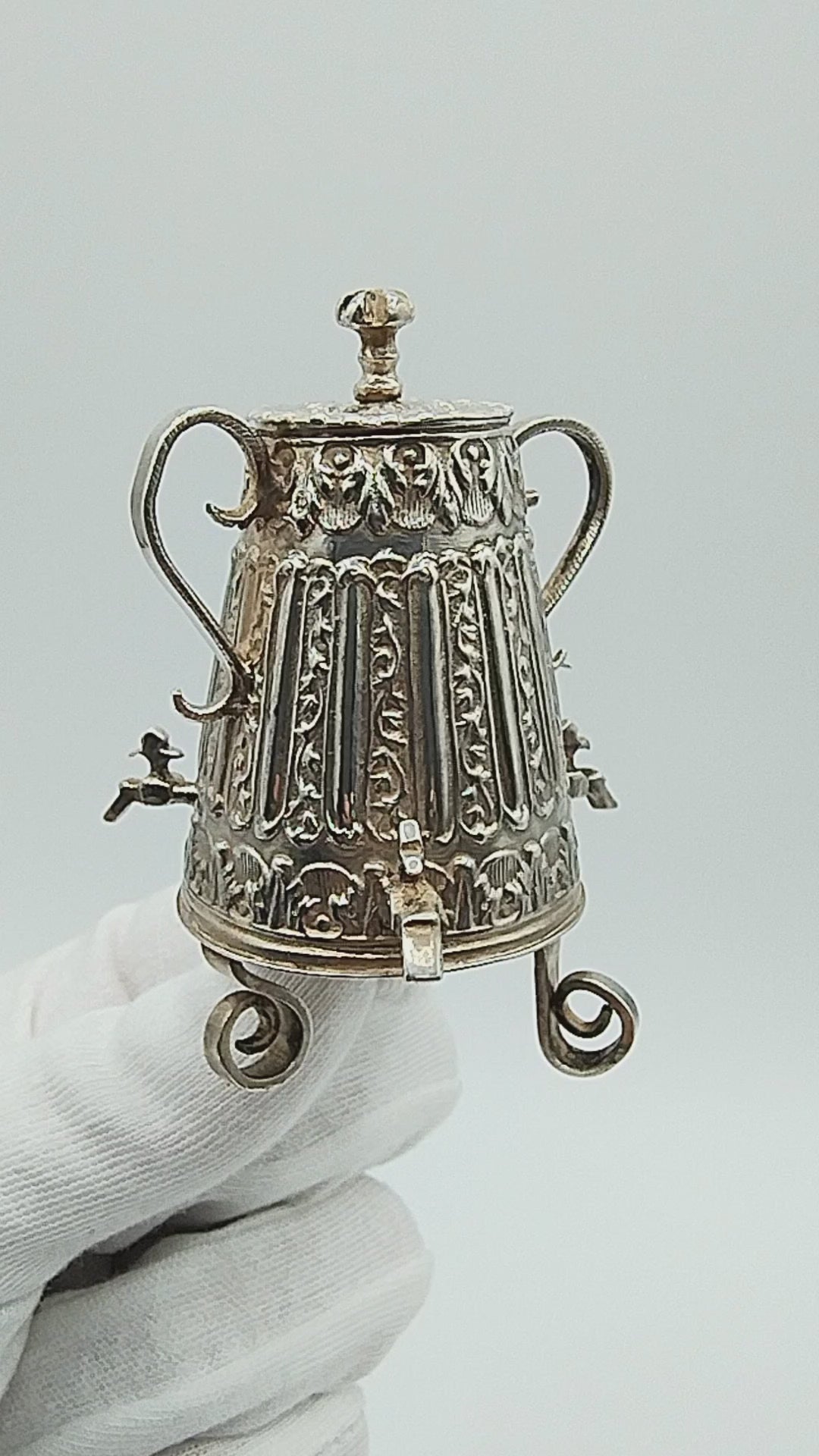 Zilveren miniatuur koffiekan met 3 kranen, Amsterdam, 1725