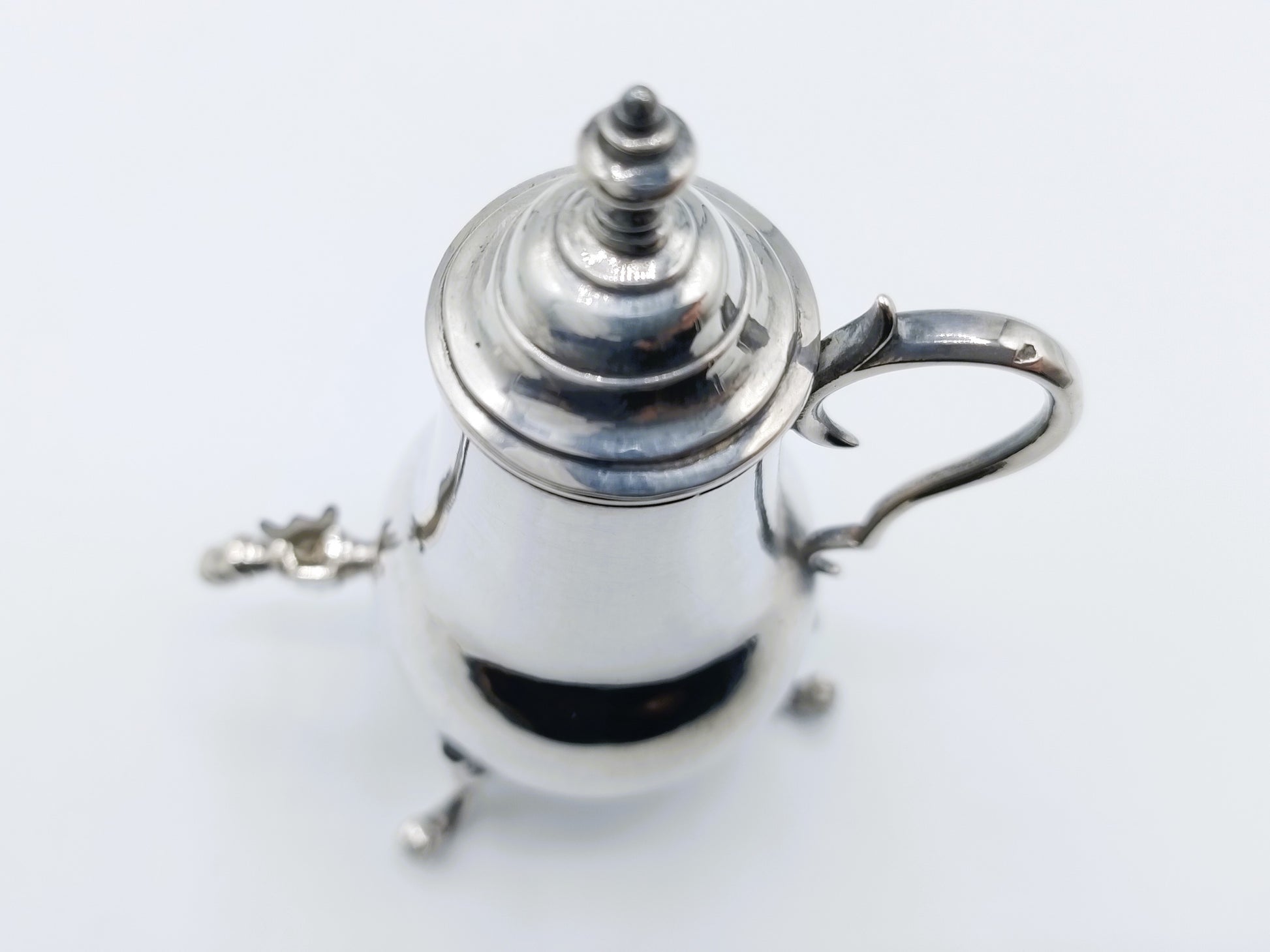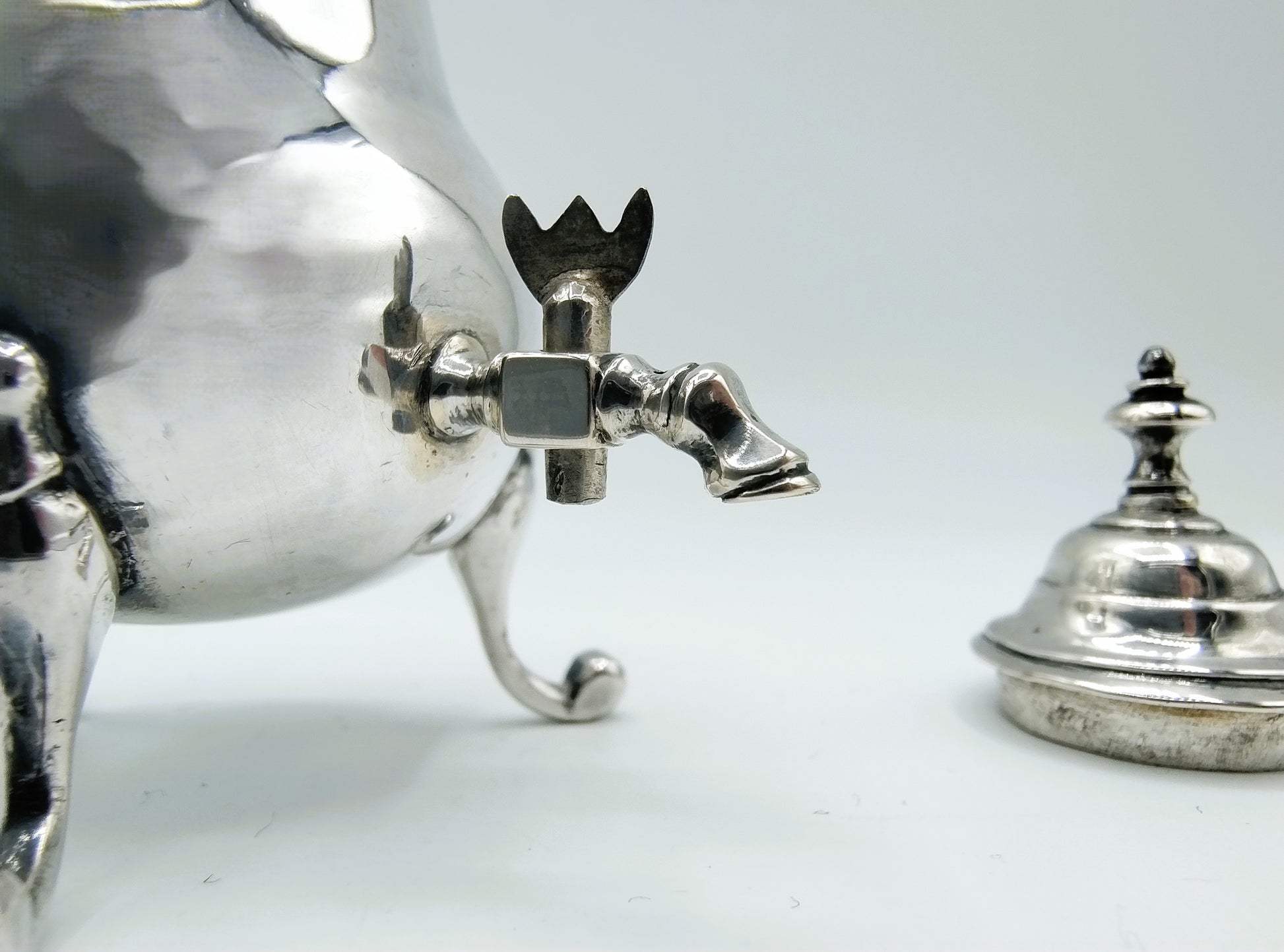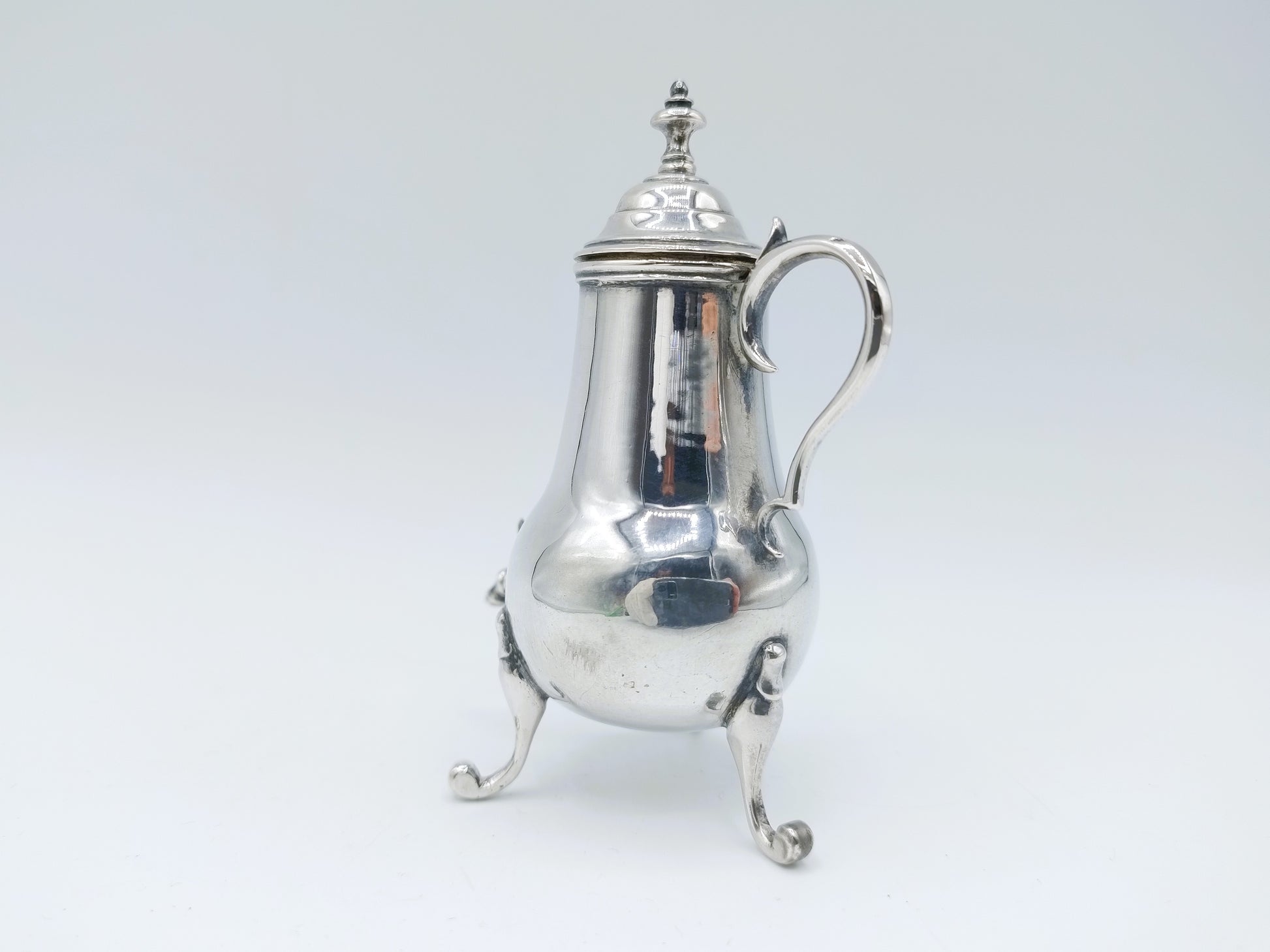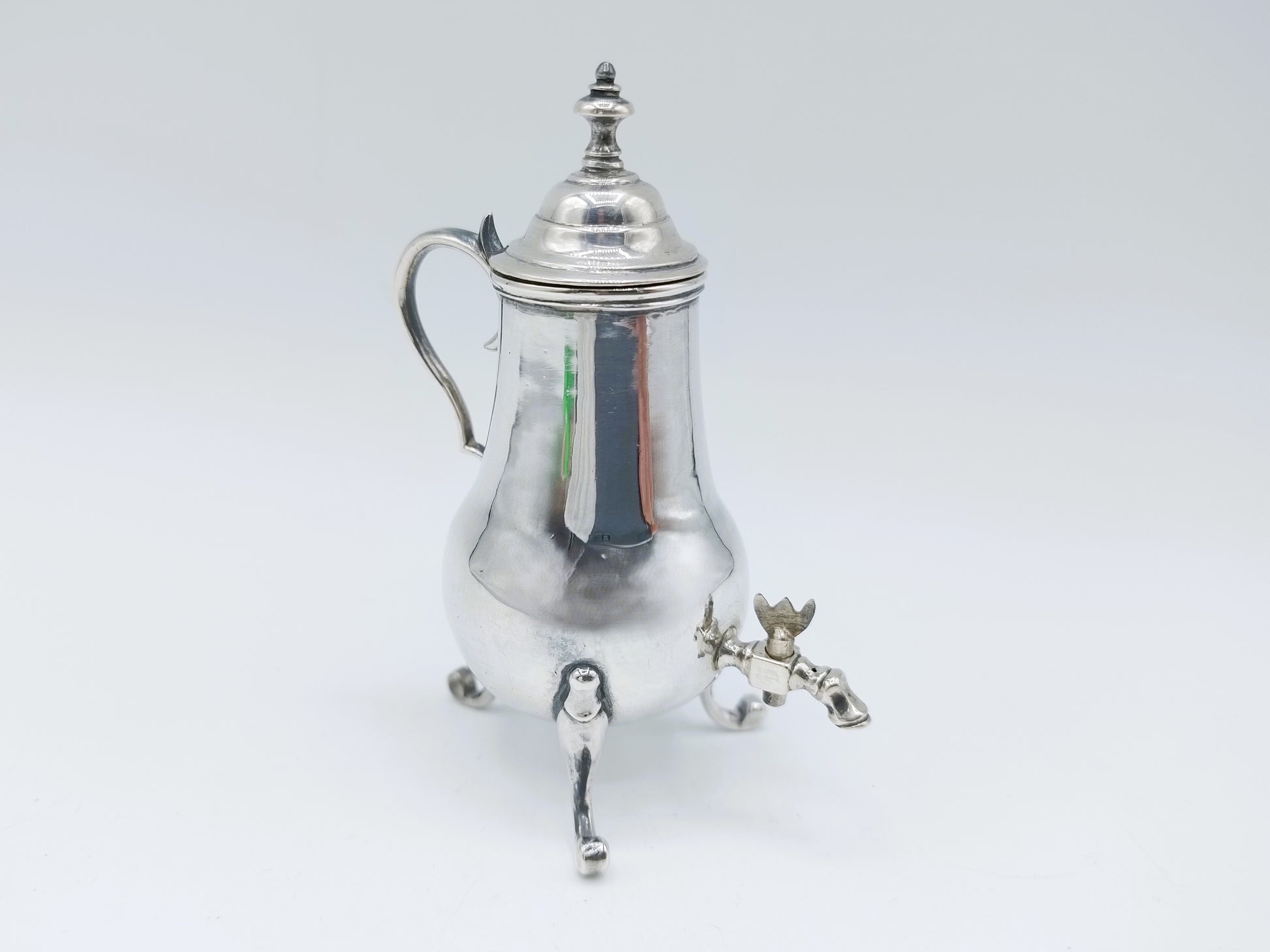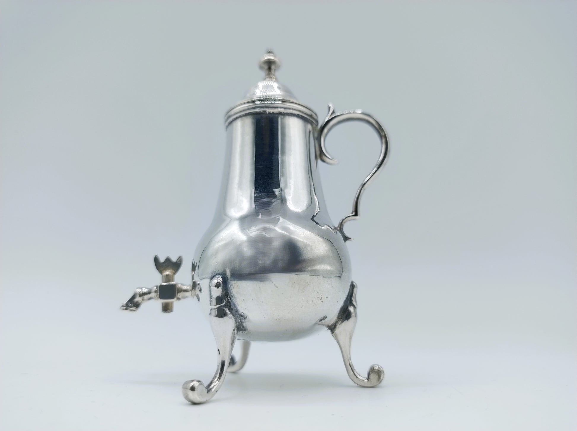 18e Eeuwse zilveren miniatuur kraantjeskan gemaakt door de zilversmid Arnoldus van Geffen uit Amsterdam. Hij was werkzaam van 1728 tot 1769.