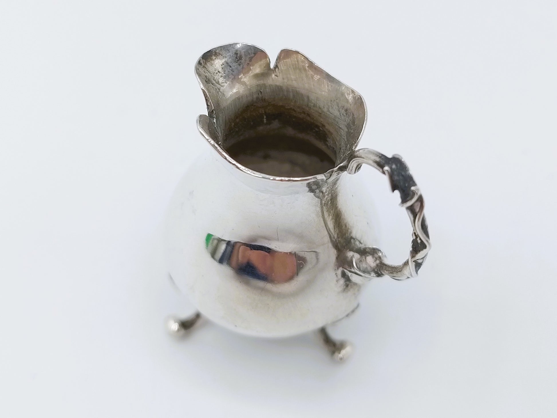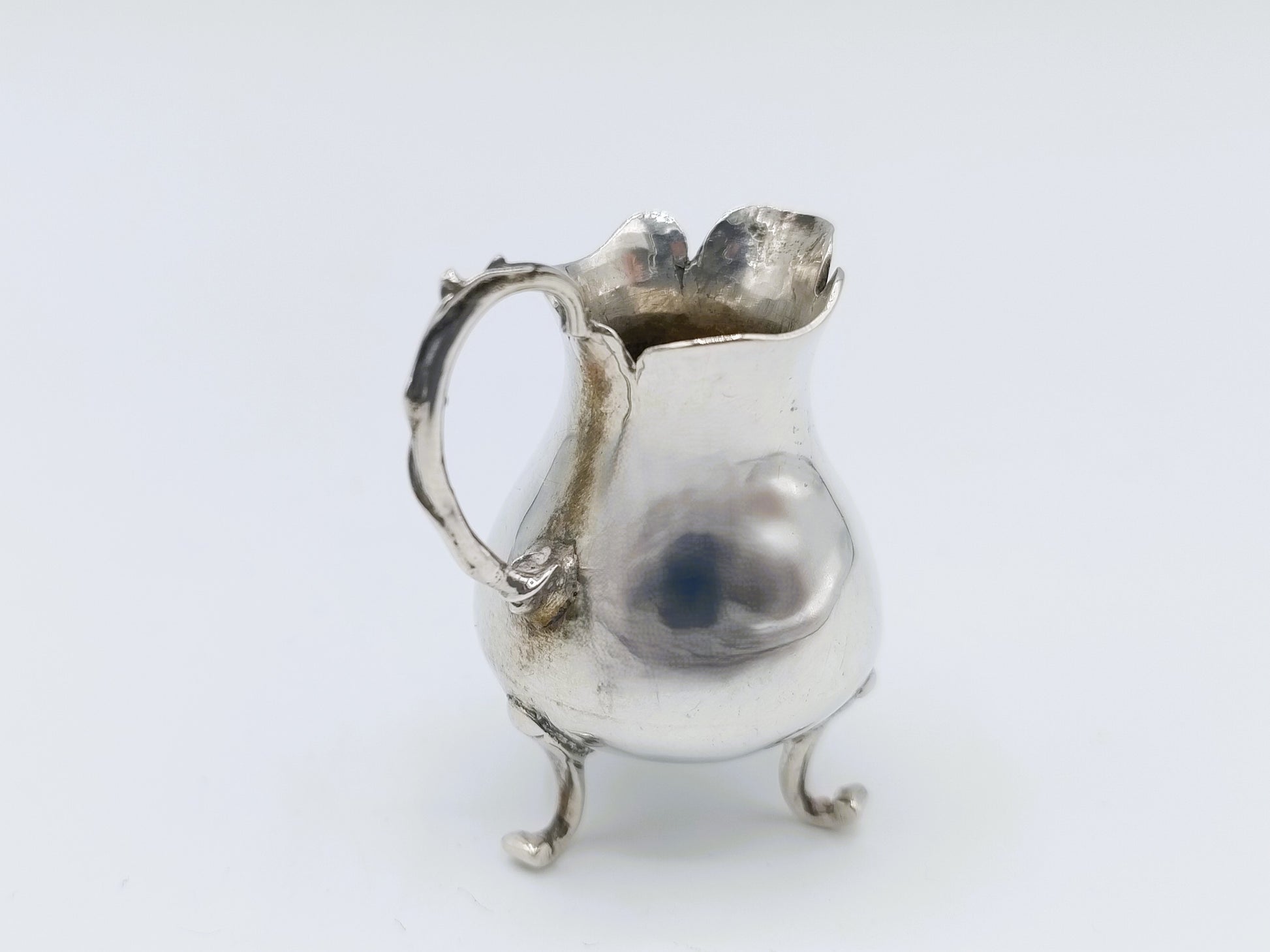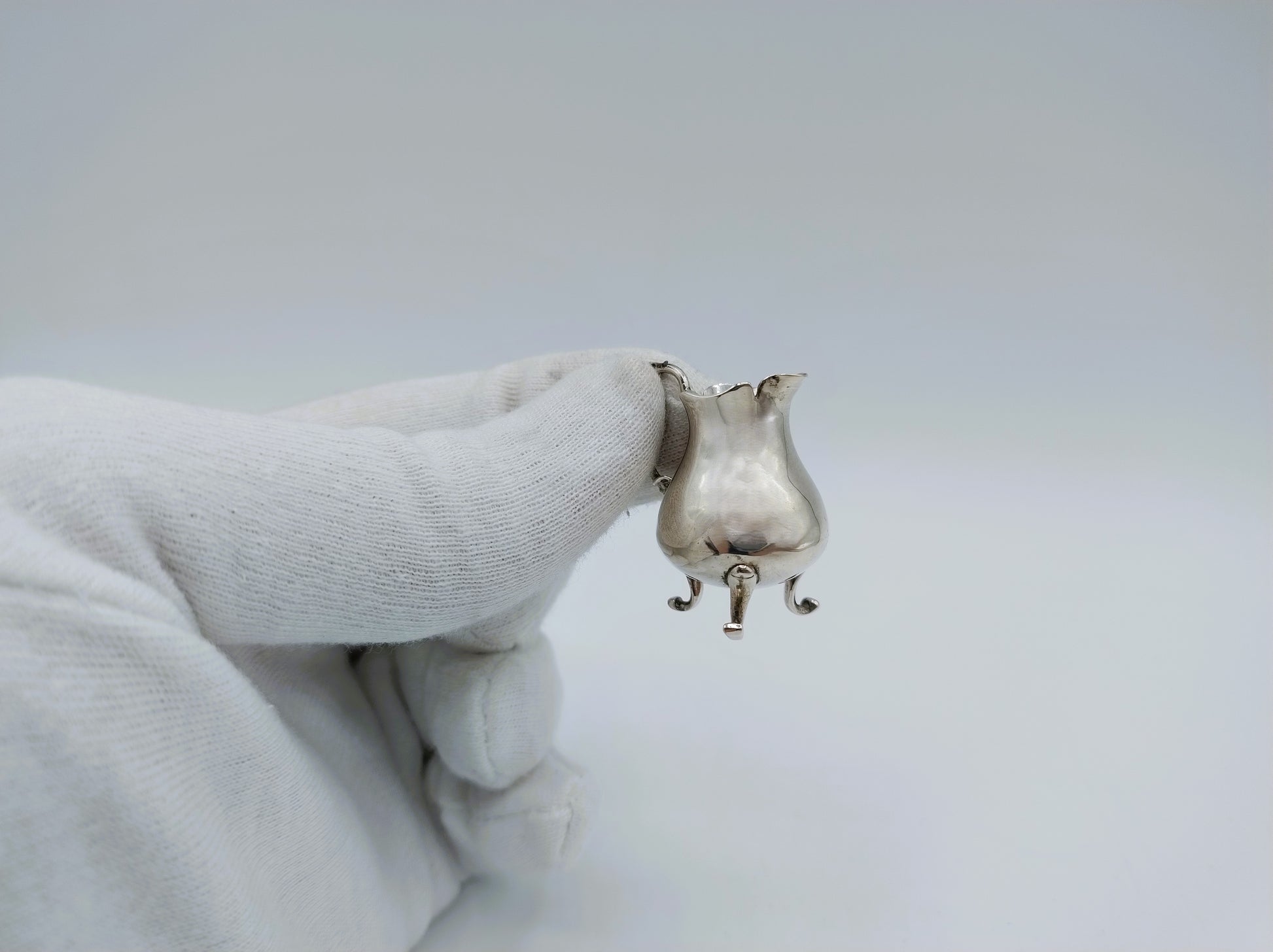 18e Eeuwse zilveren minatuur melkkan gemaakt door de Amsterdamse zilversmid Pieter van Somerwil II. Werkzaam van 1764 tot 1802.