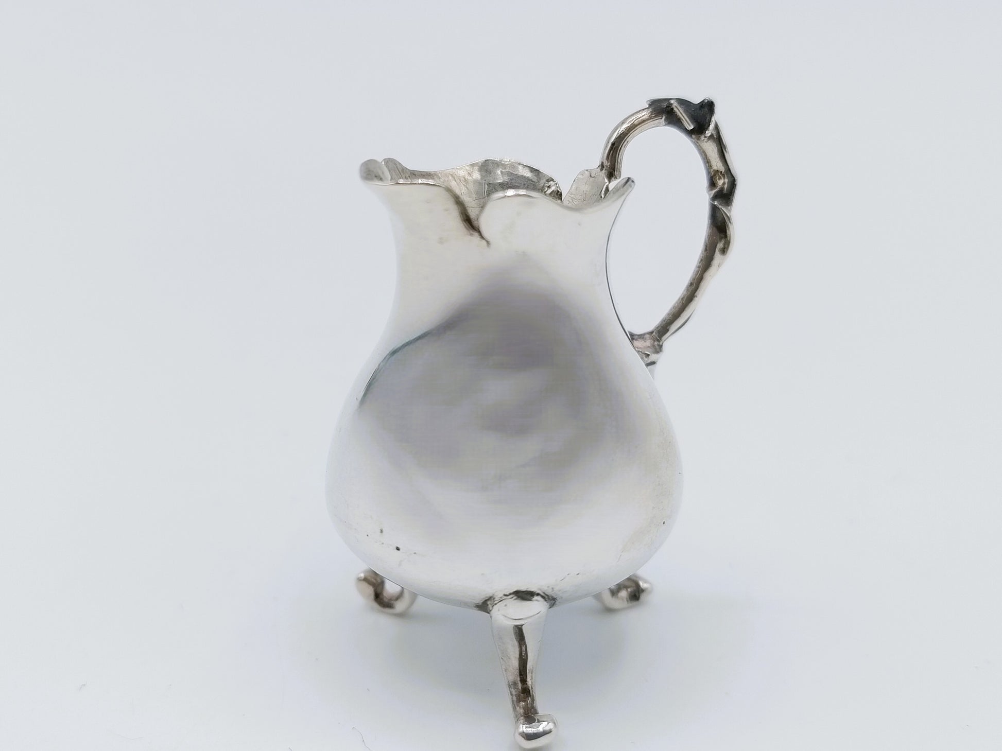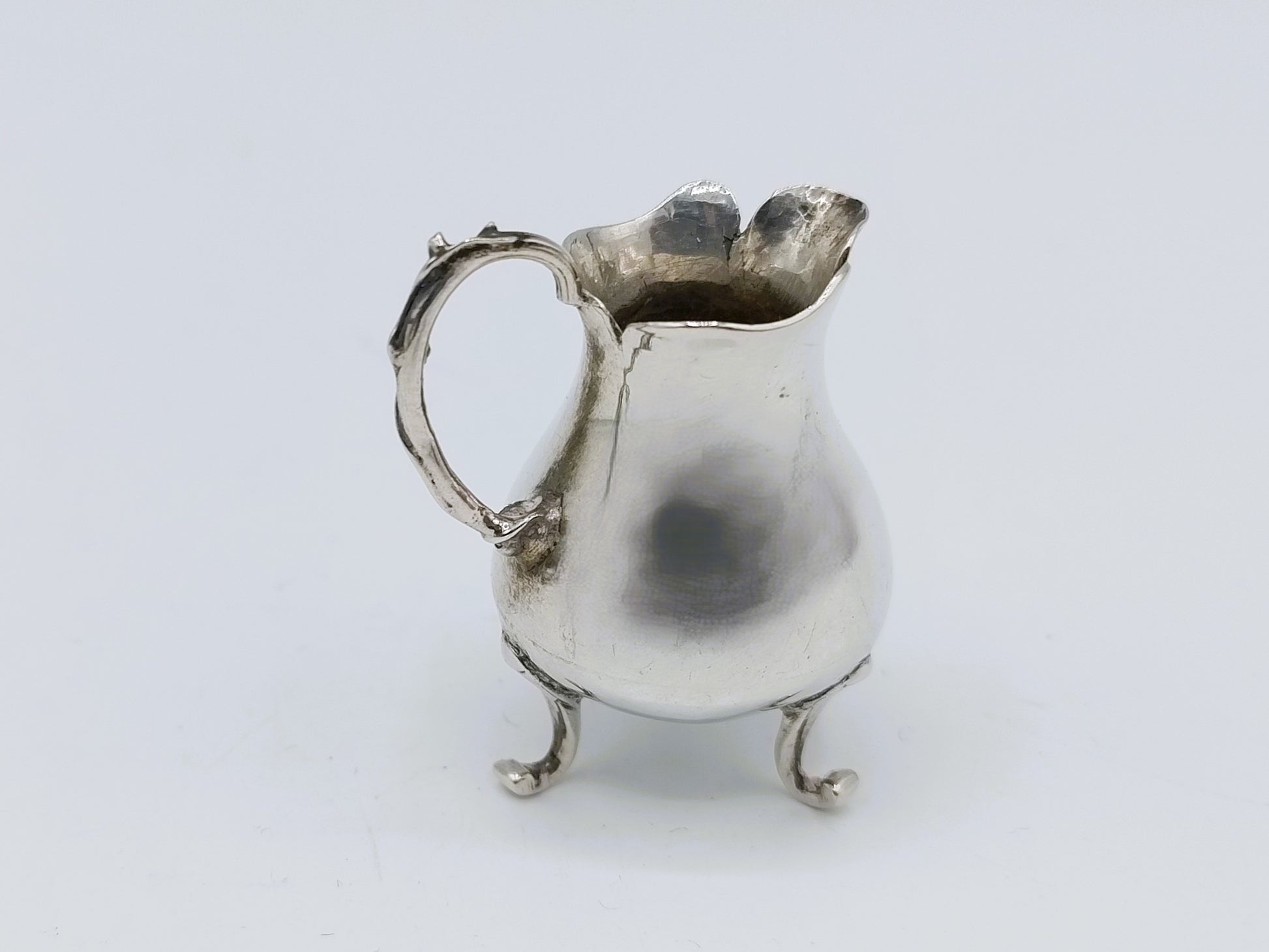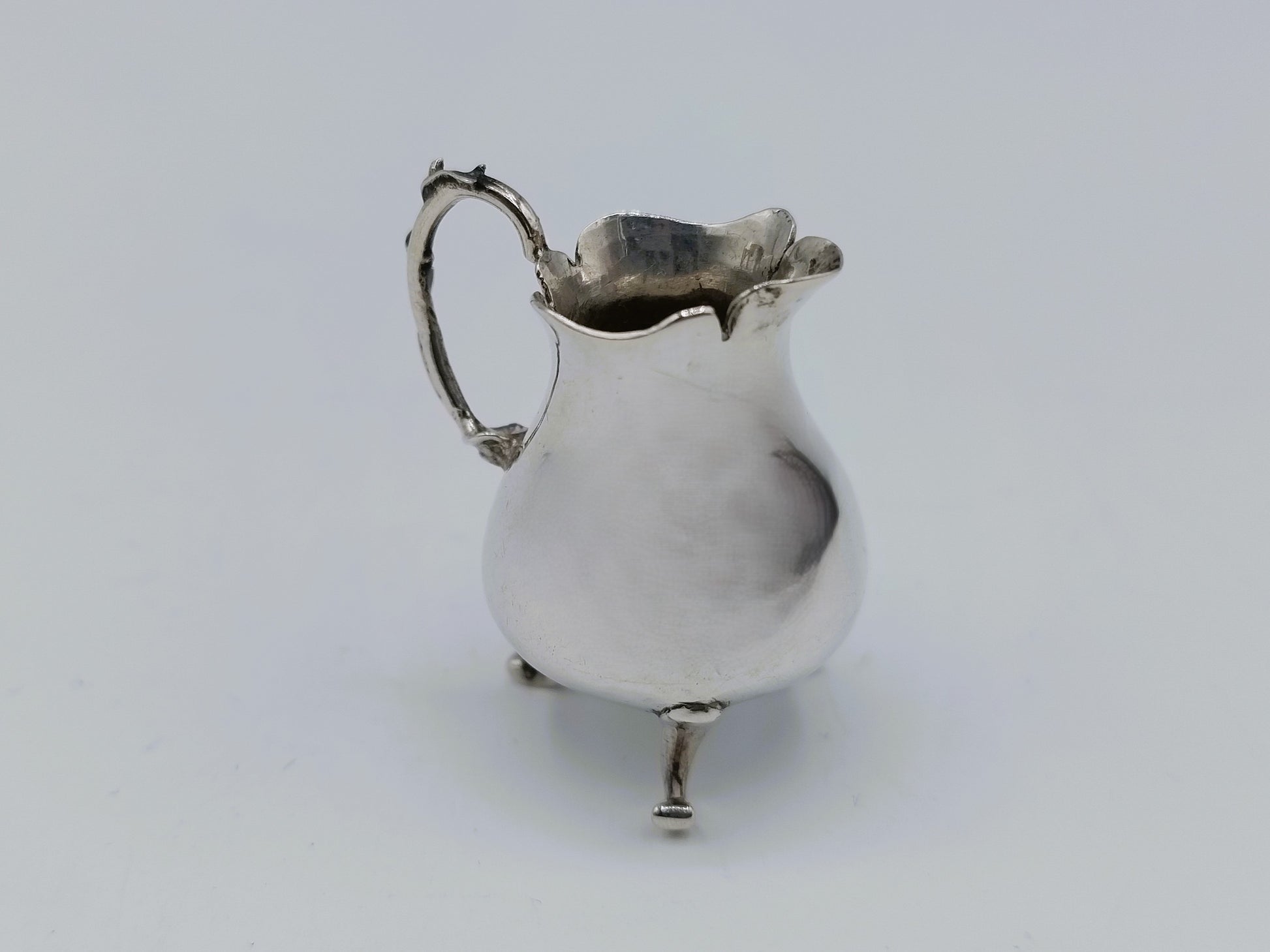 18e Eeuwse zilveren minatuur melkkan gemaakt door de Amsterdamse zilversmid Pieter van Somerwil II. Werkzaam van 1764 tot 1802.