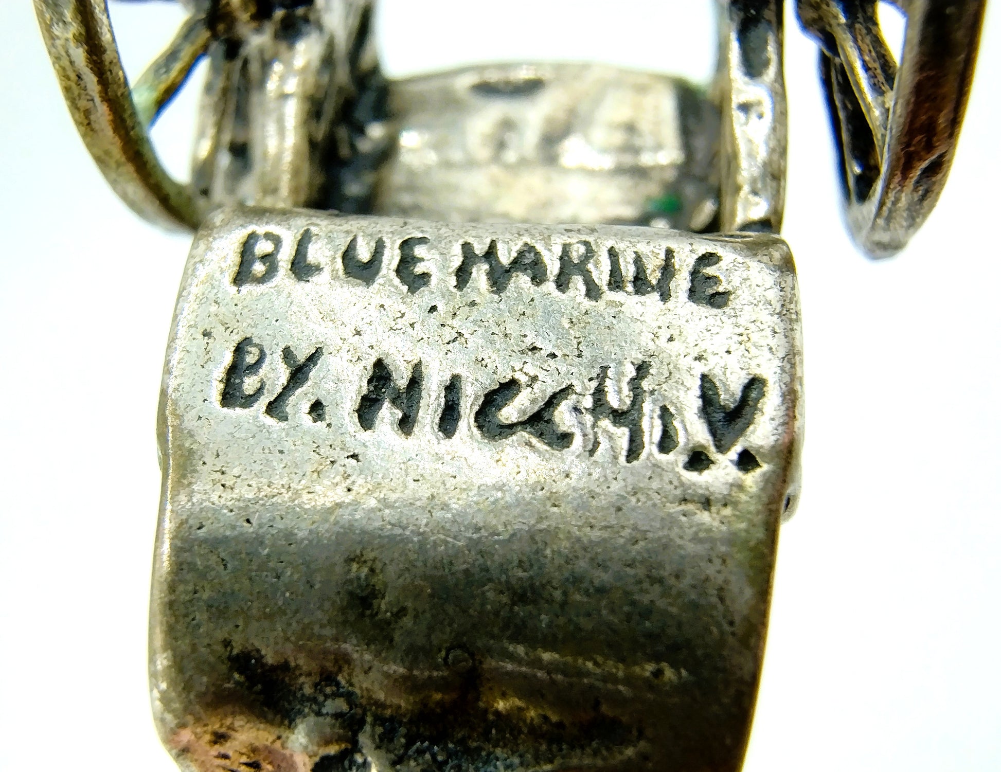 De miniatuur is gekeurd met 800 voor 3e gehalte zilver en 'blue marine by Nicchiy'.
