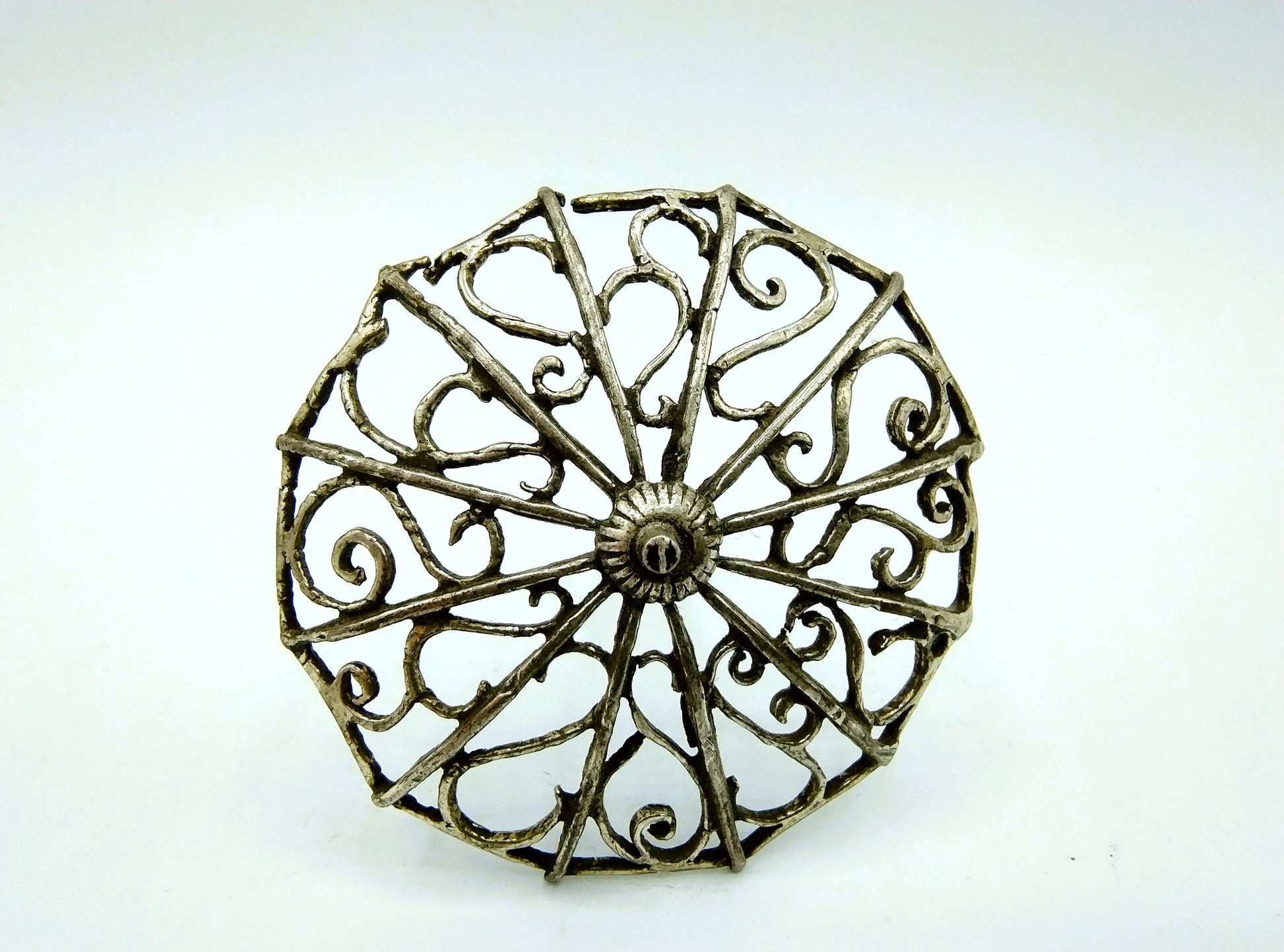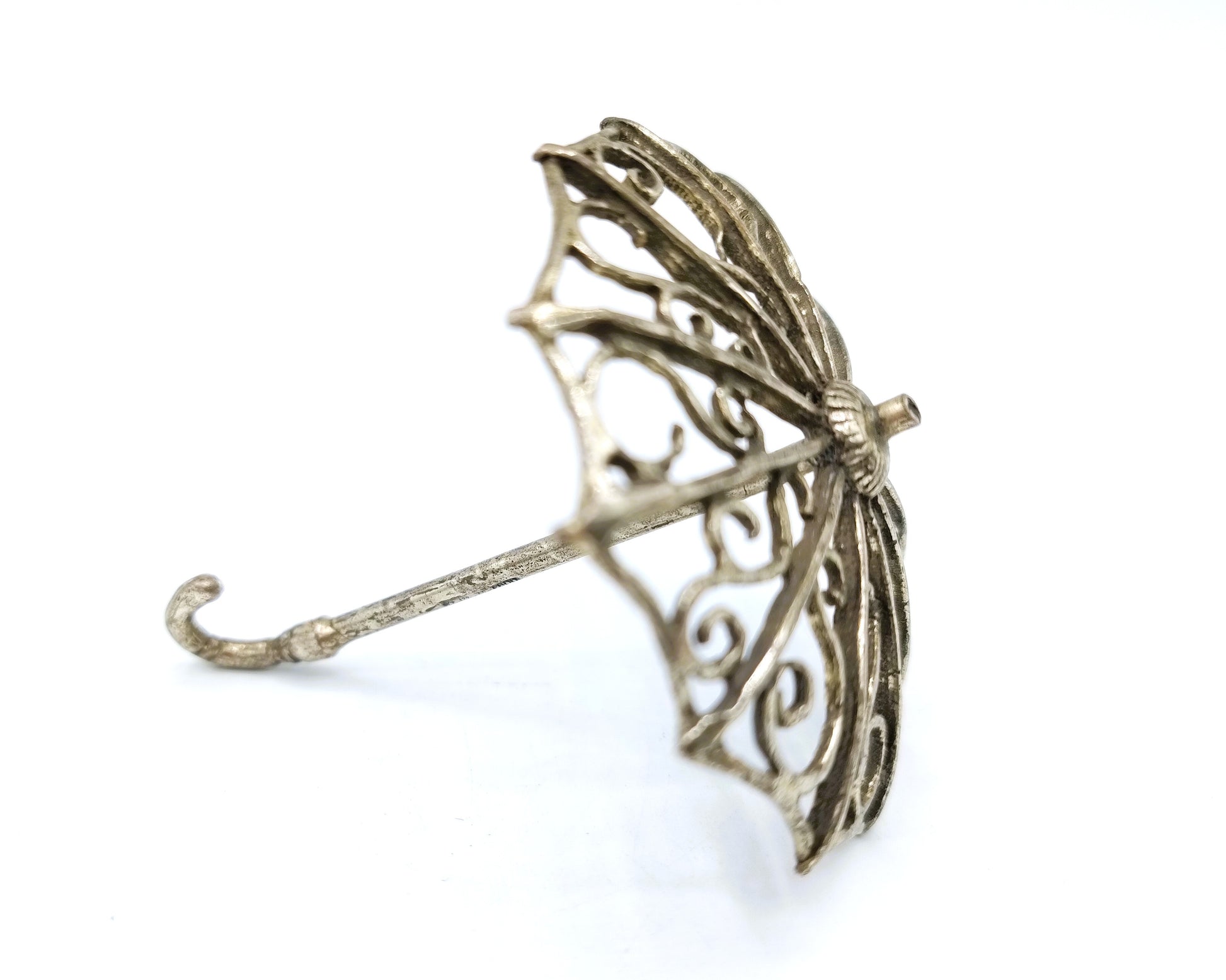 Zilveren miniatuur van een paraplu. Fijn bewerkt.