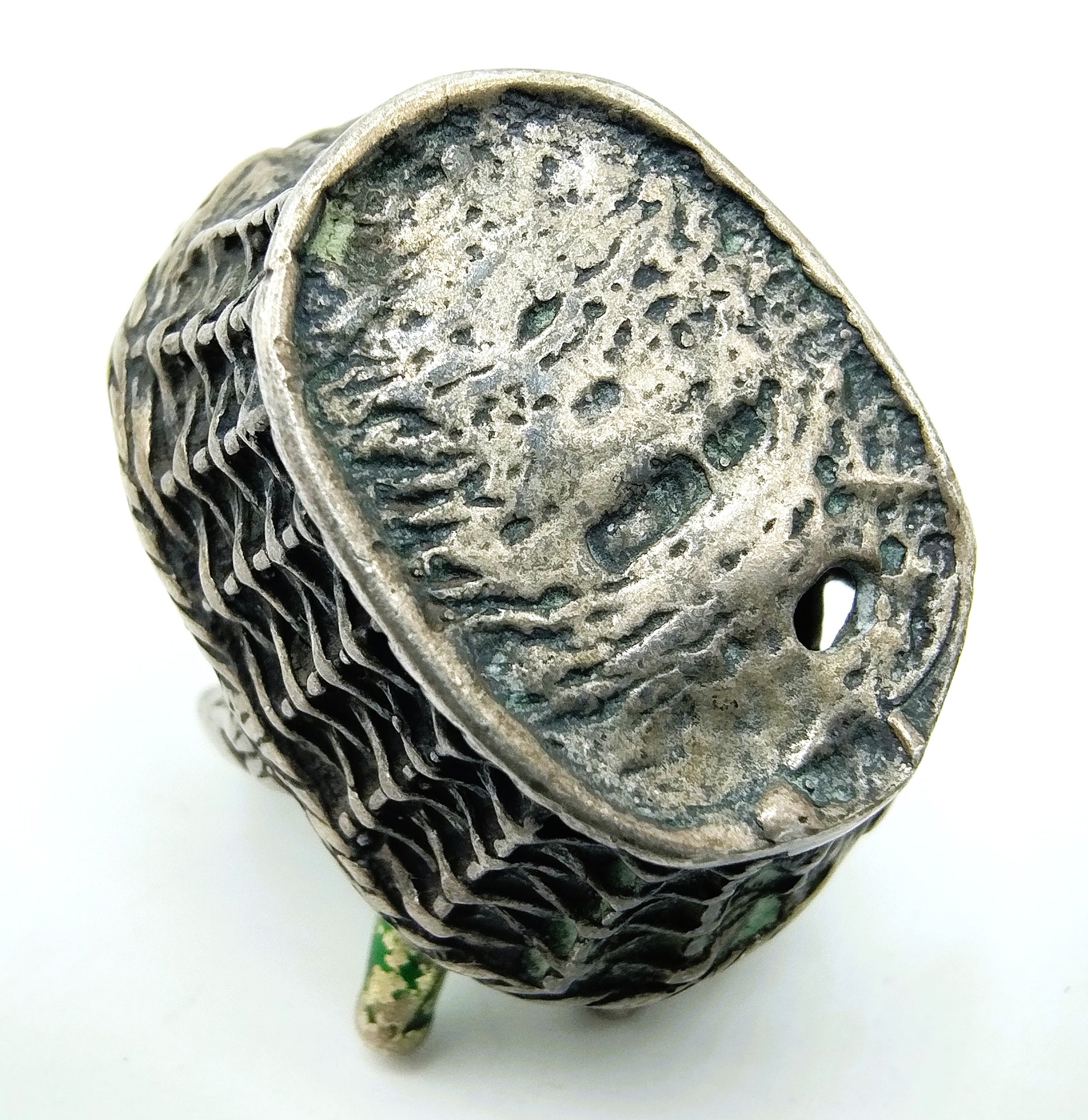 De mand is gekeurd met 925 voor 1e gehalte zilver en een onleesbaar meesterkeur.