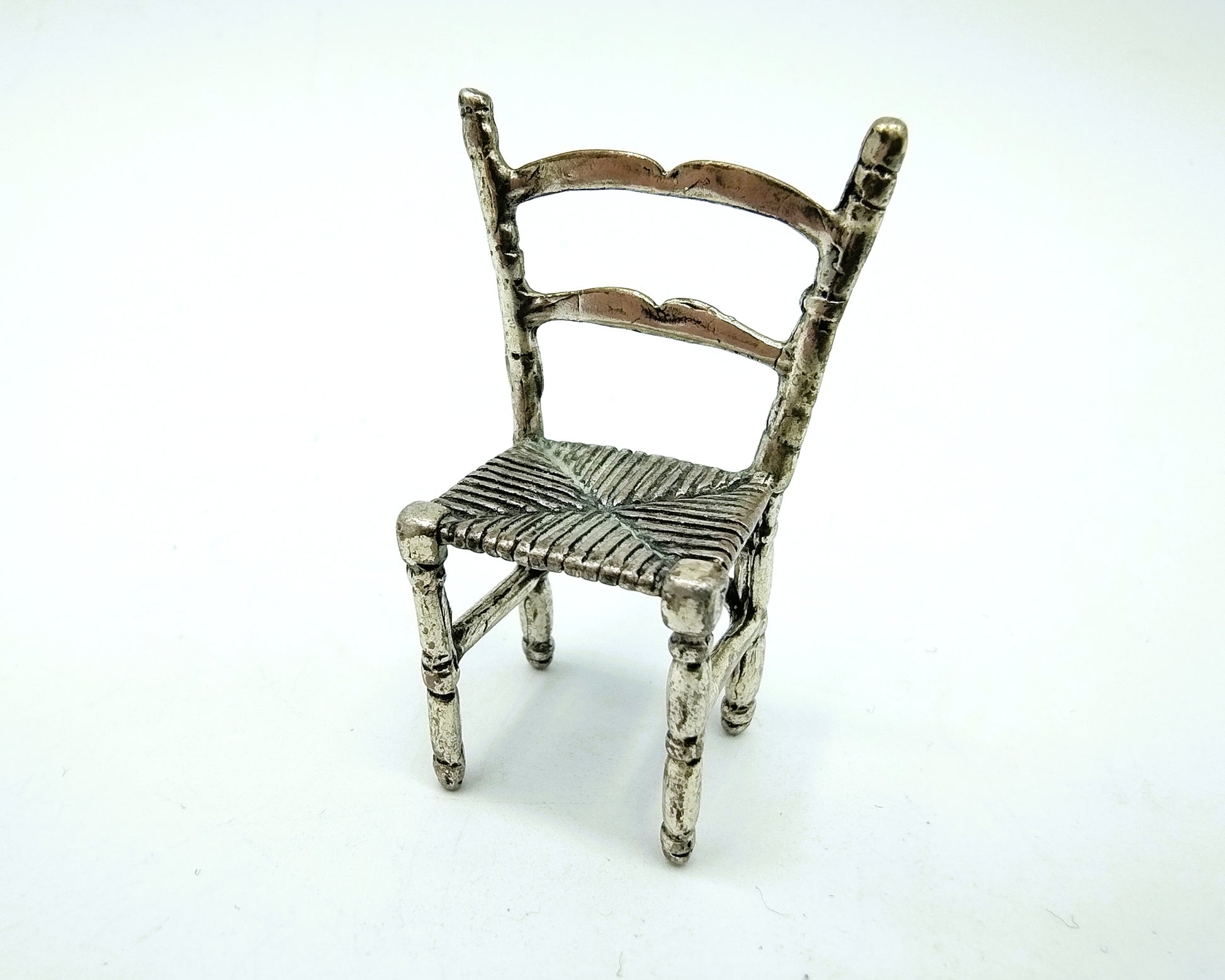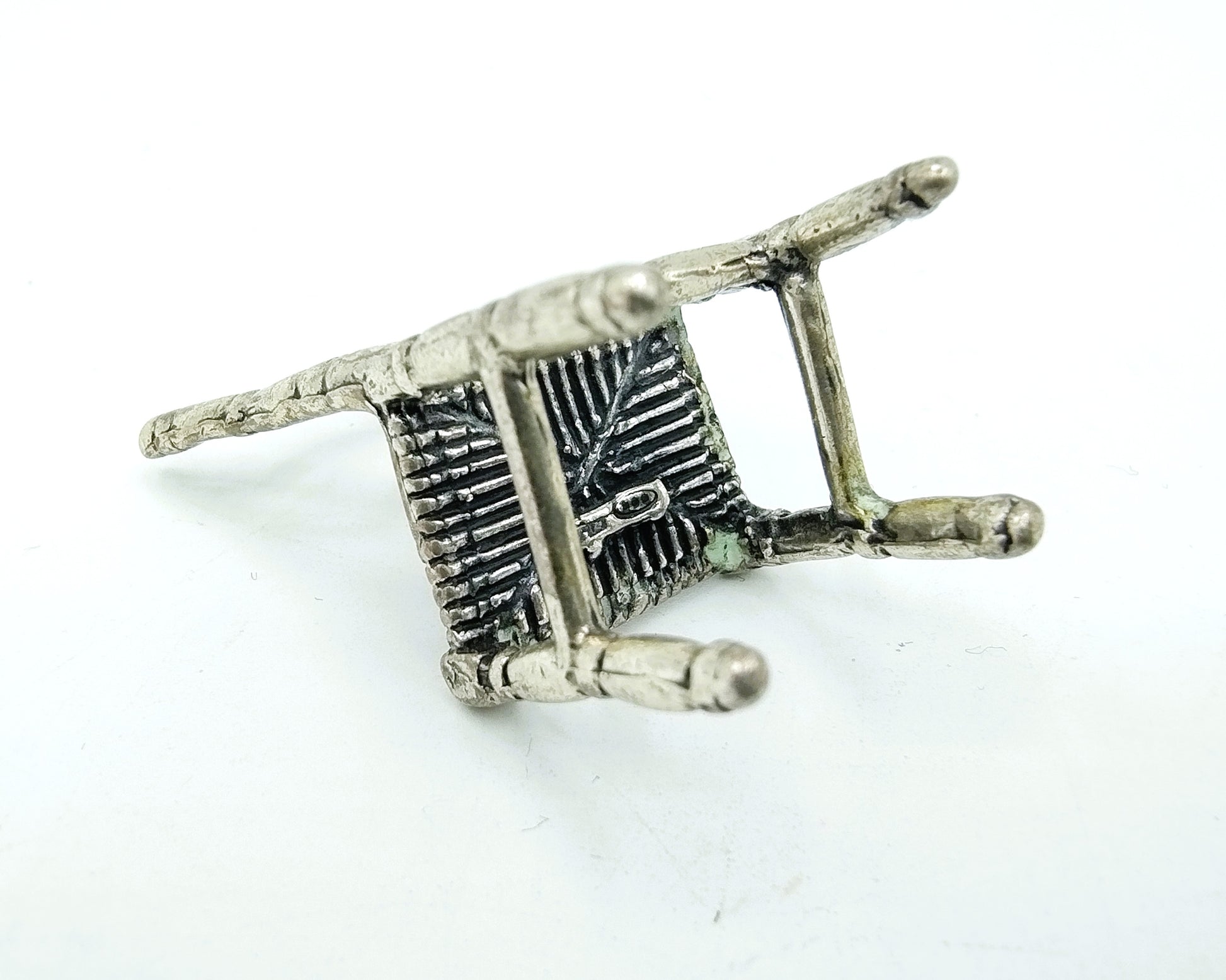 Zilveren miniatuur van een stoel gemaakt in Arezzo. (Italië)