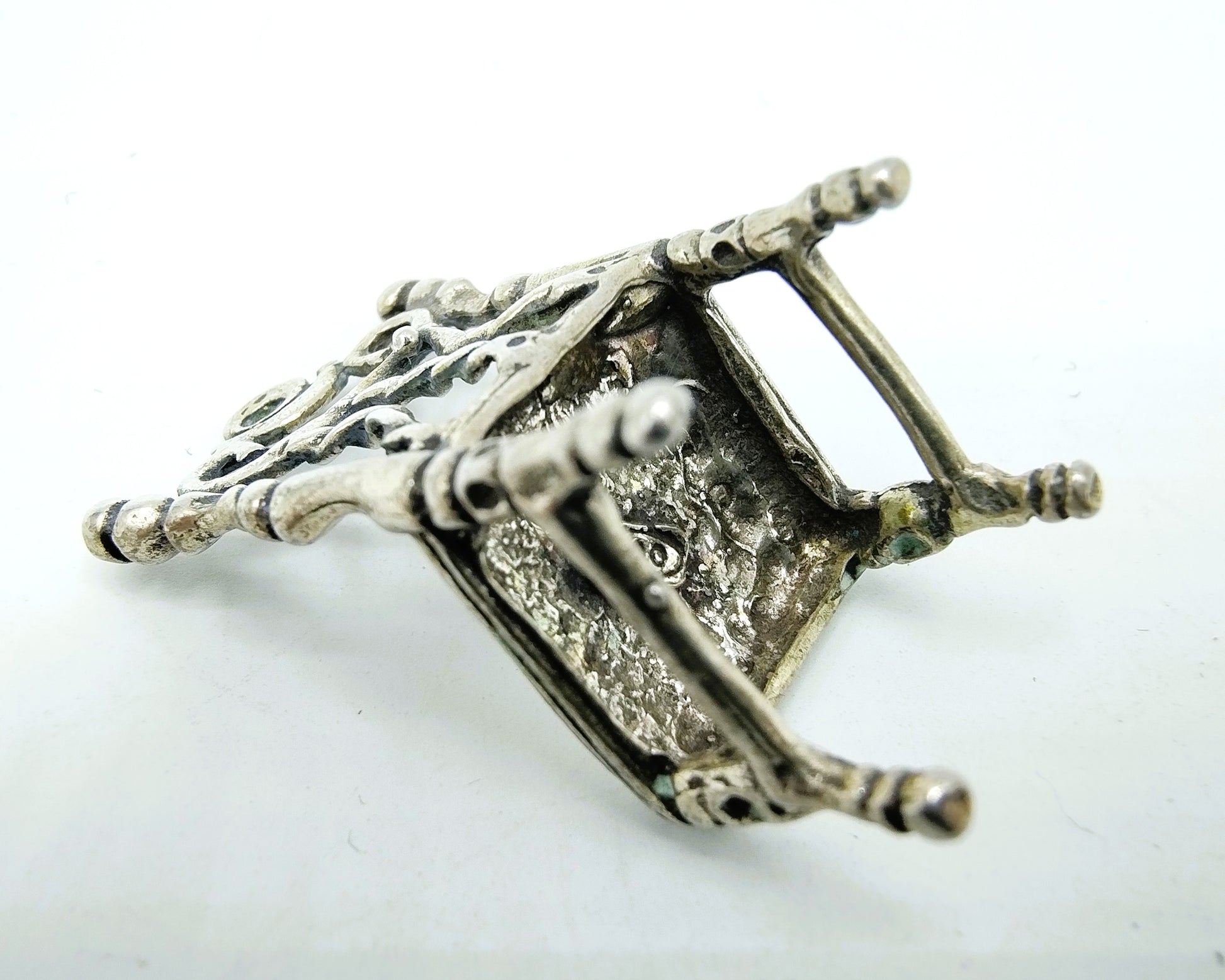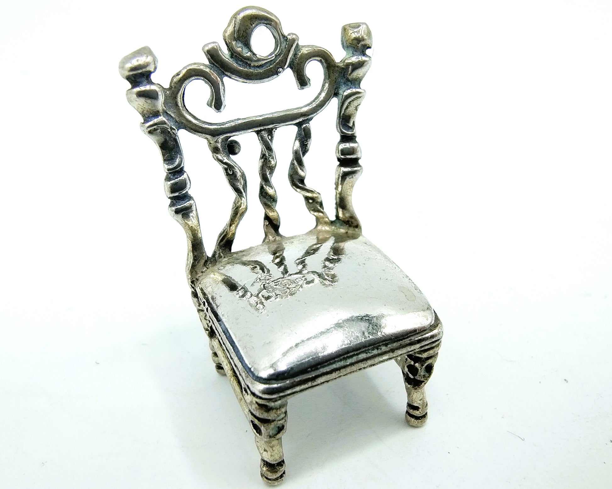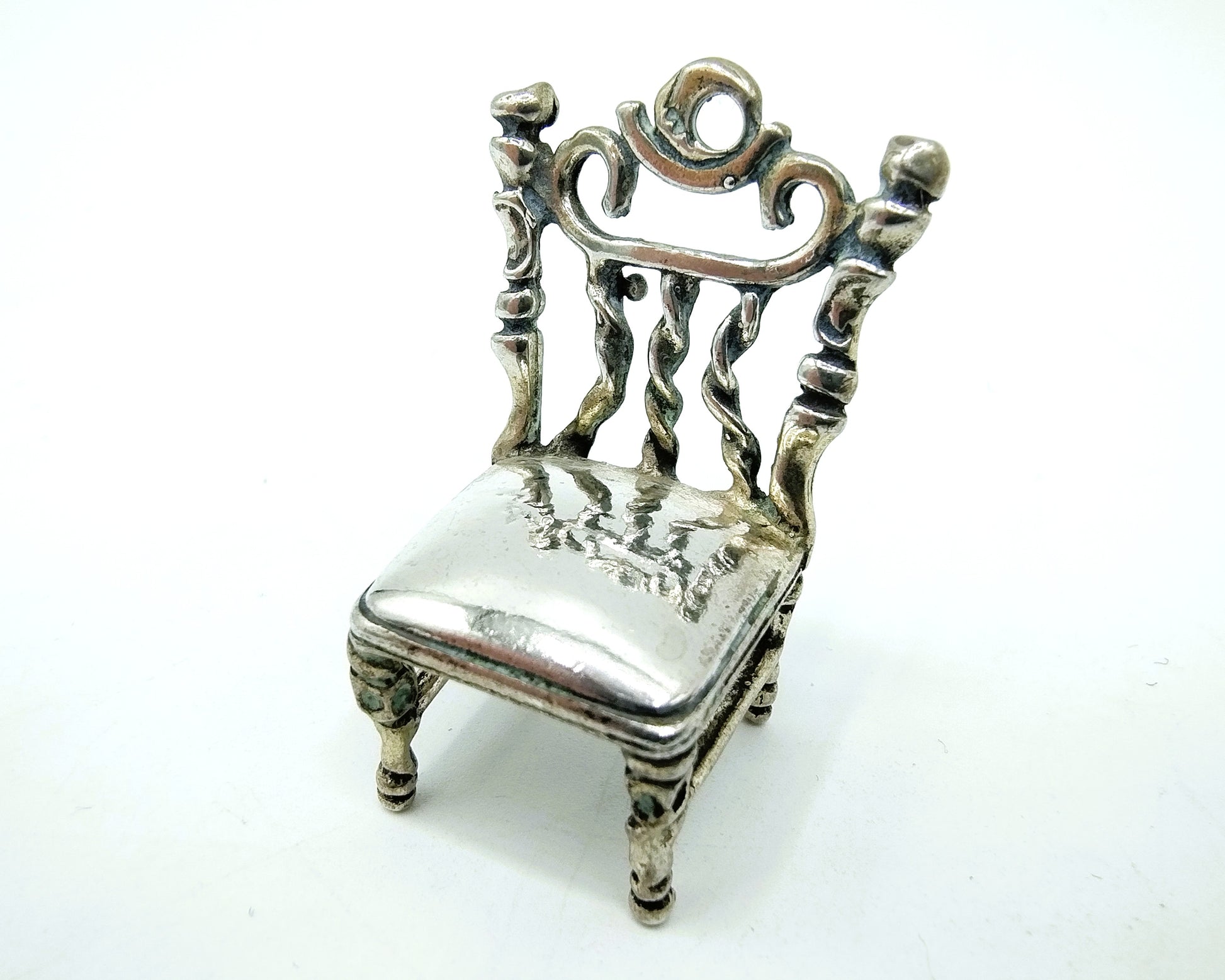 Zilveren miniatuur van een stoel gemaakt in Italië.