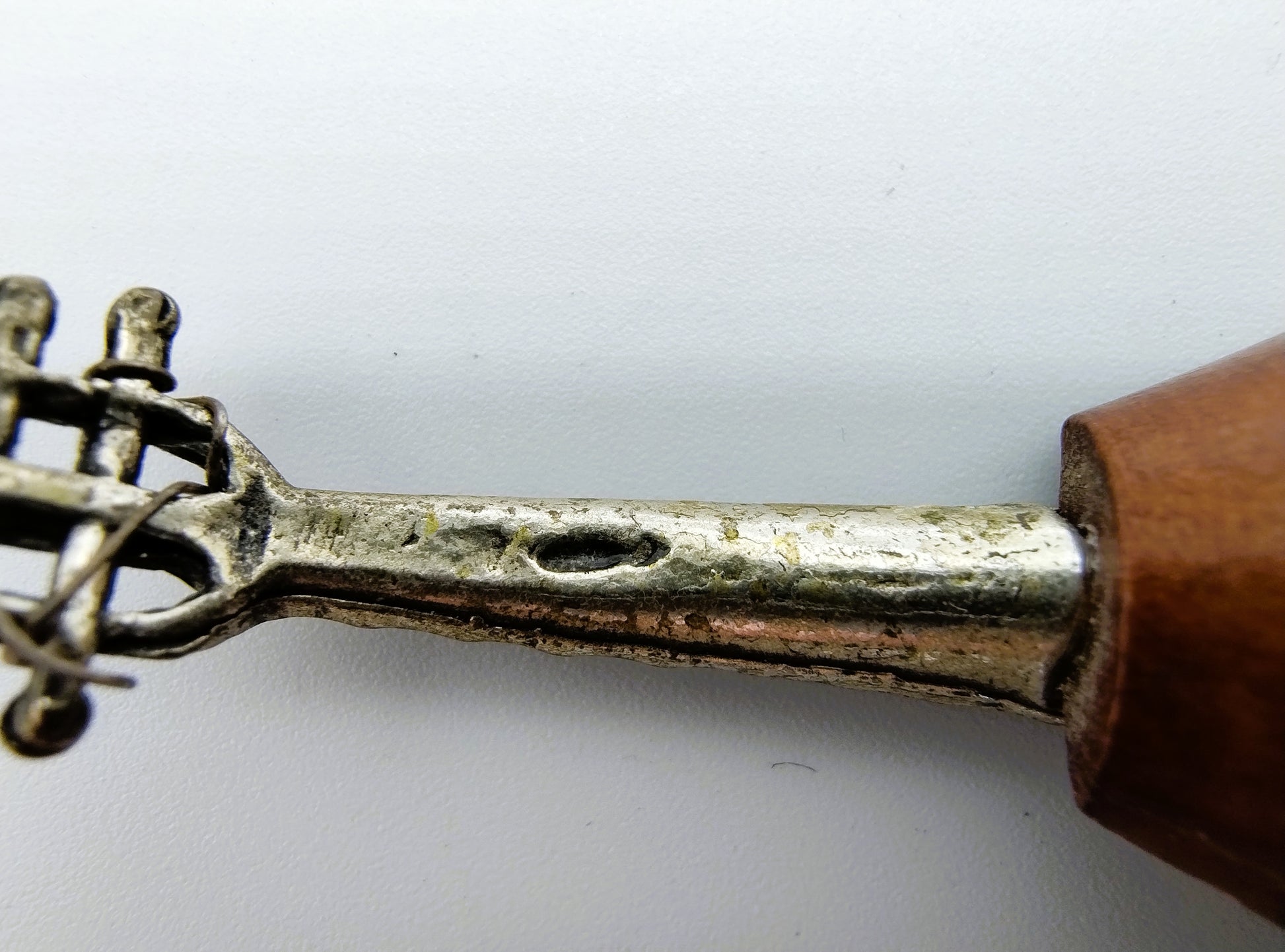 De madoline is opgebouwd uit hout en zilver en gekeurd met 800 voor 3e gehalte zilver.