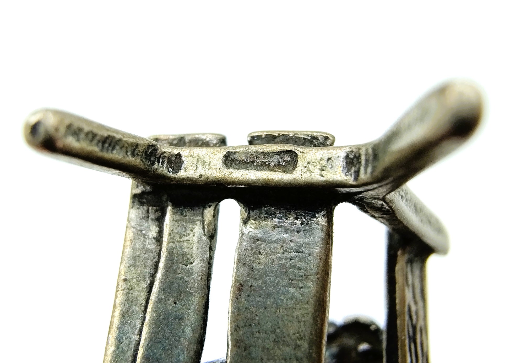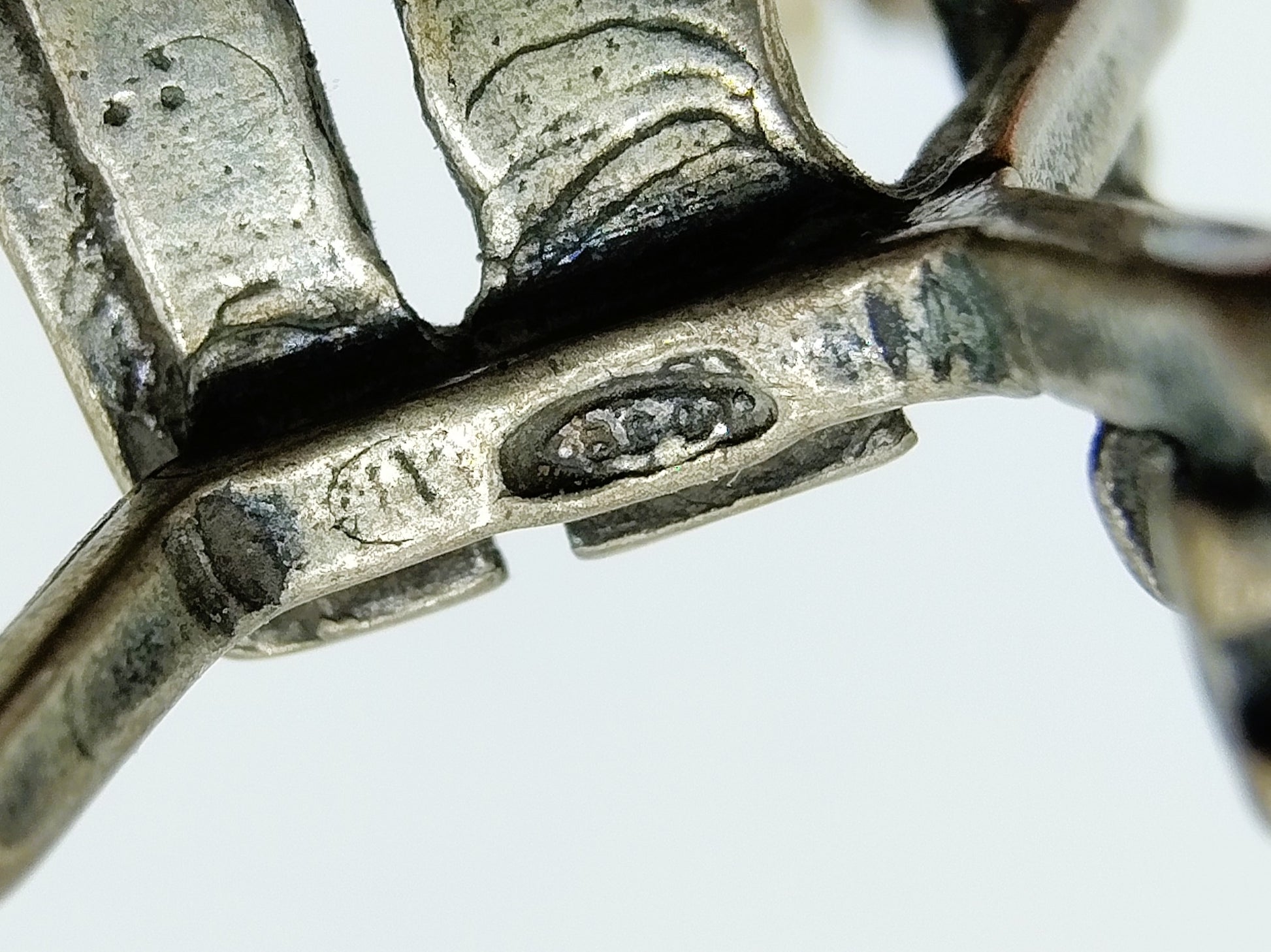 Het bankje is gekeurd met 800 voor 3e gehalte zilver en een onleesbaar meesterkeur.