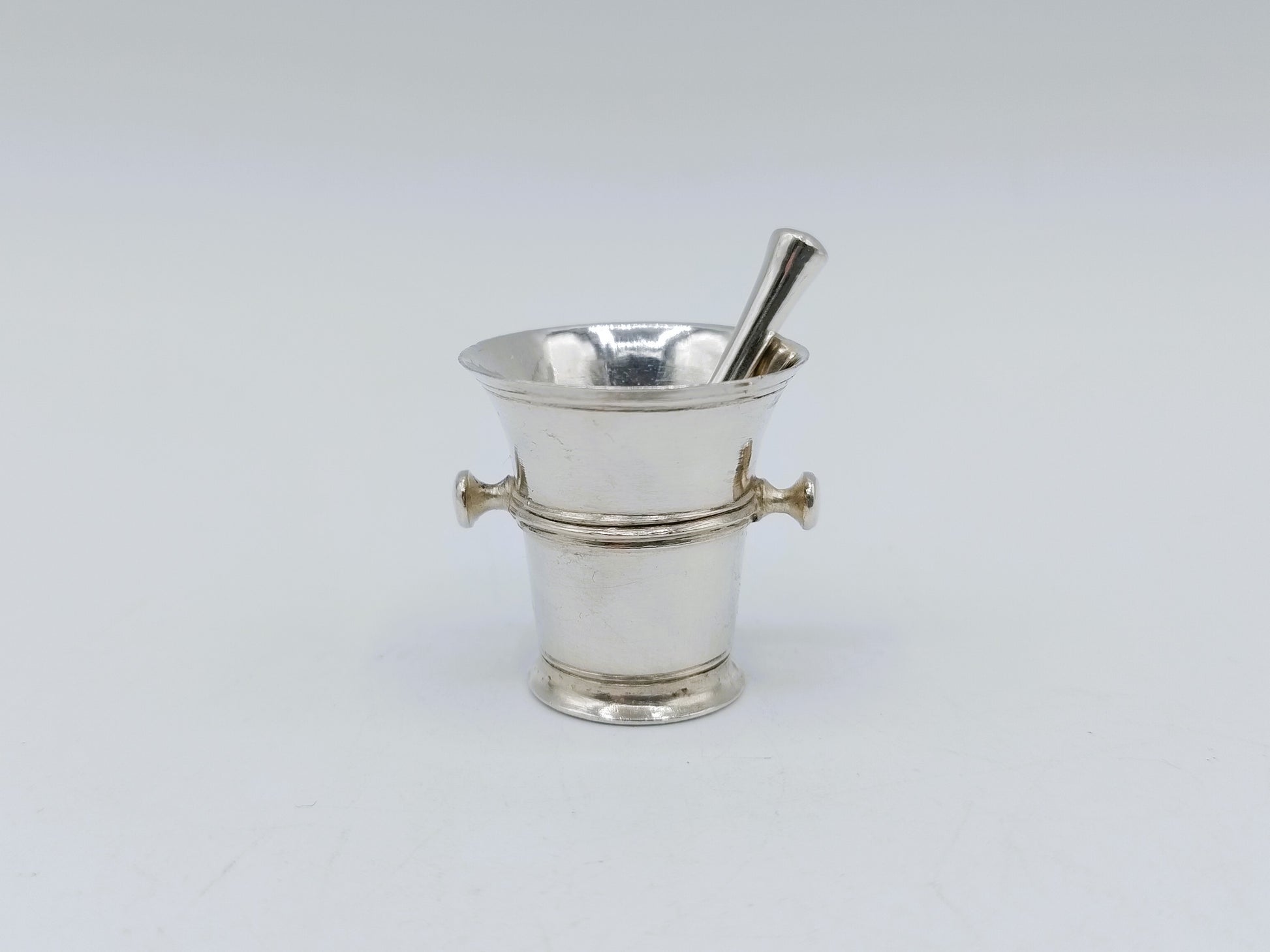 Zilveren miniatuur vijzel met stamper, J. D. Pont, Amsterdam, 1752