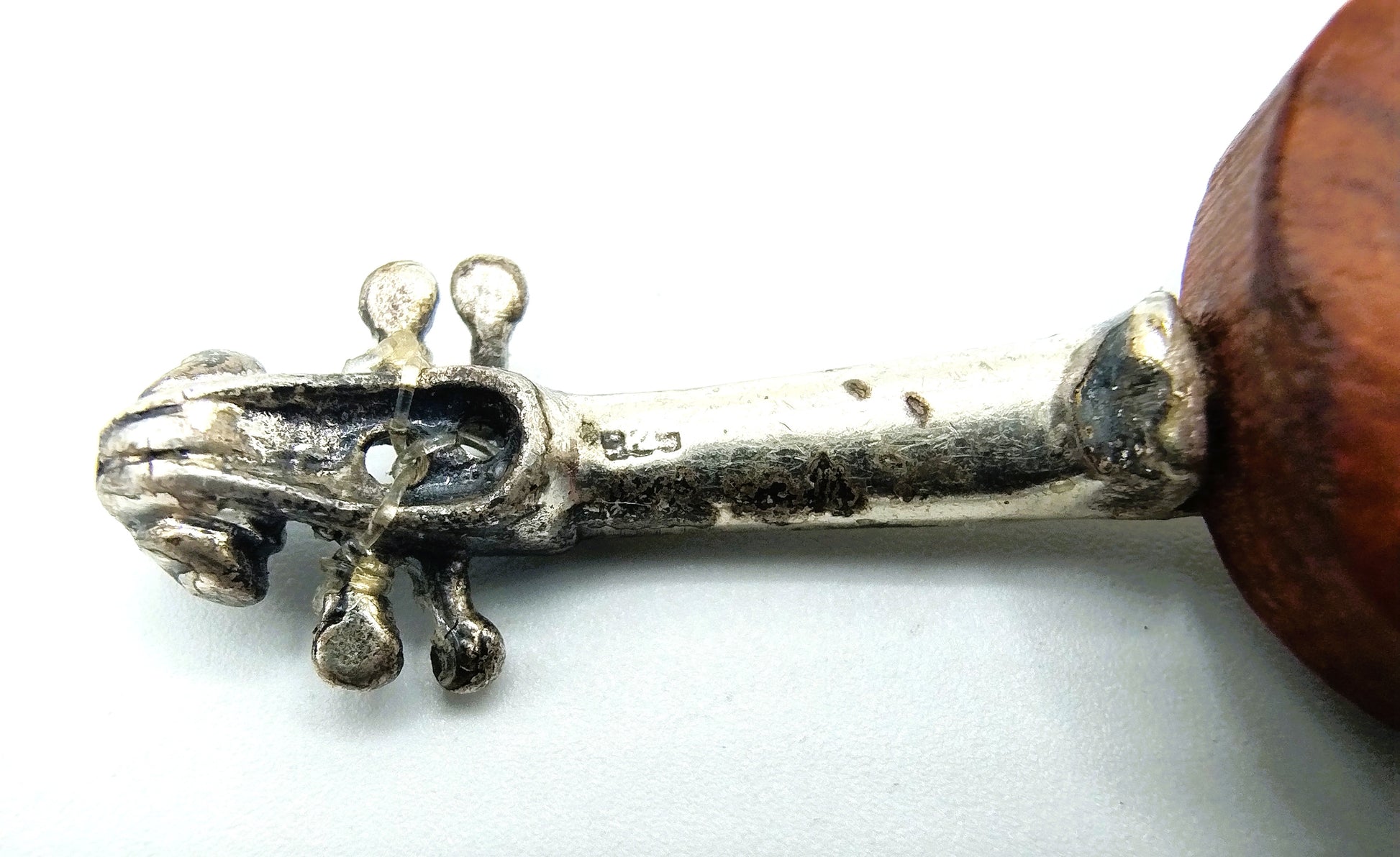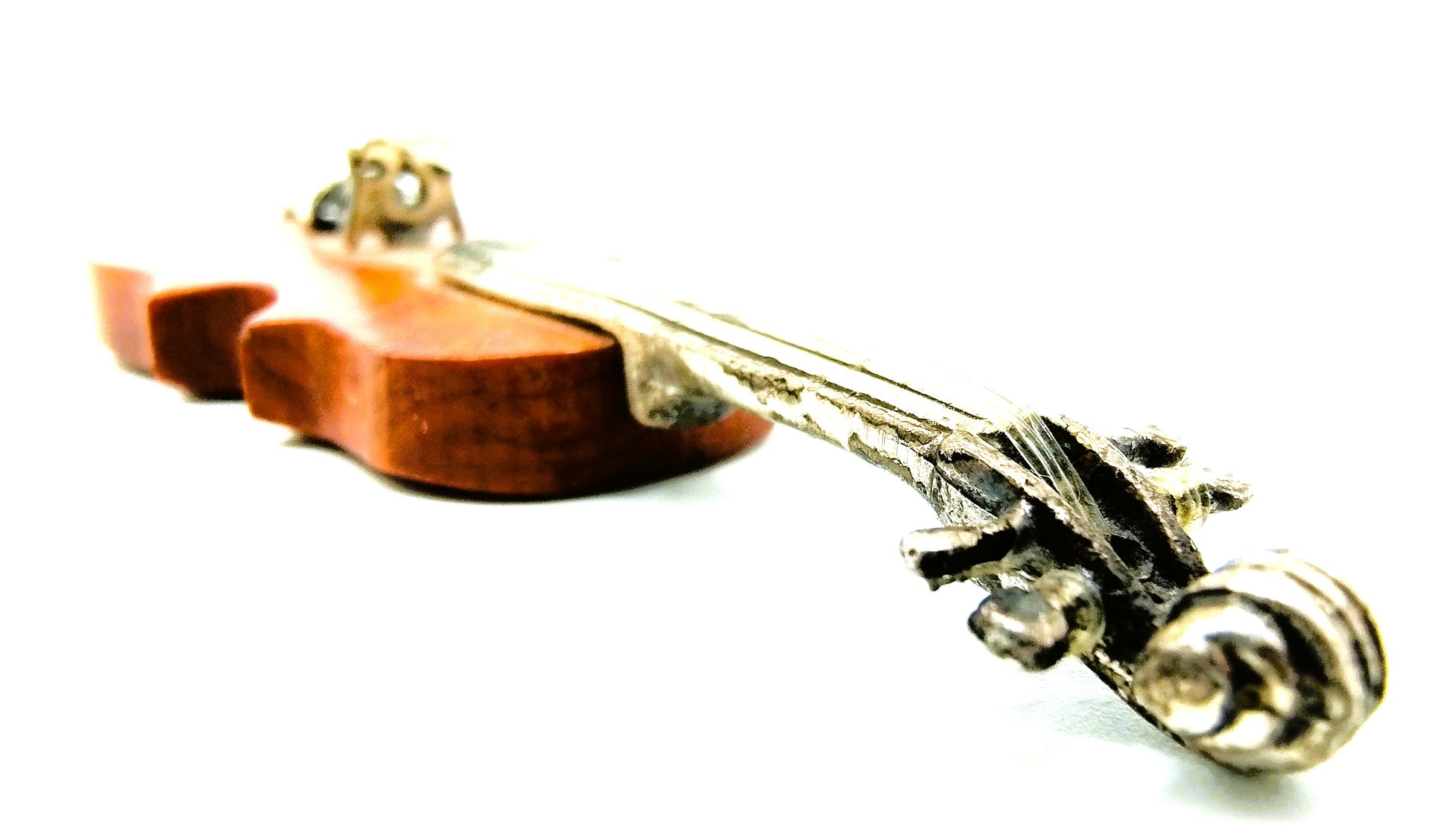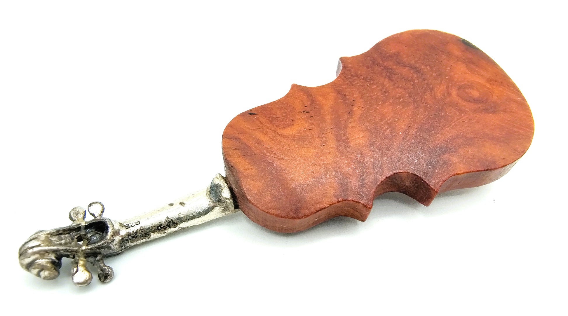 De viool is gekeurd met 925 voor 1e gehalte zilver.