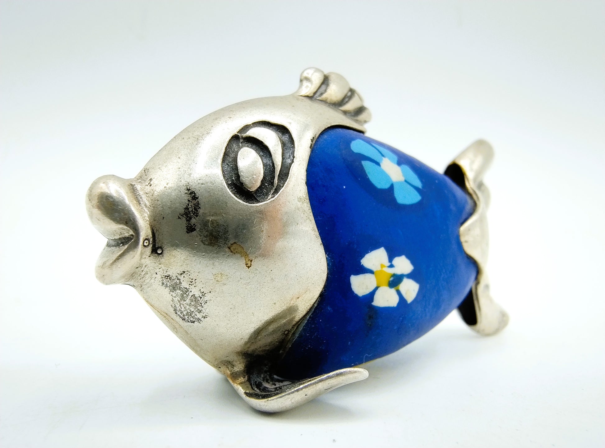 Forse miniatuur van een vis. Met kunststof middenstuk.