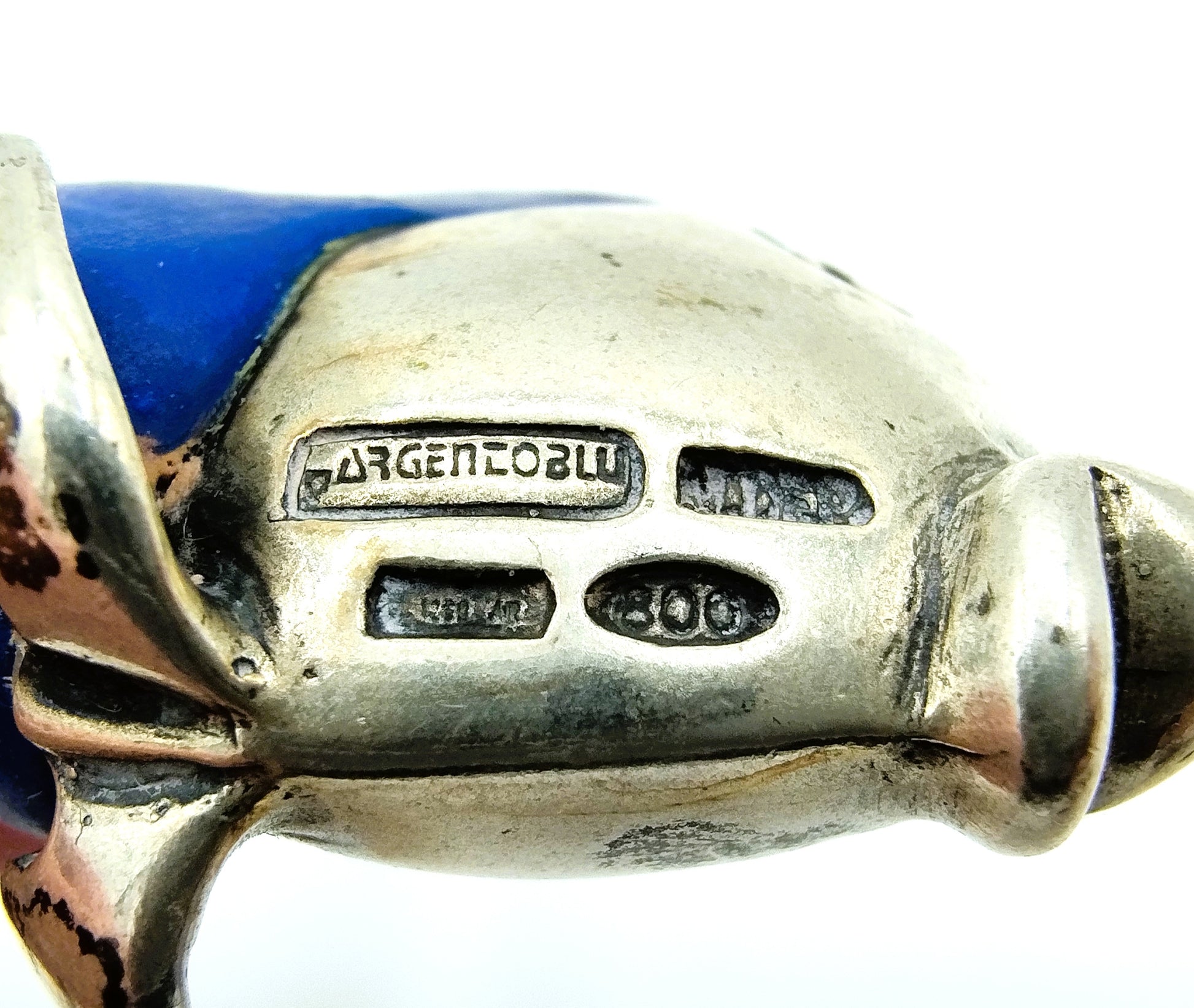 De vis is gekeurd met Argento blu, meesterkeur 1259 AR voor Idea Oro di Riccio Carolina Sussi e Livi snc in Arezzo en 800 voor 3e gehalte zilver.