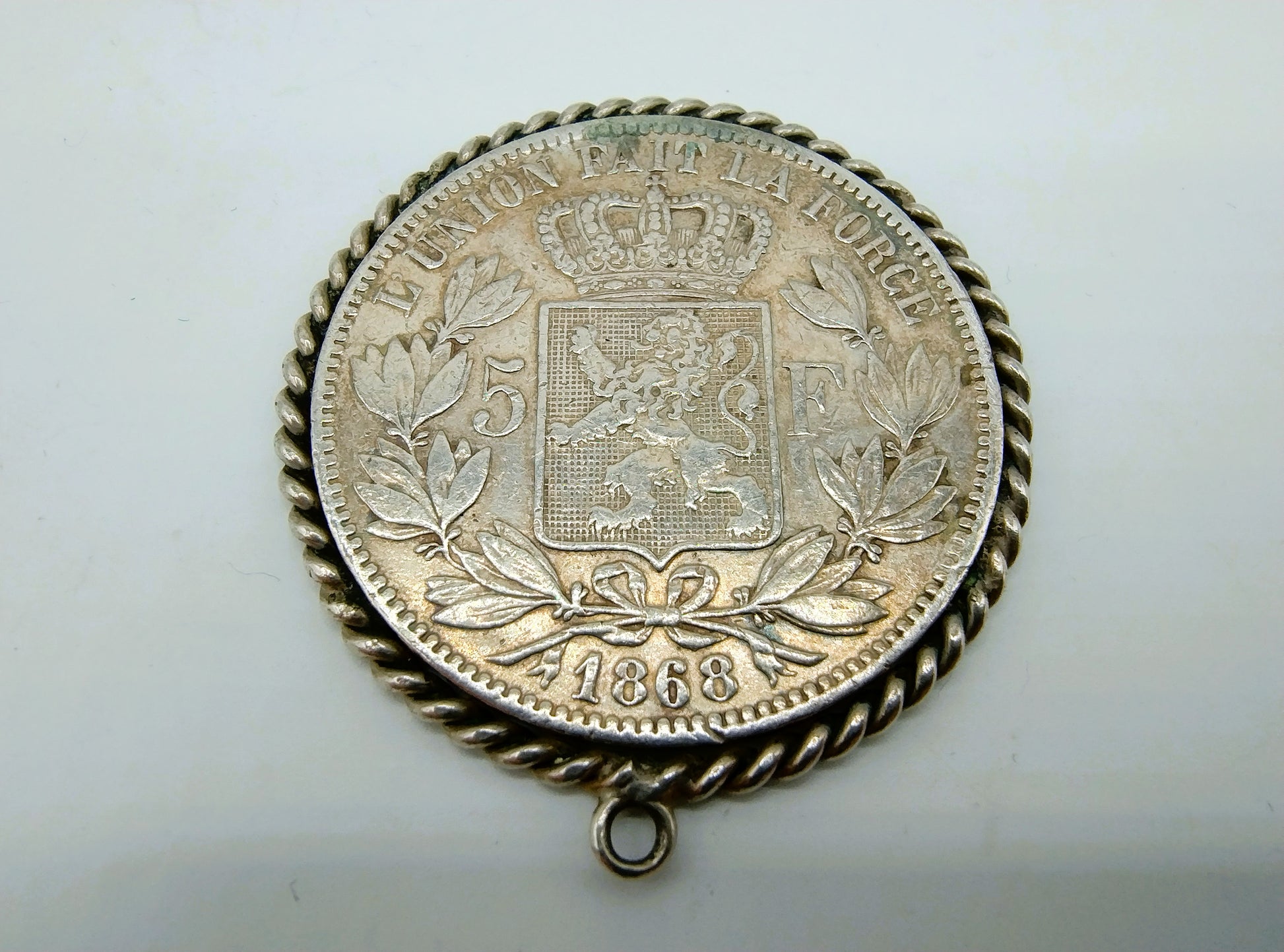 Zilveren munt hanger, 5 Frank, Leopold II, België, 1868