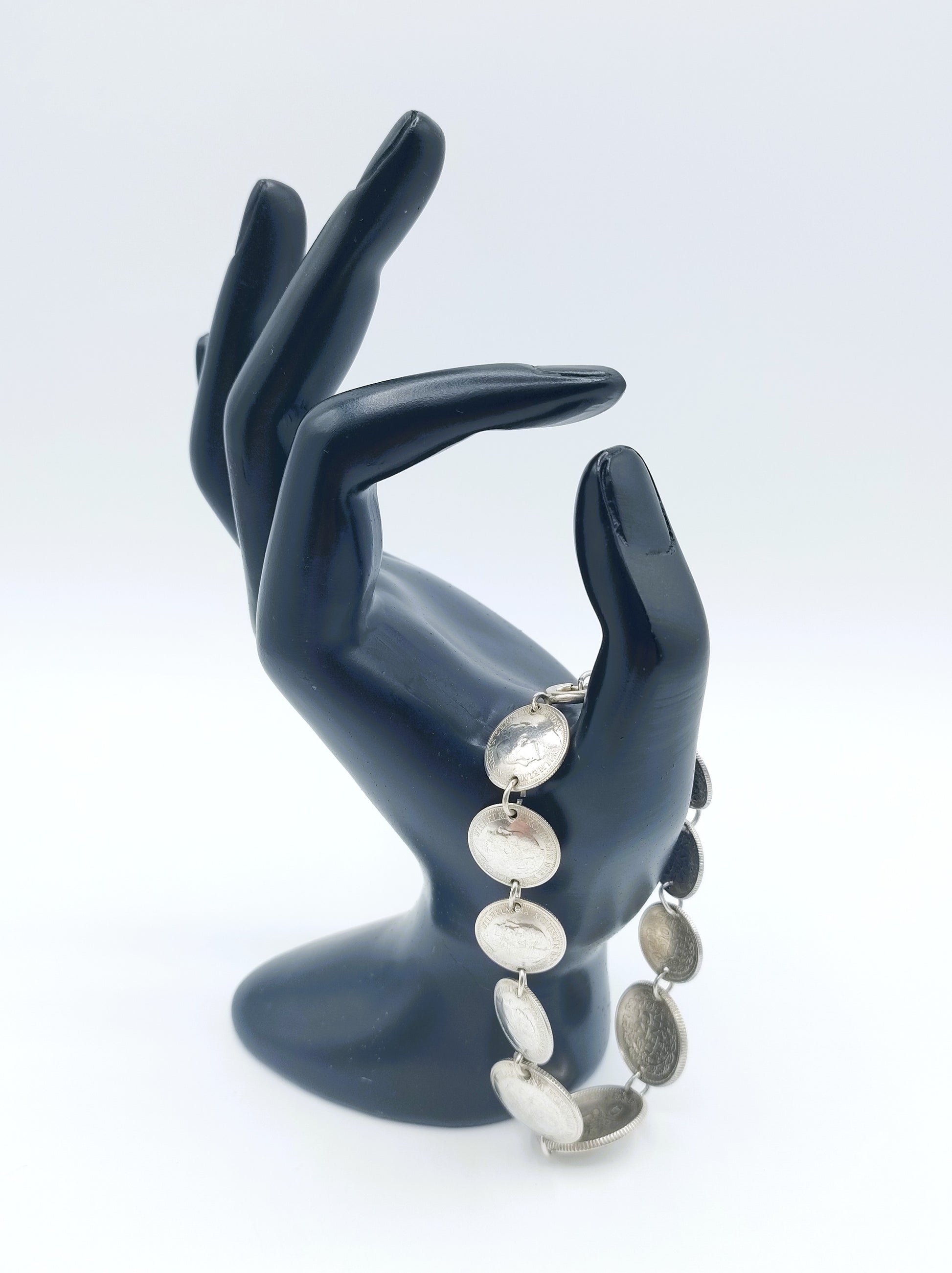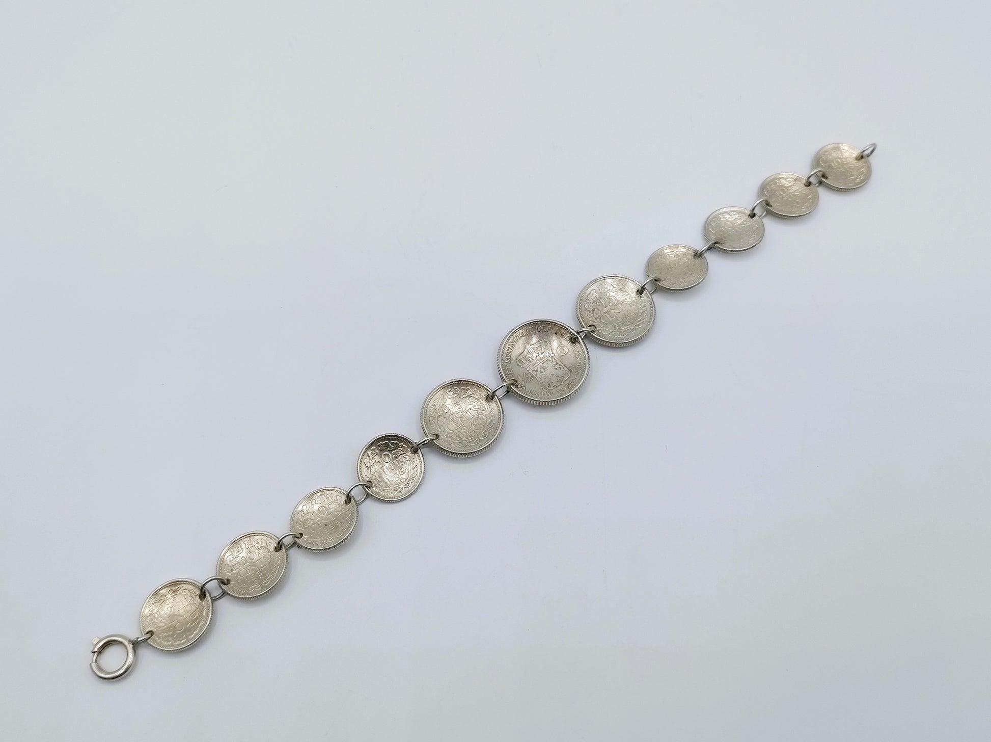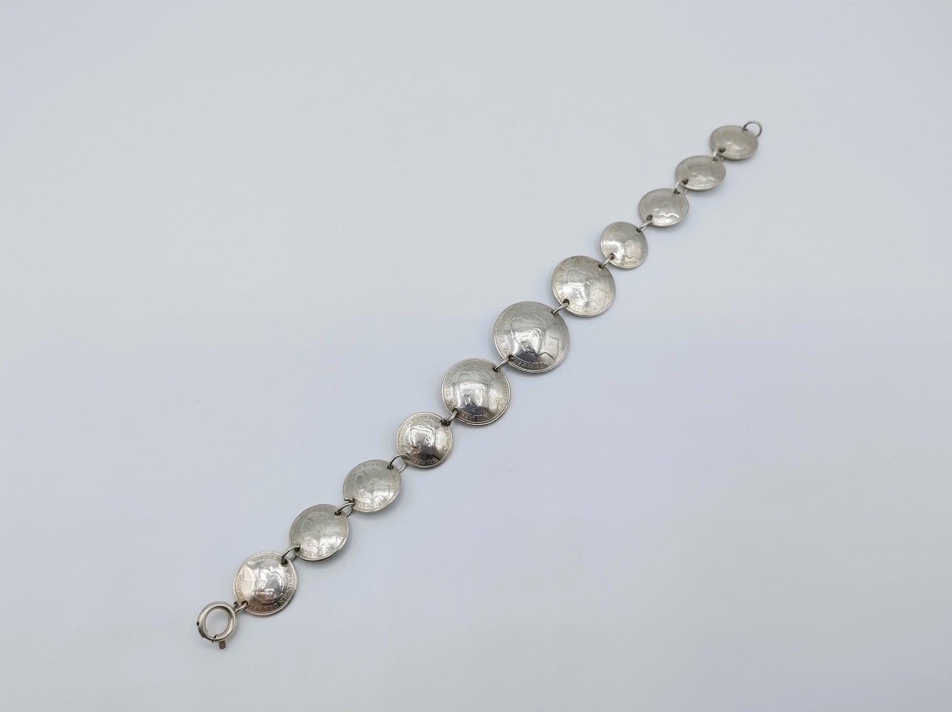 Zilveren munten armband, Wilhelmina, 21 cm.