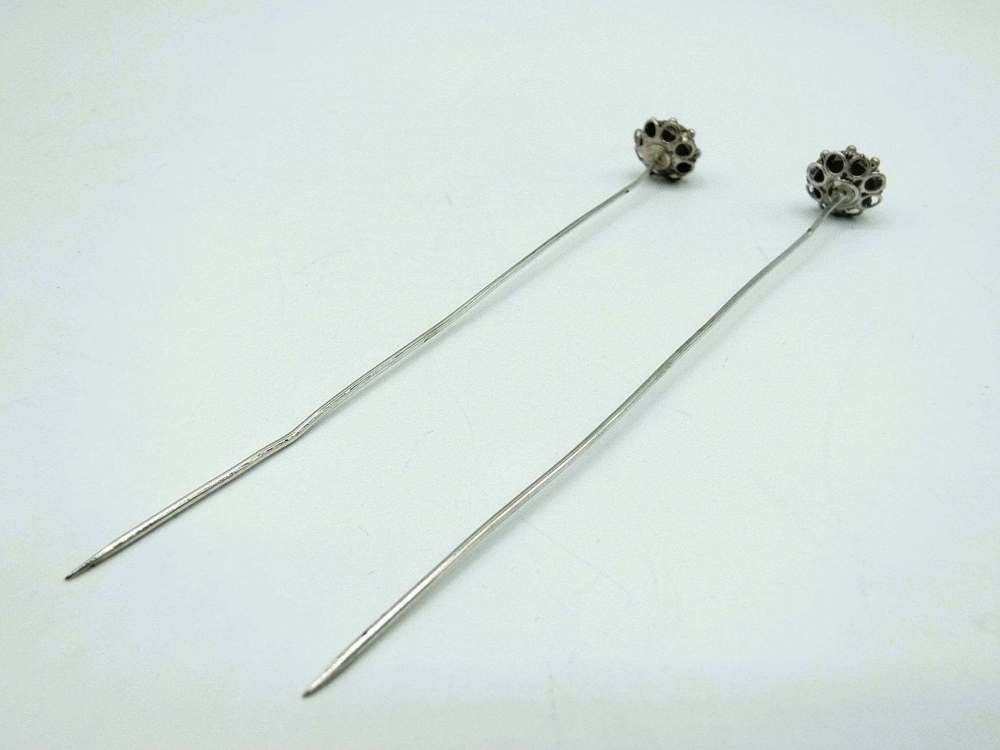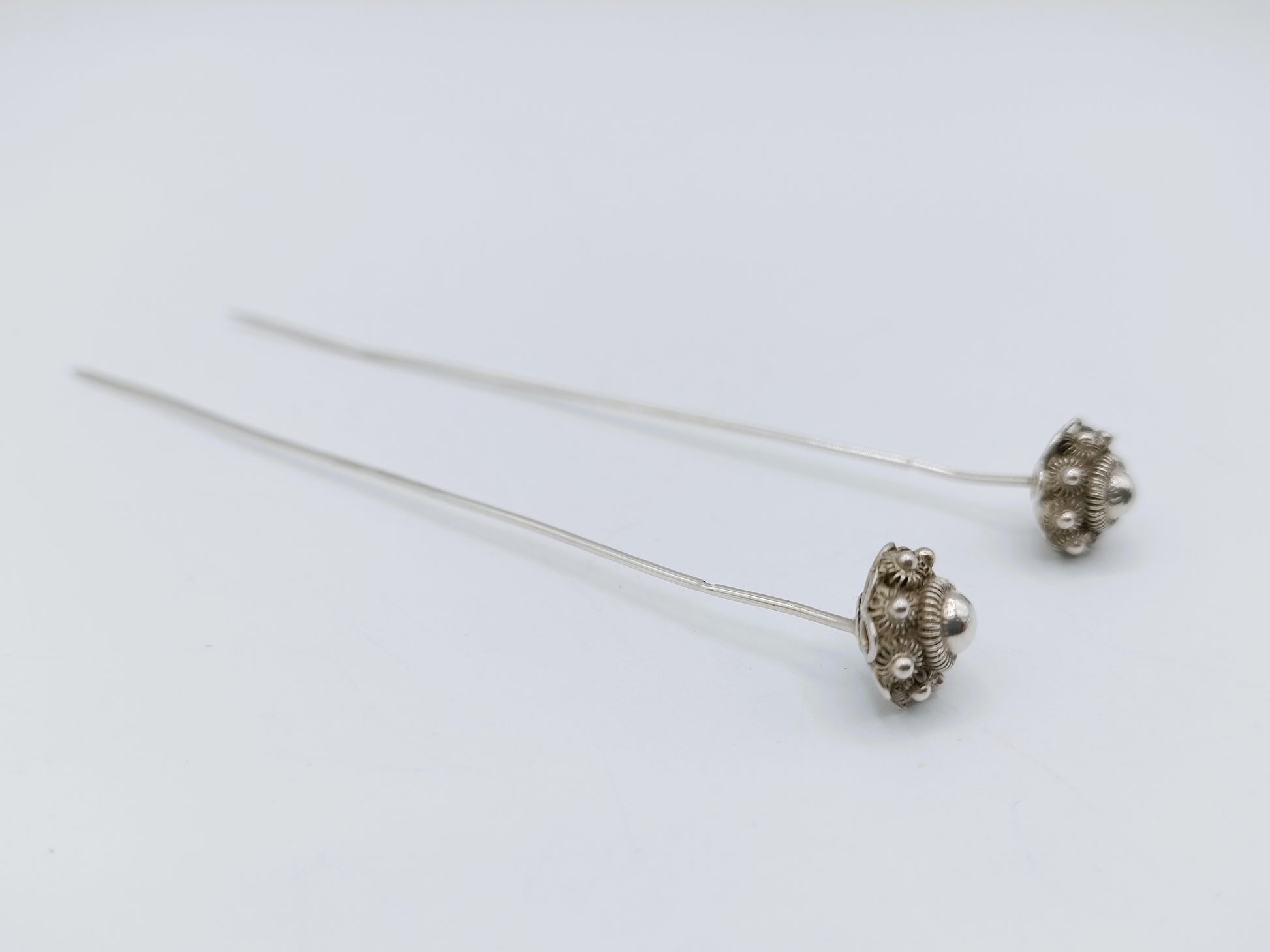 Zilveren mutsenspelden met een Zeeuwse knop.