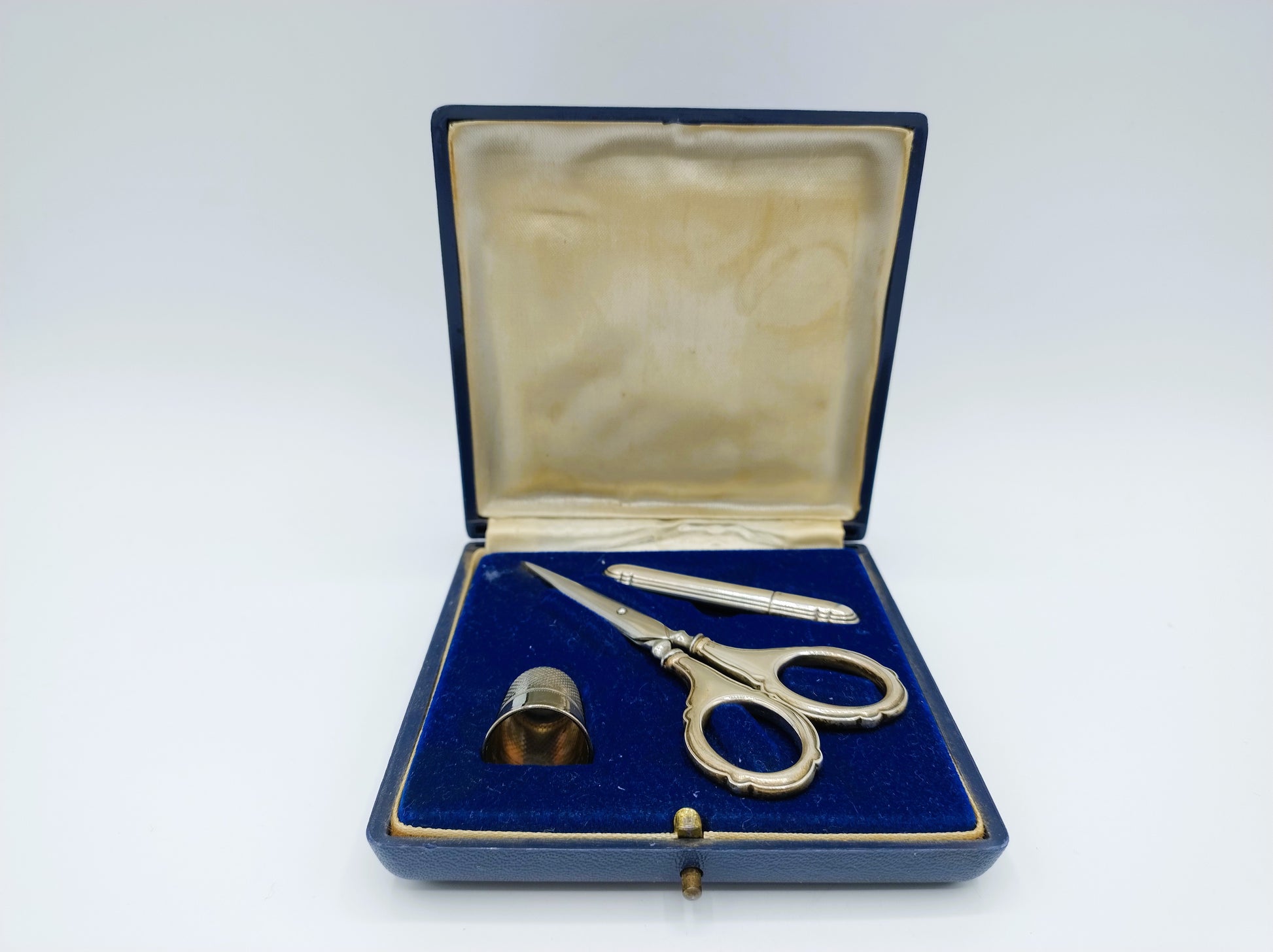 Zilveren naaigarnituur in originele cassette