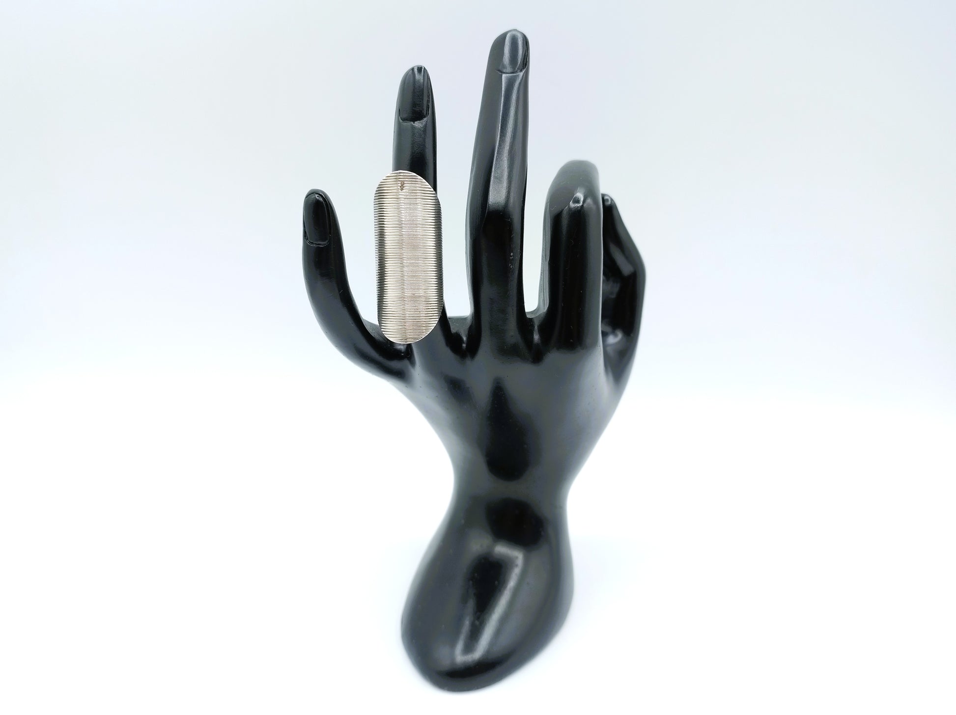 Zilveren naairing voorzien van een ribmotief.
