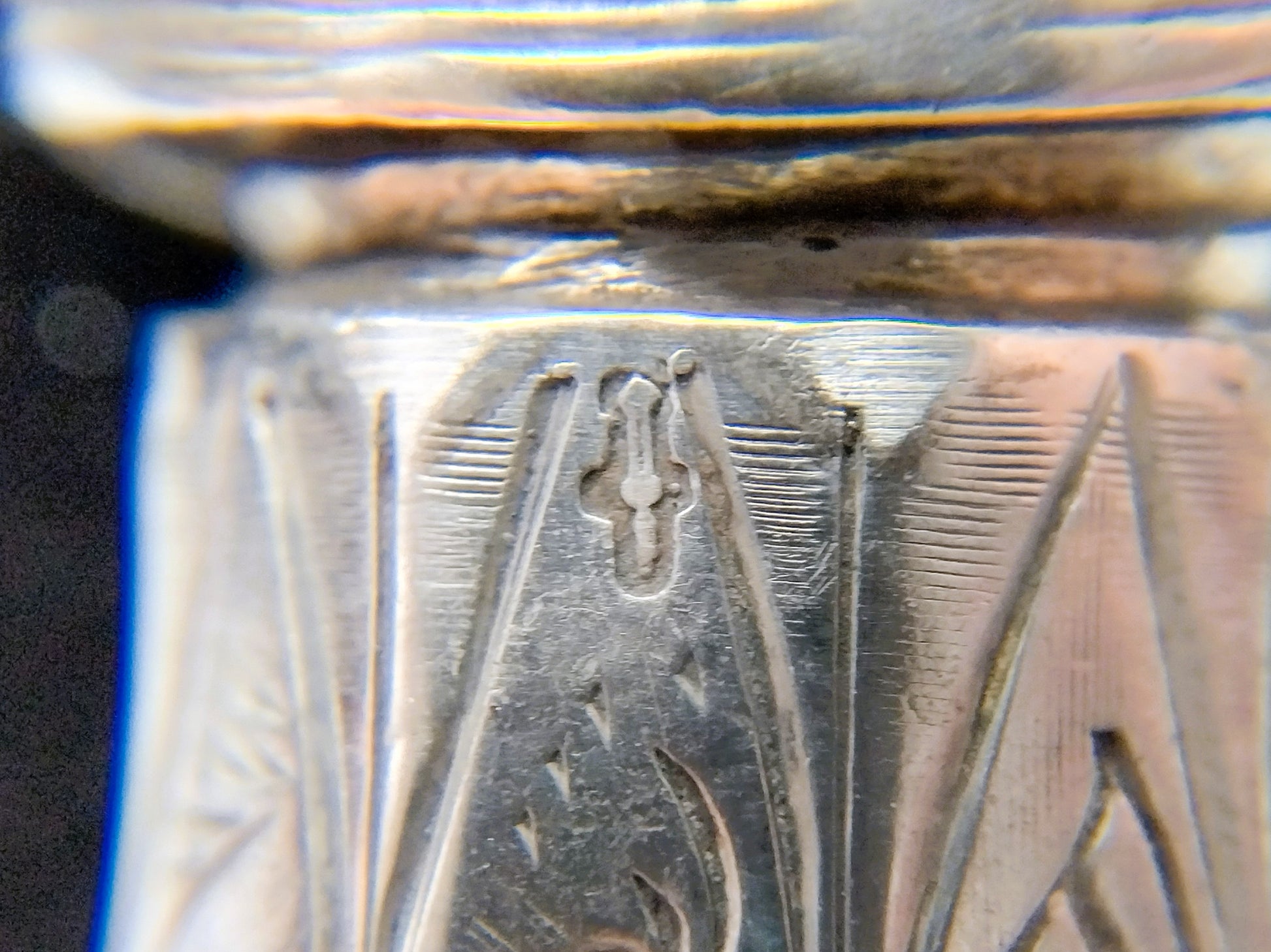 Gekeurd met een onleesbaar meesterteken en het zwaardje voor 2e gehalte zilver.