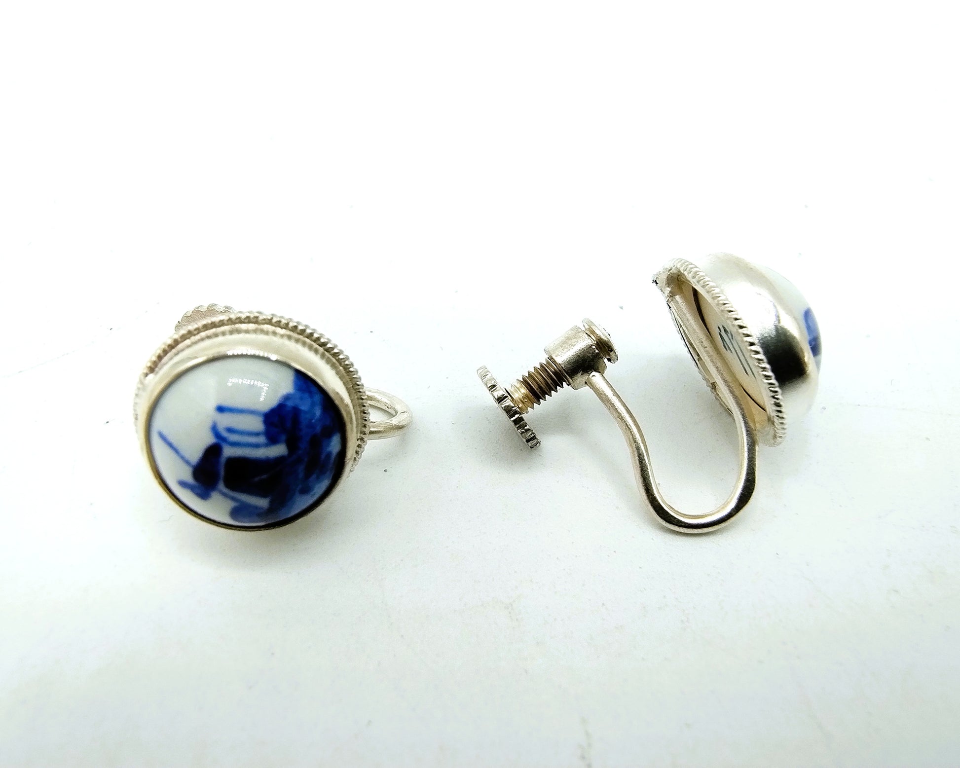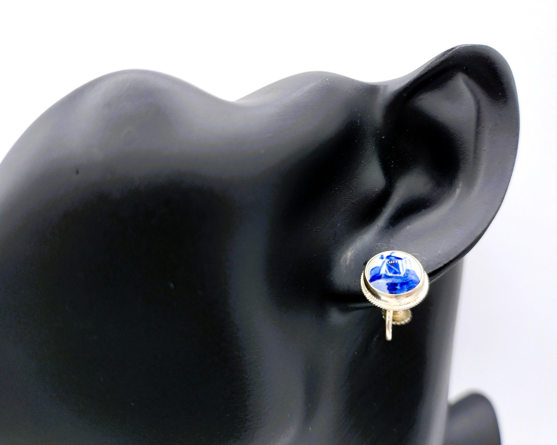 Zilveren oorbellen, Delfts blauw, schroefsluiting