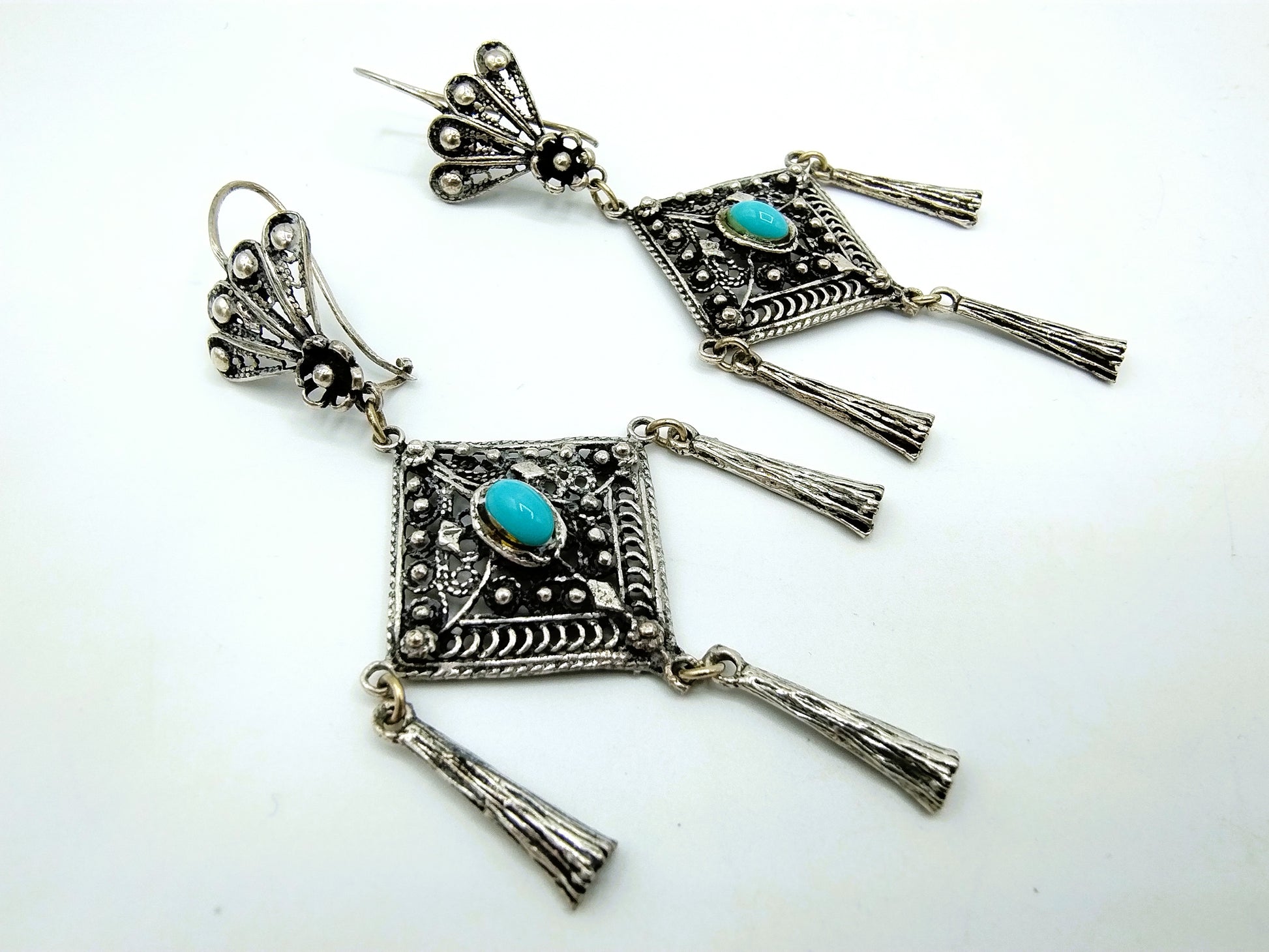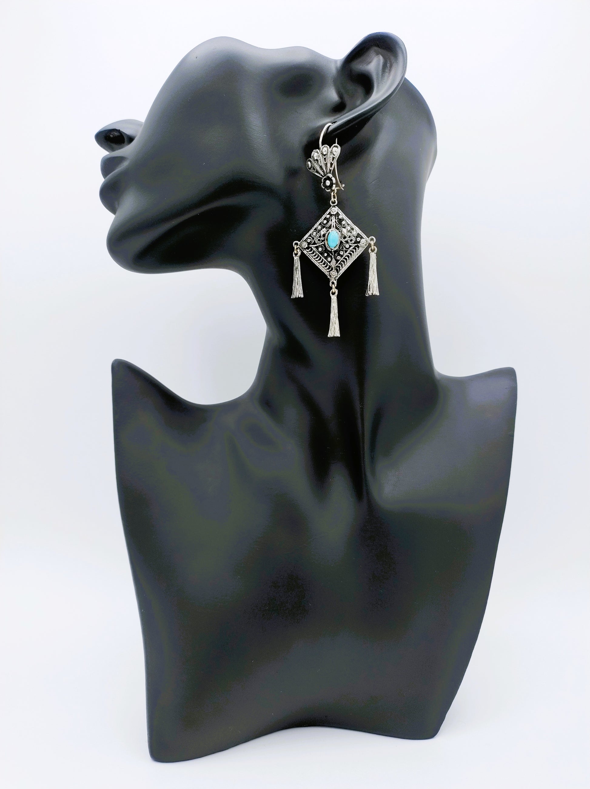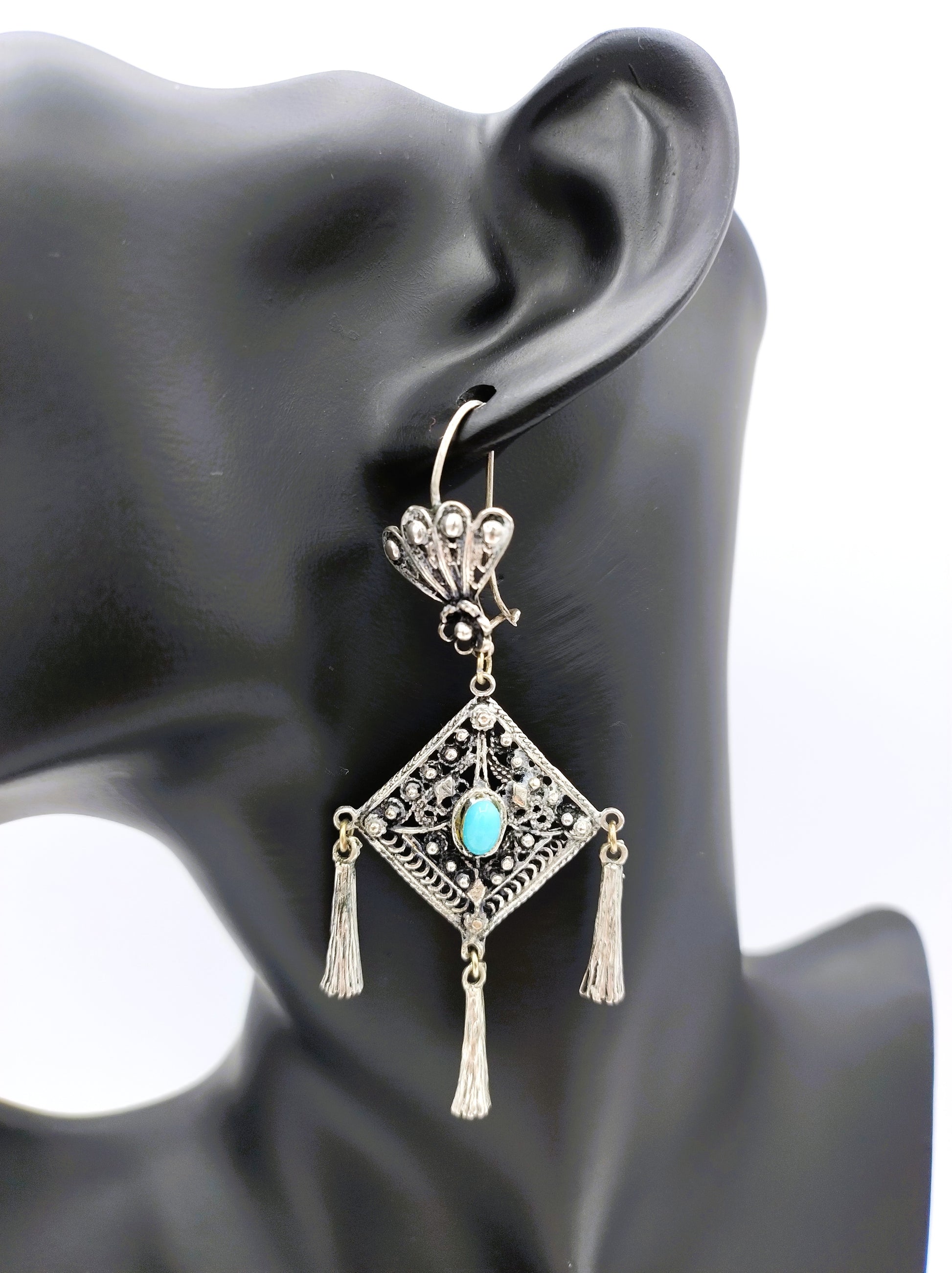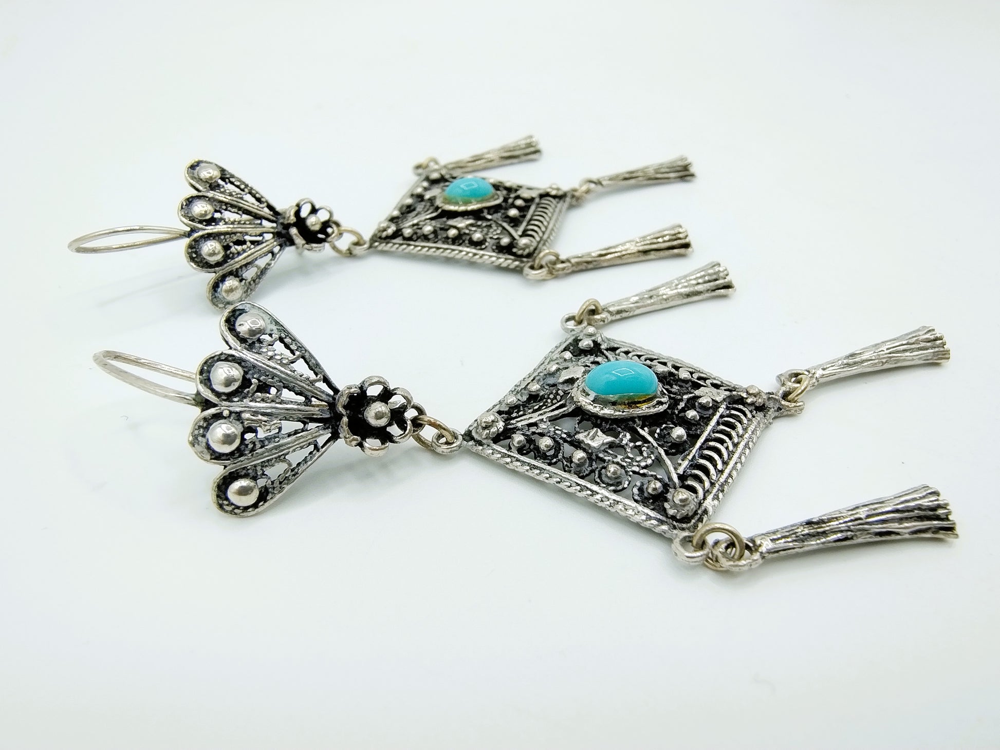 Door oorbellen zijn opgebouwd uit een bovenstuk, middenstuk en daaronder hangend 3 zilveren pegels.