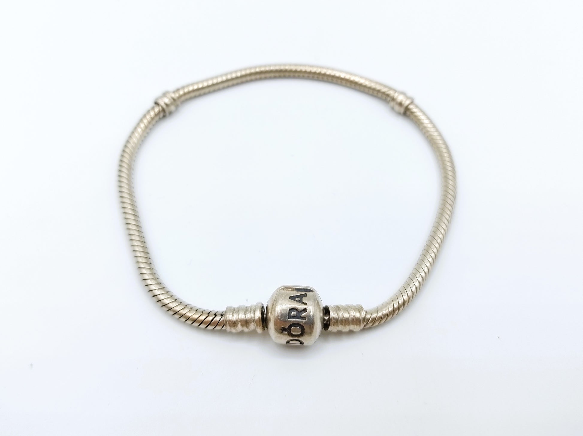 Zilveren bedelarmband van het merk Pandora met een lengte van 19 cm.