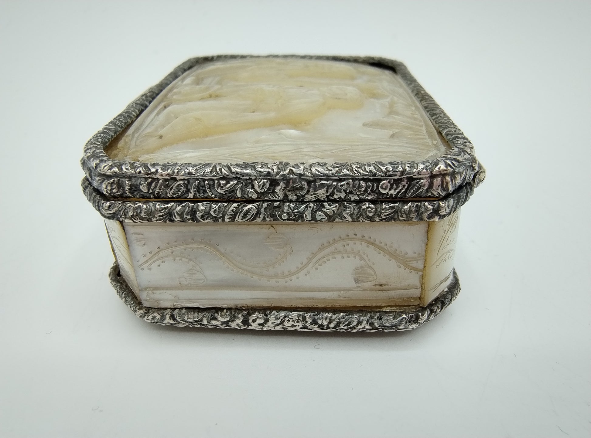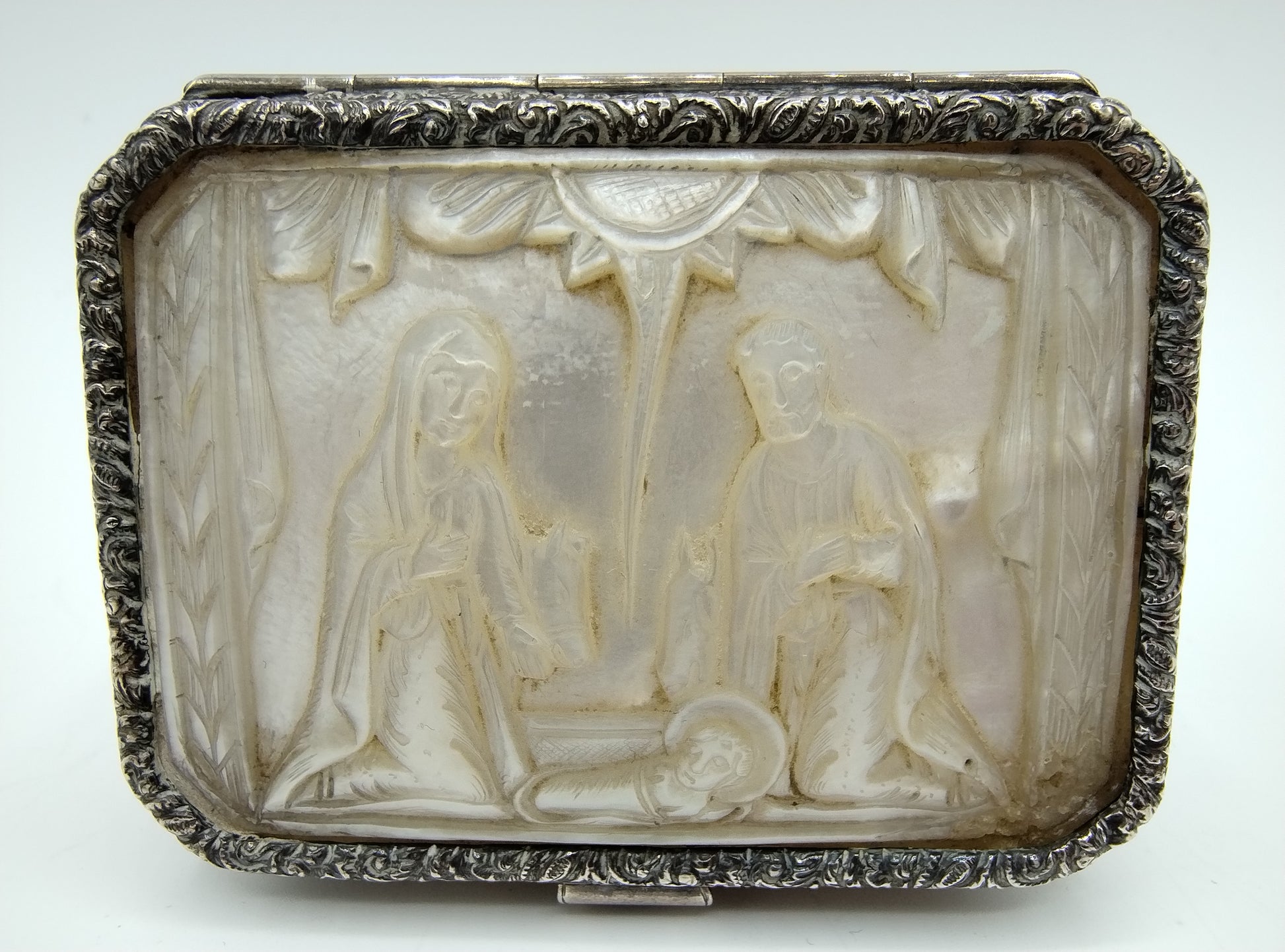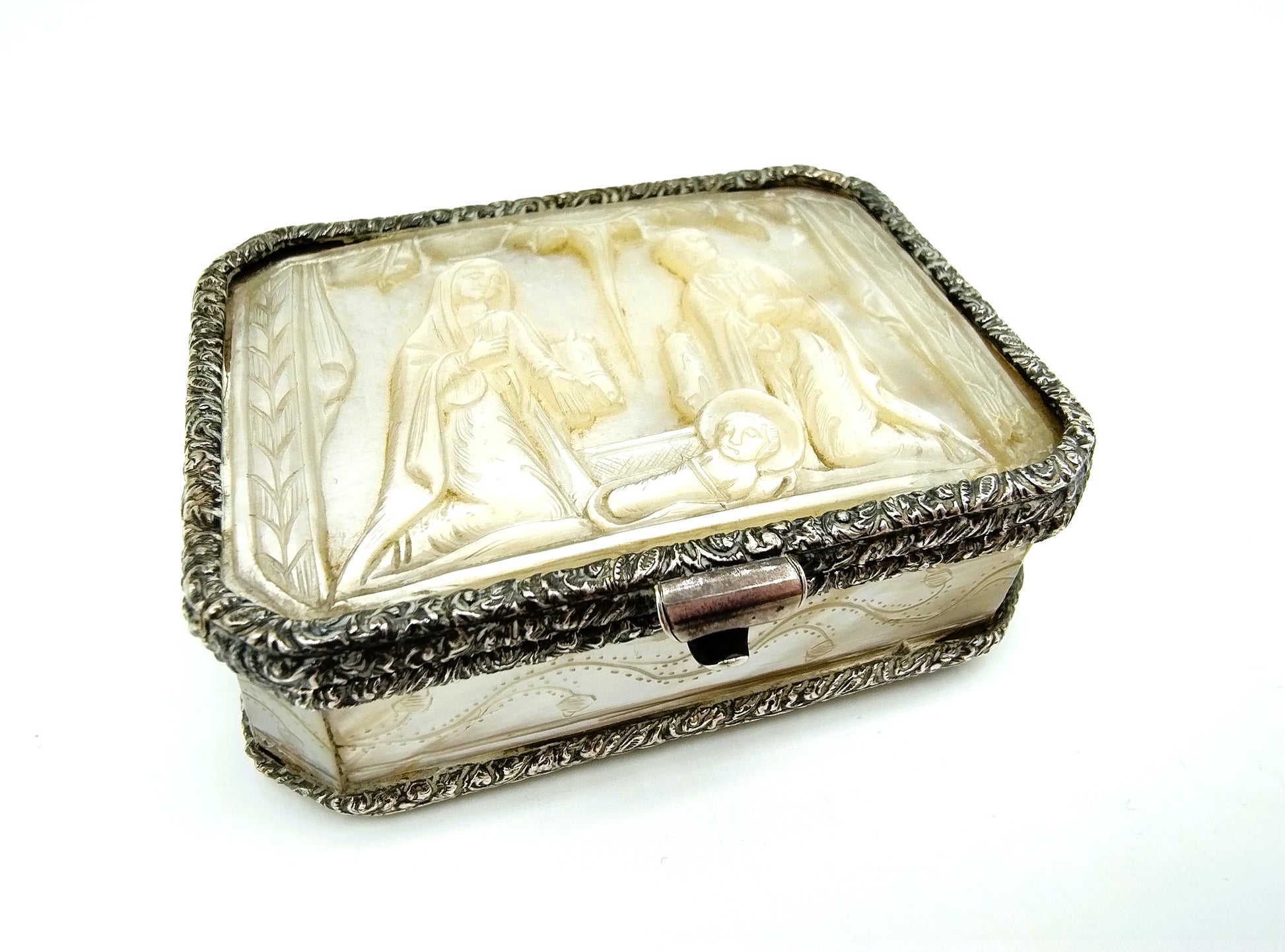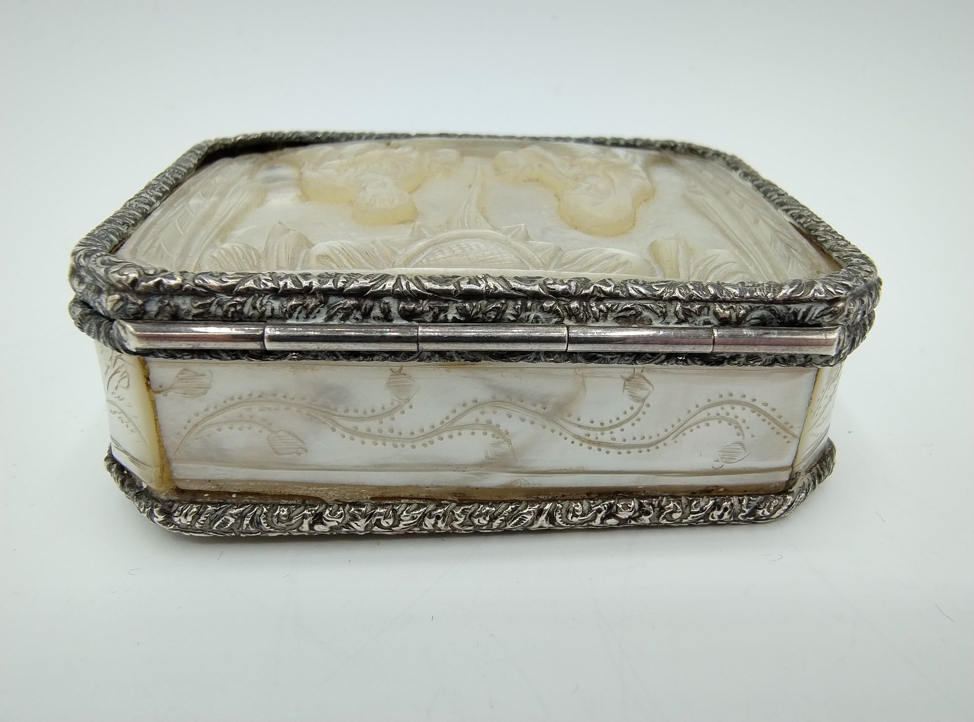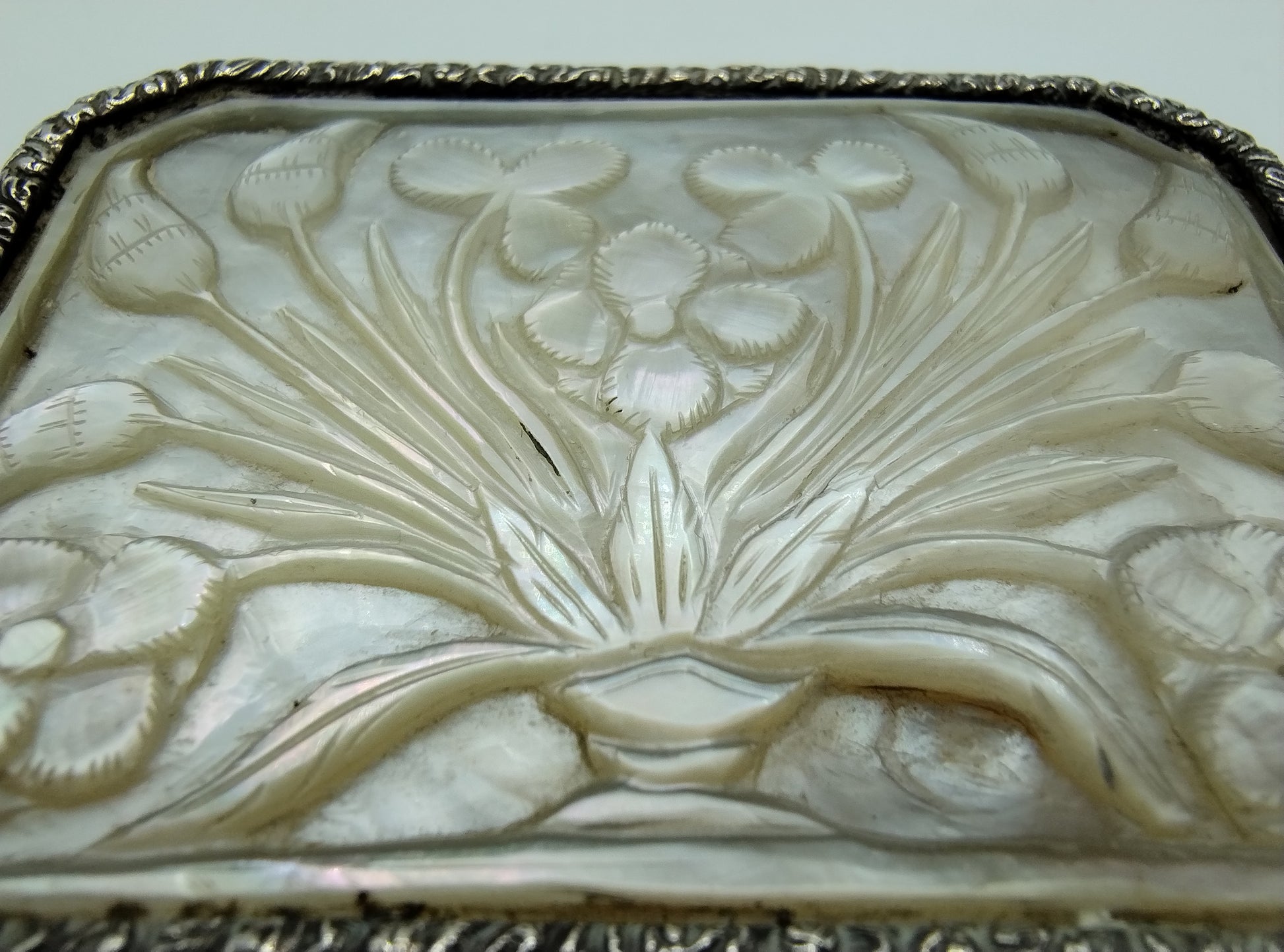 Zilveren parelmoerdoosje, O. Joling / Midwolda, 19e eeuws