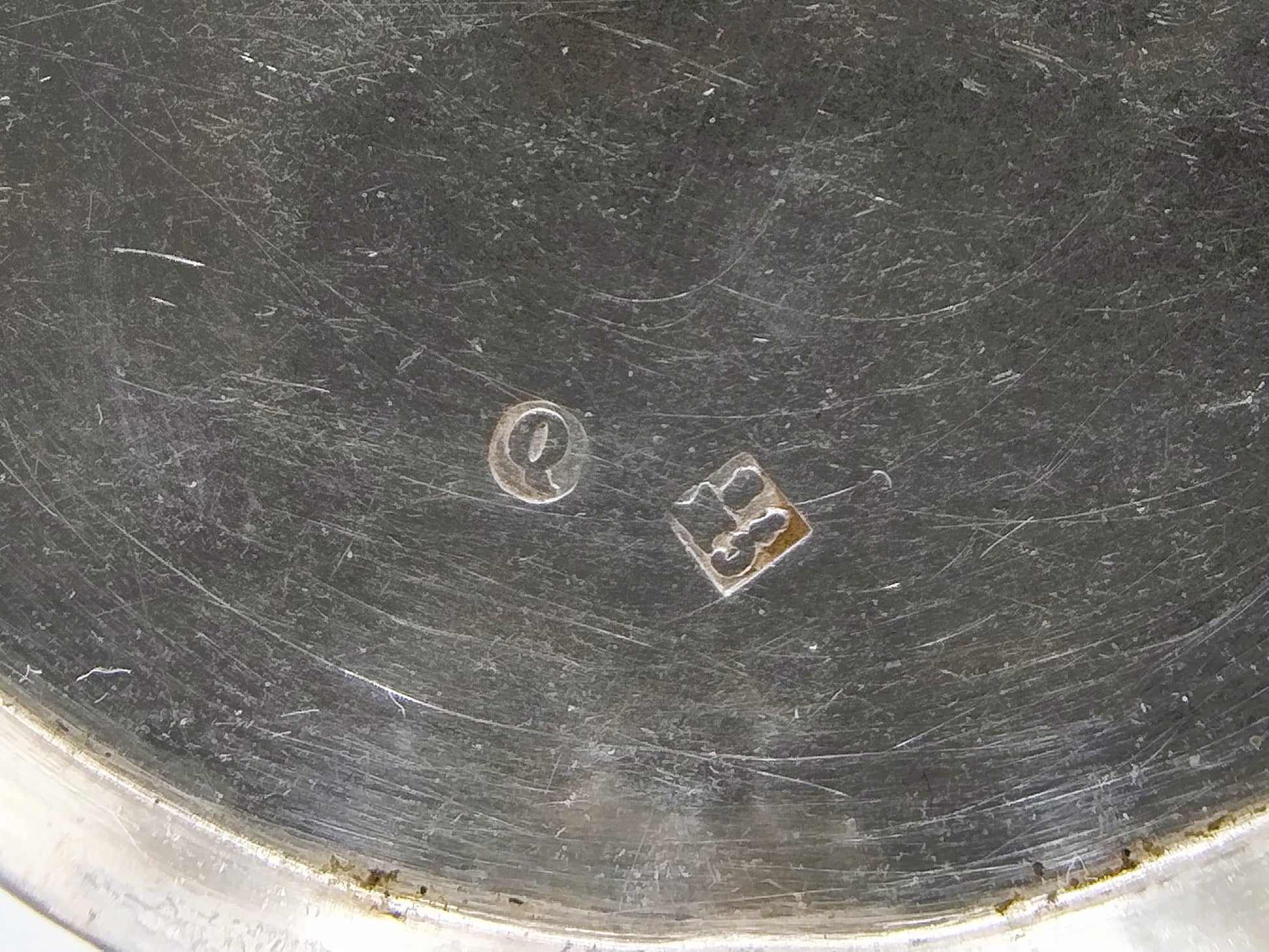 Gekeurd met meesterkeur GW18, tweede gehaltekeur, jaarletter Q van 1850 en minervakopje.