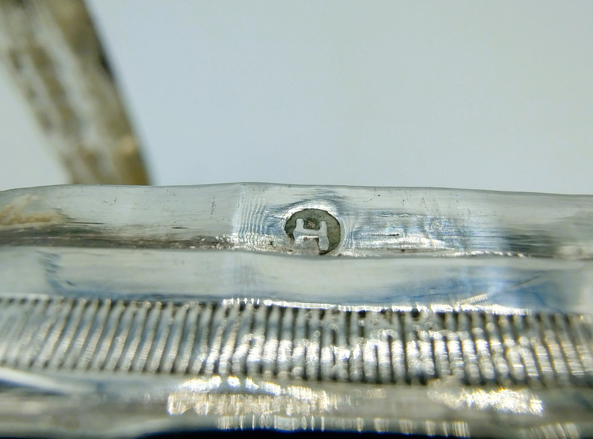 Gekeurd met meesterkeur CC58, tweede gehaltekeur, jaarletter H van 1917 en minervakopje.