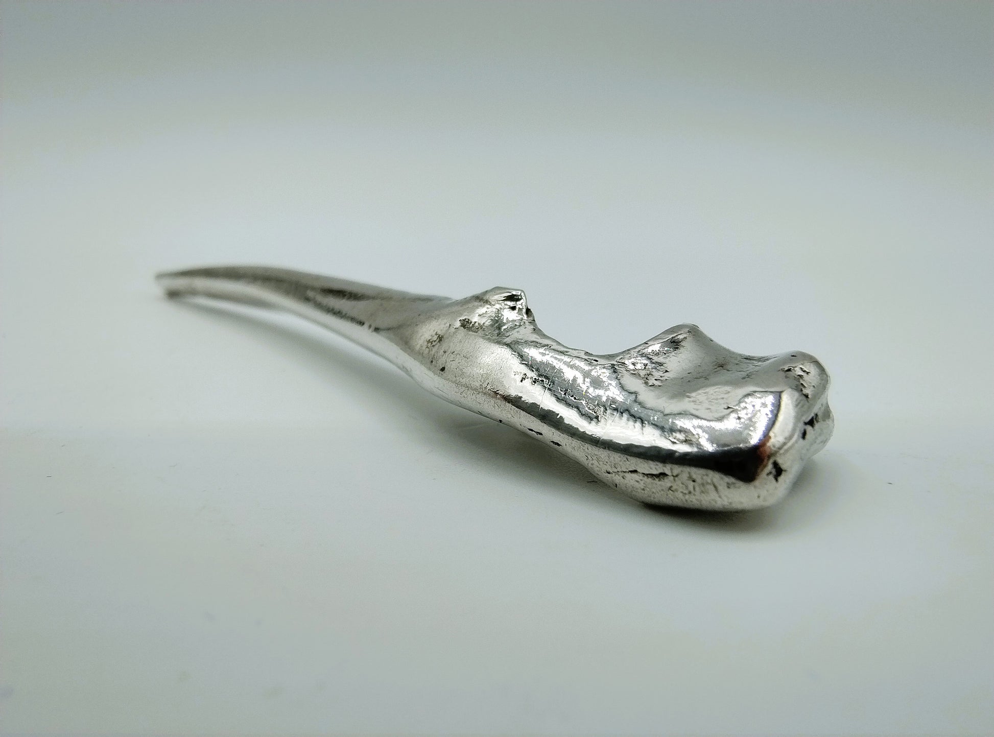 Zilveren pijpenwroeter in de vorm van een hazesprong, gemaakt door de Friese zilversmid L.T. Spannenburg uit achtereenvolgens Joure, Balk en St. Anna Parochie. Hij was werkzaam tussen 1828 en 1846.