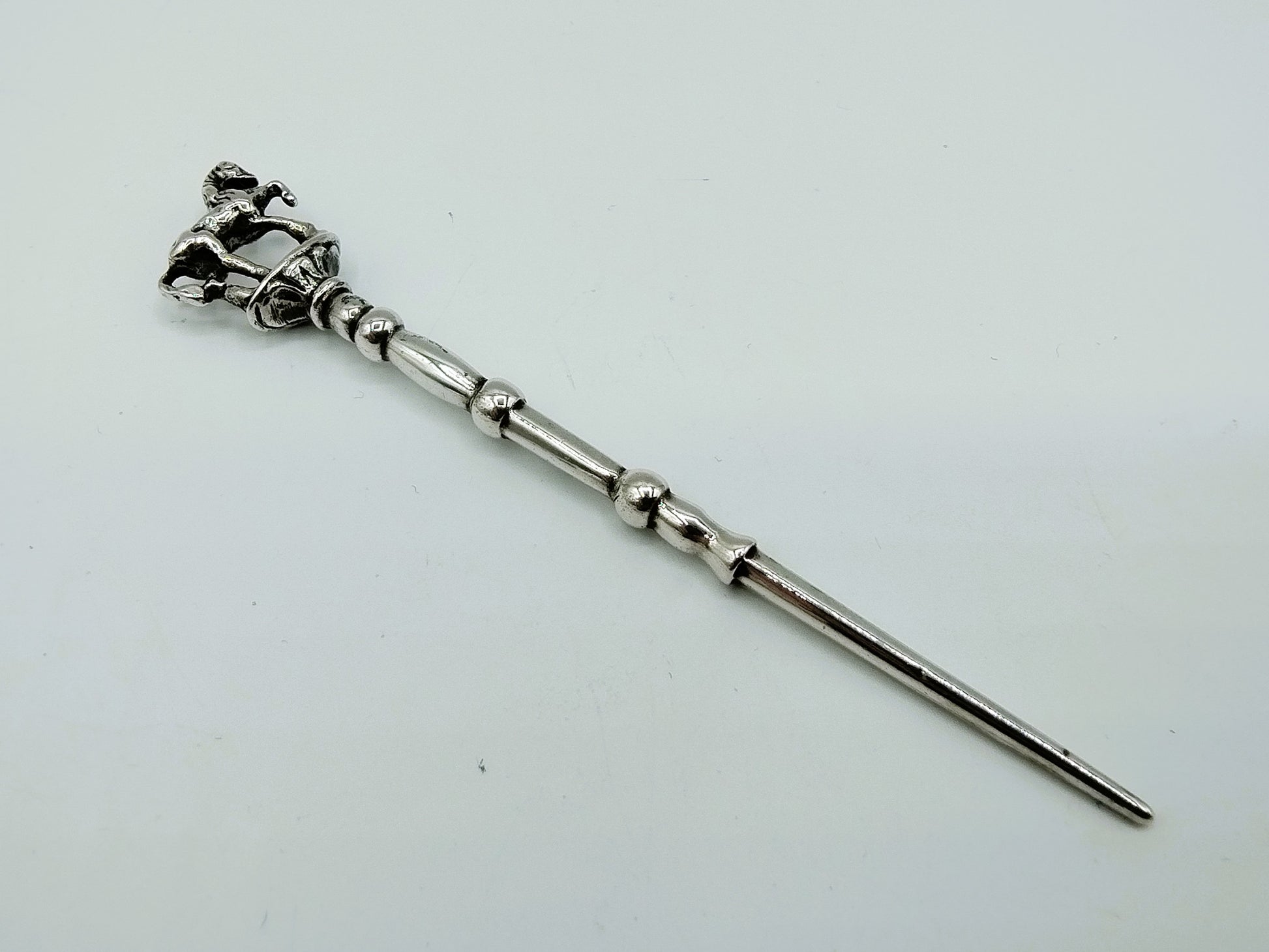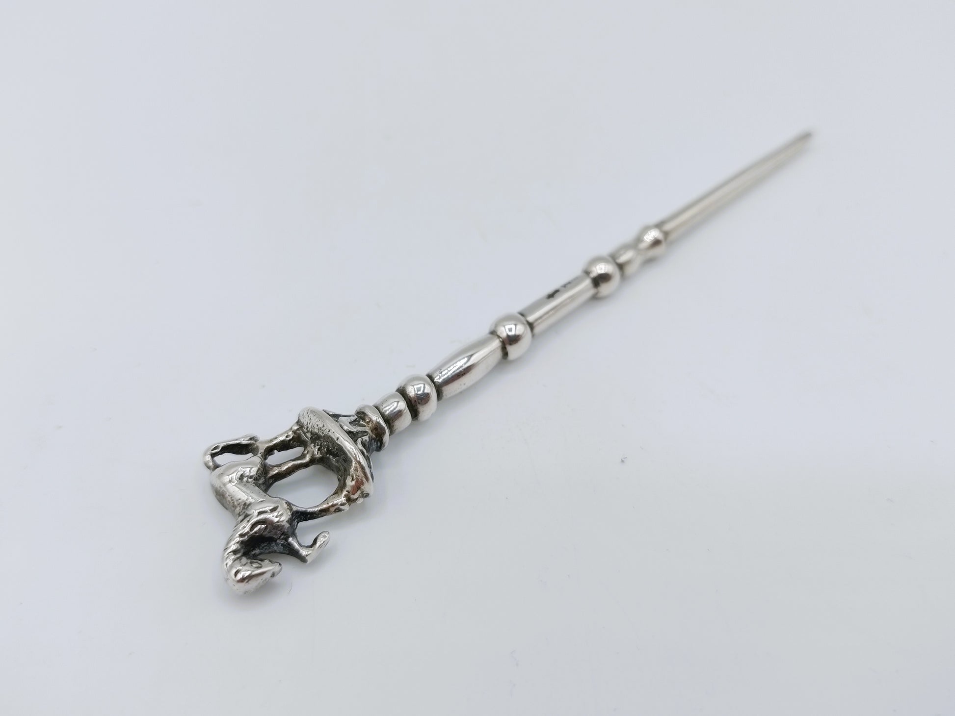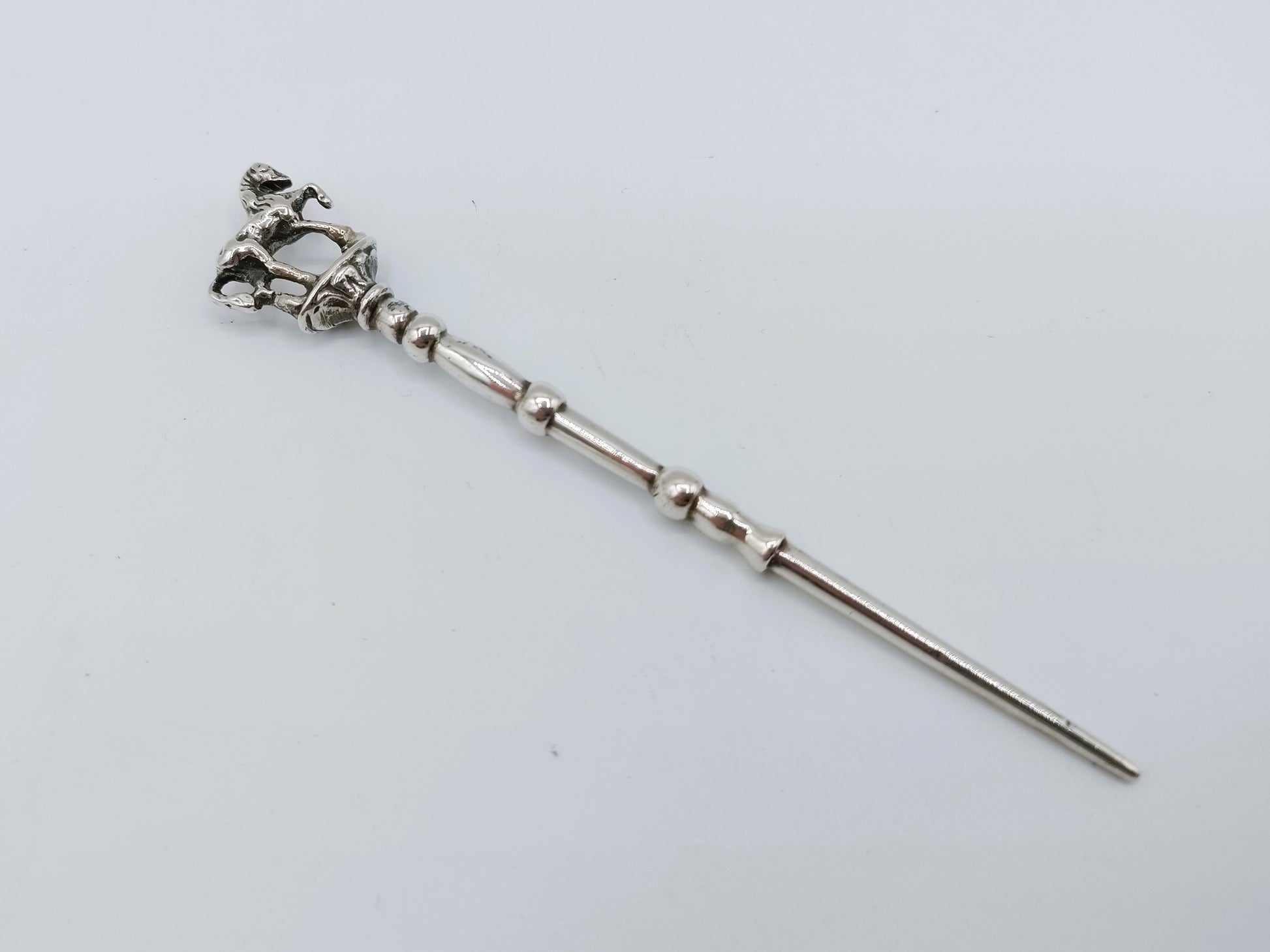 Zilveren pijpenwroeter met als bekroning een paard. Gemaakt door een onbekende zilversmid uit de 19e eeuws.
