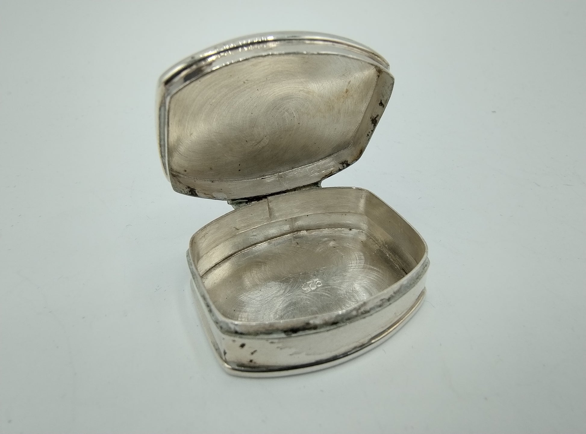 Zilveren pillendoosje. Klein model. Gekeurd met 925 voor eerste gehalte zilver.