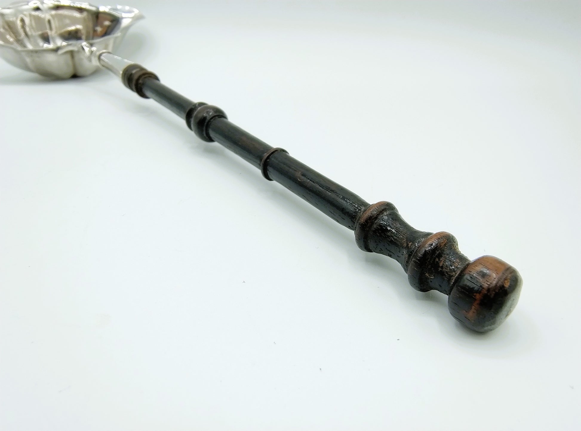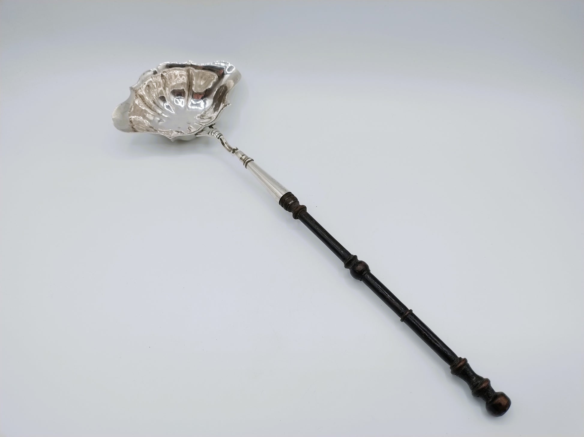 Zilveren punchlepel met ebbenhouten steel, 18e eeuws