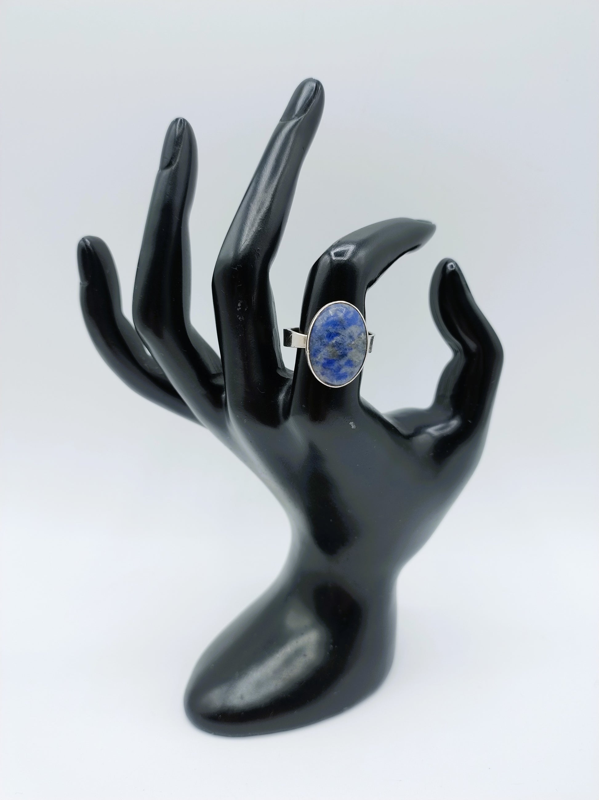 Zilveren ring met blauwe kleursteen, universele maat