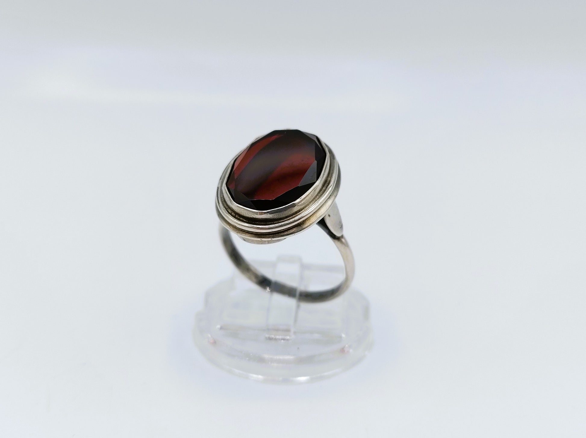 Deze prachtige zilveren ring met (rode) granaat is het perfecte geschenk voor elke gelegenheid! Gekeurd met zwaardje voor 2e gehalte zilver (835) en een moeilijk leesbaar meesterteken.