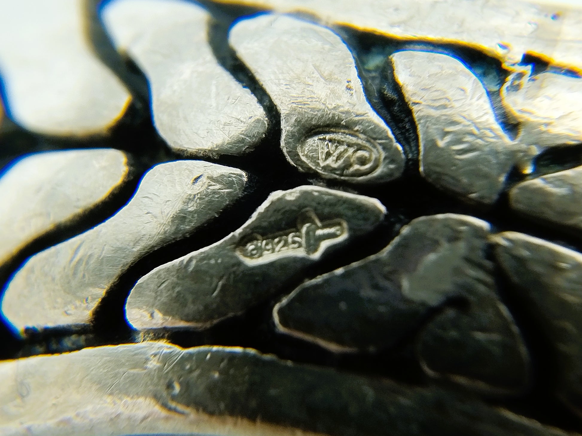 De ring is gekeurd met 925 voor 1e gehalte zilver en meesterteken MQ.