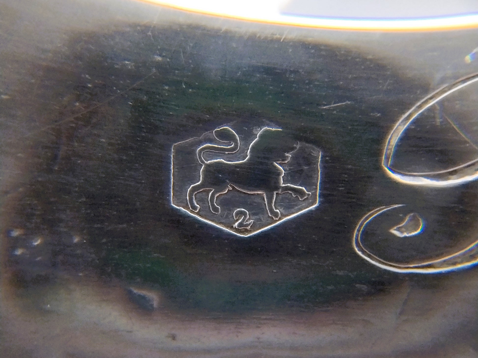 De rokhaak is voorzien van een ribvormig motief en gekeurd met het meesterkeur: VG17, tweede gehaltekeur en minervakopje.