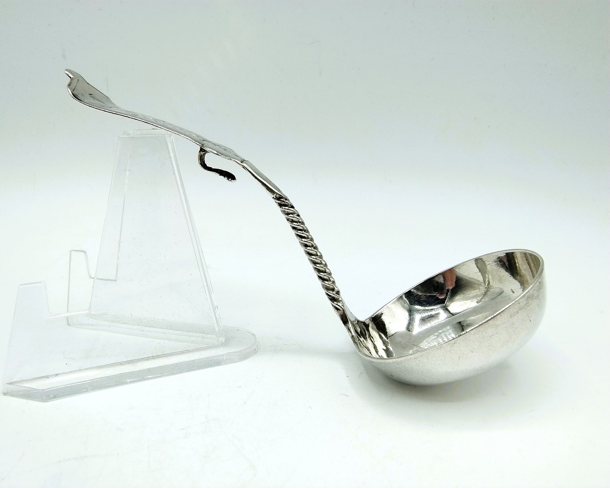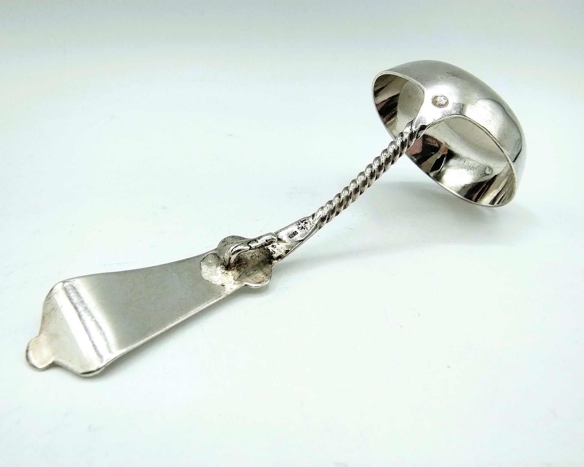 De roomlepel is gekeurd met het meesterkeur AK6, tweede gehaltekeur, minervakopje en niet leesbaar jaarletter.
