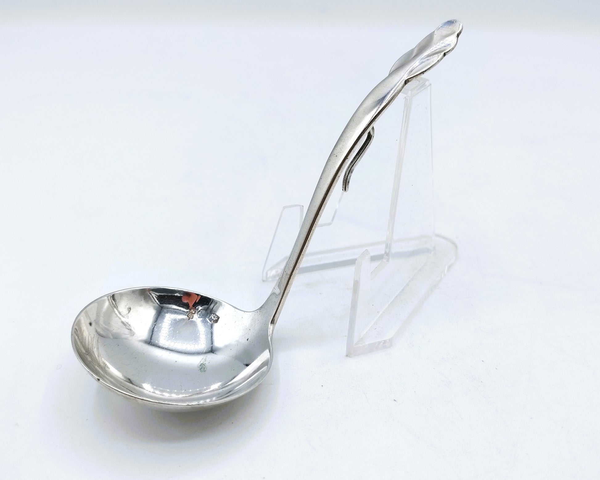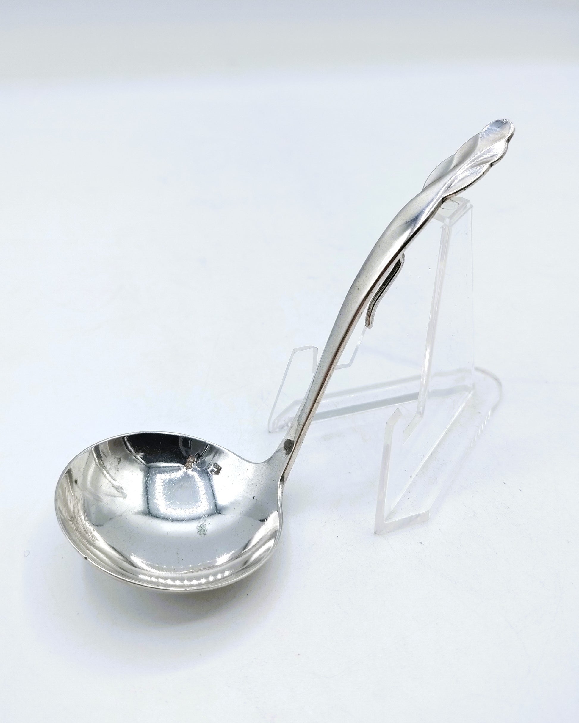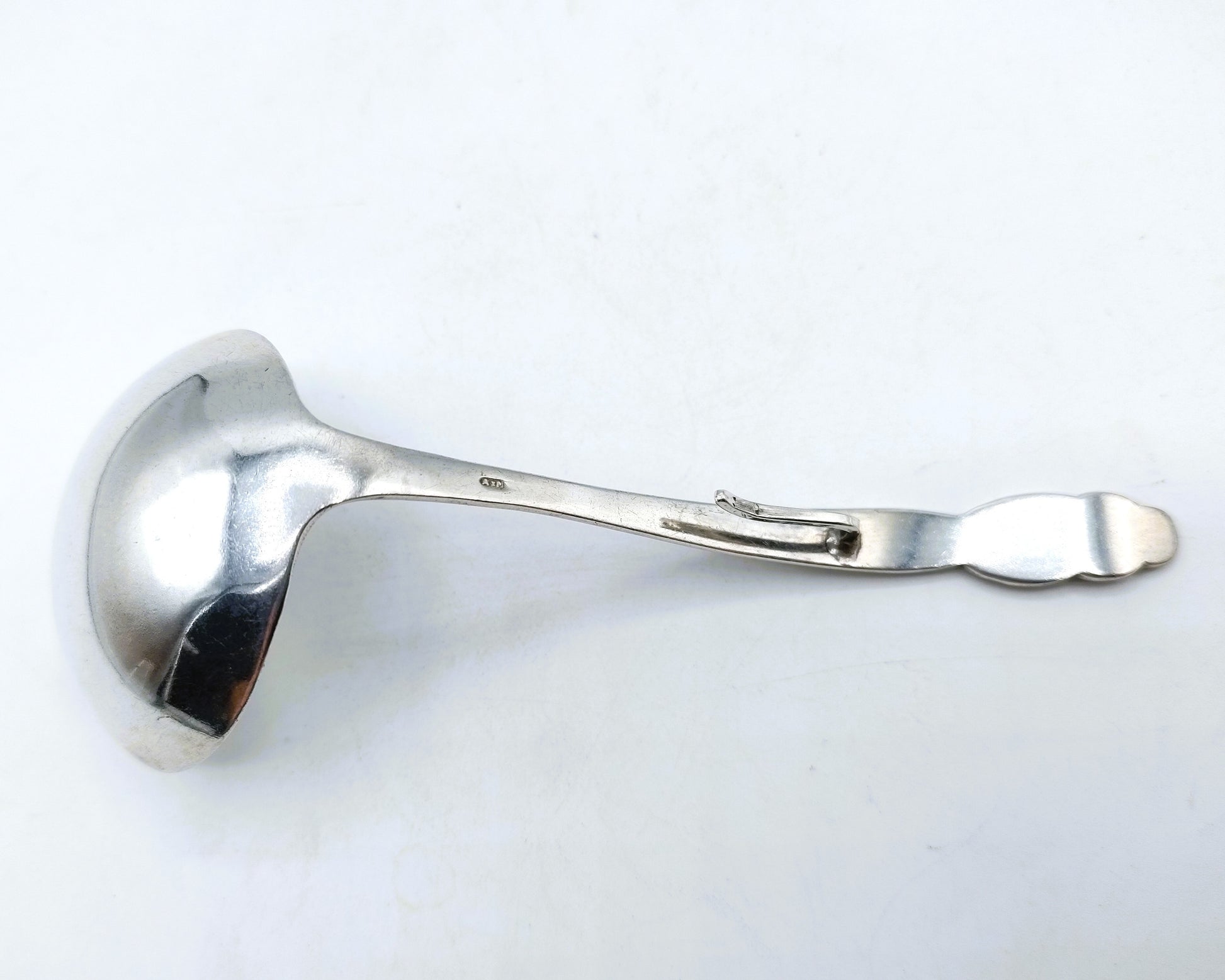 Zilveren roomlepel gemaakt door de zilversmid Alex Meijer Schoonhoven werkzaam van 1928 tot 1963.